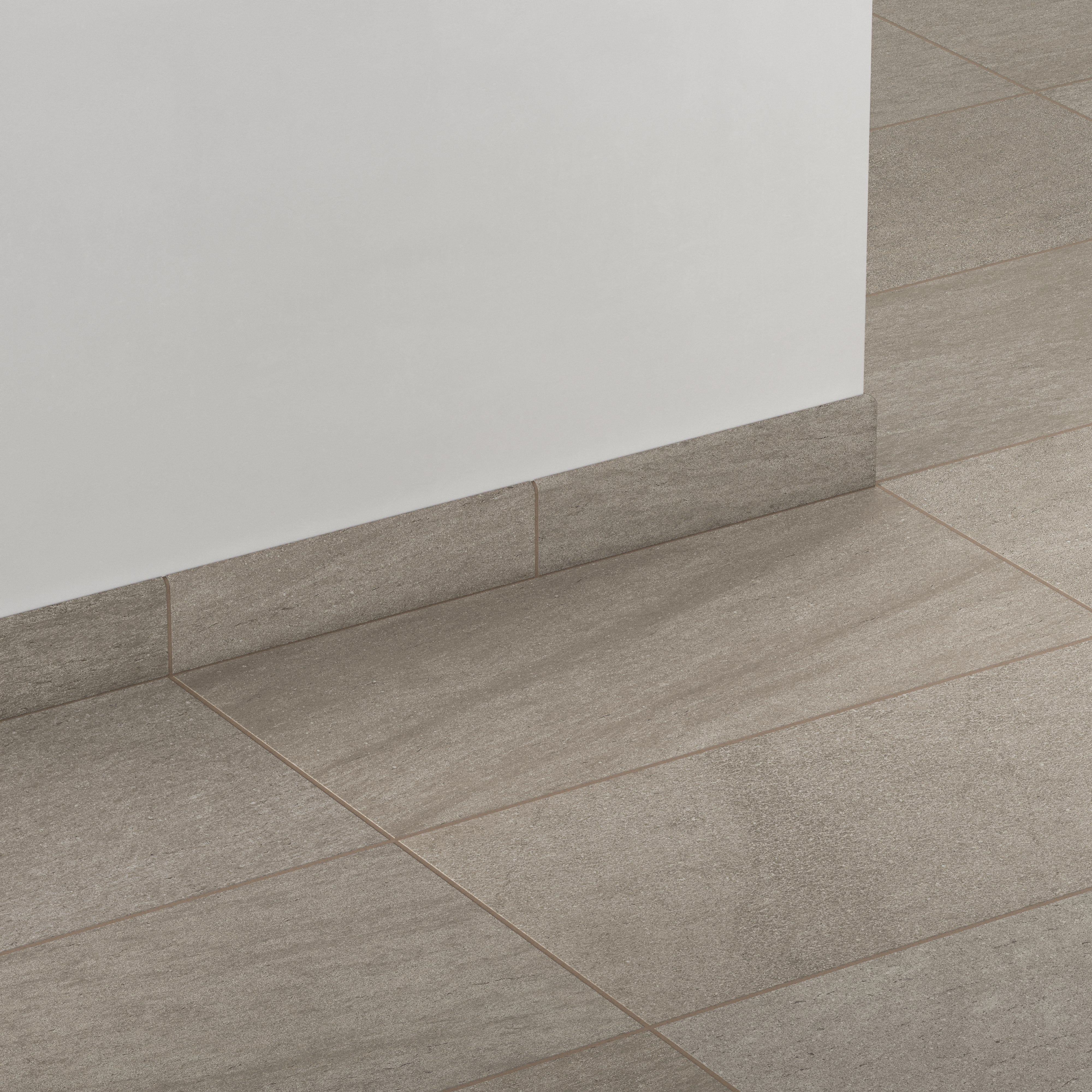 Our Brody 3x12 Matte Porcelain Bullnose Tile in Sienna captures the collection’s volcanic stone aesthetic with its grayish-beige tones and a subtly textured finish that enriches its mineral-like variations. Designed with a rounded edge, it extends the organic character of the field tile to corners, borders, and transitions in modern, nature-inspired interiors.