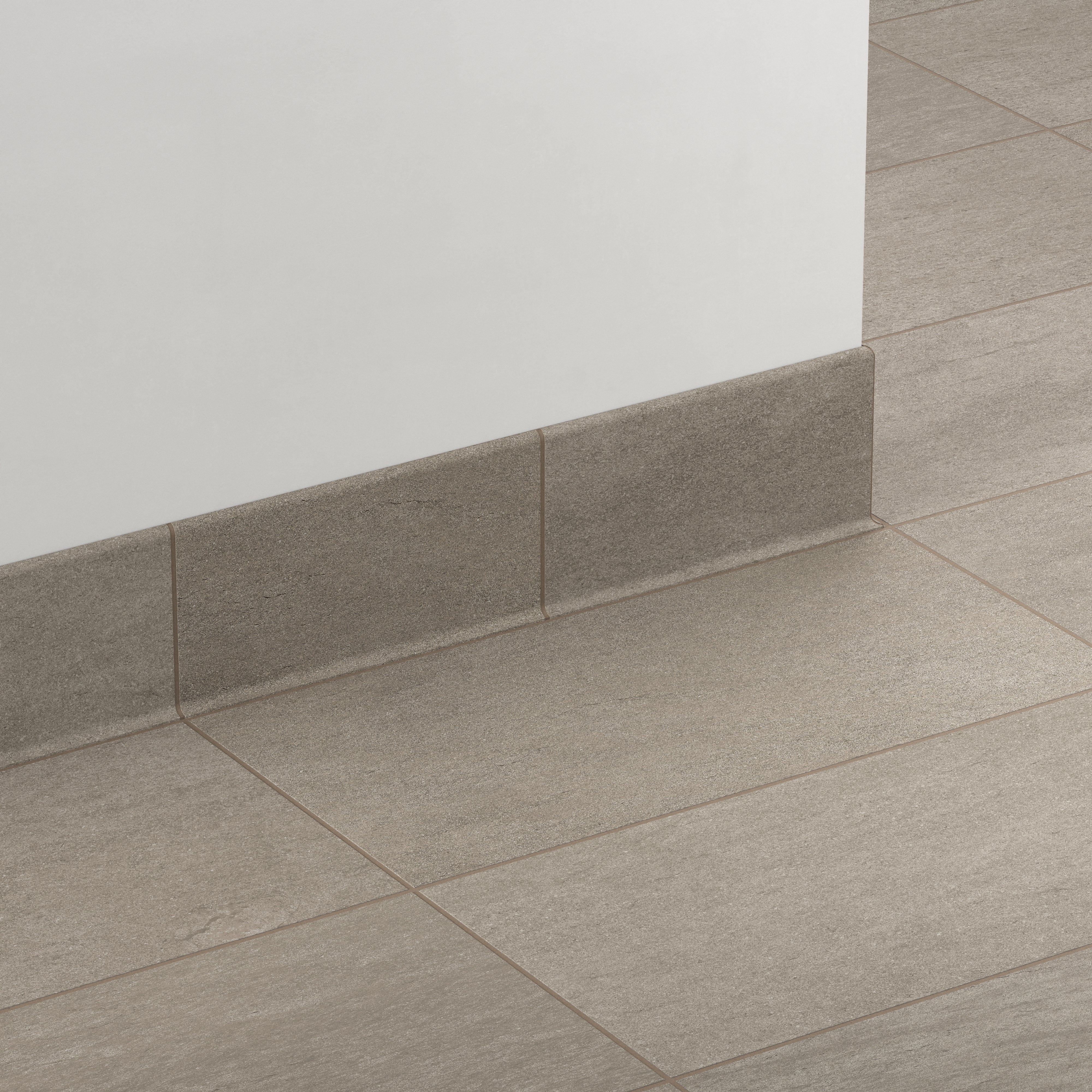 Extending the collection’s volcanic stone look, our Brody 6x12 Matte Porcelain Cove Base Tile in Sienna features grayish-beige tones and a subtly textured finish that enriches its mineral-like variations. Its gently concave profile forms a smooth, easy-to-clean transition between walls and floors, carrying the same earth-inspired character through every detail.