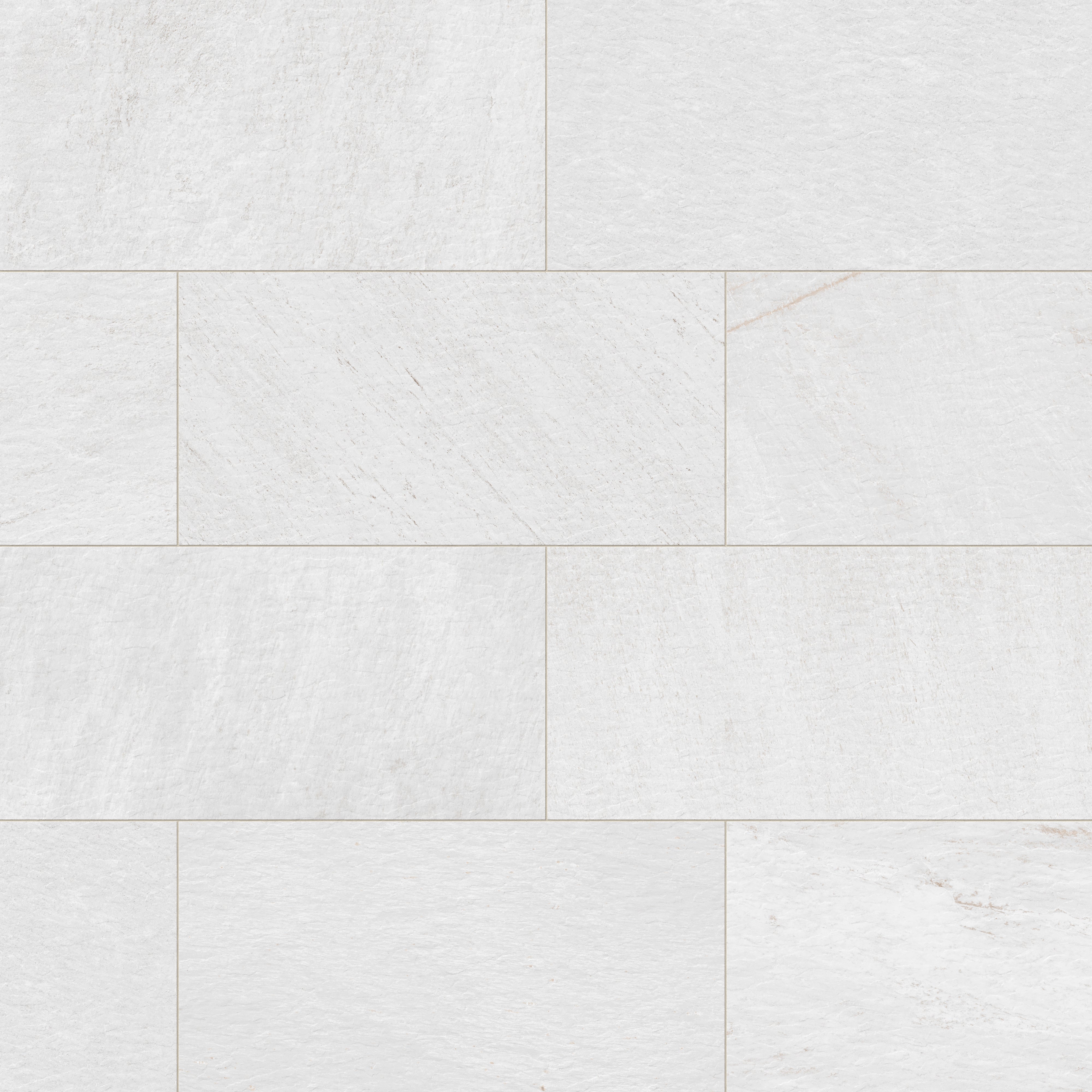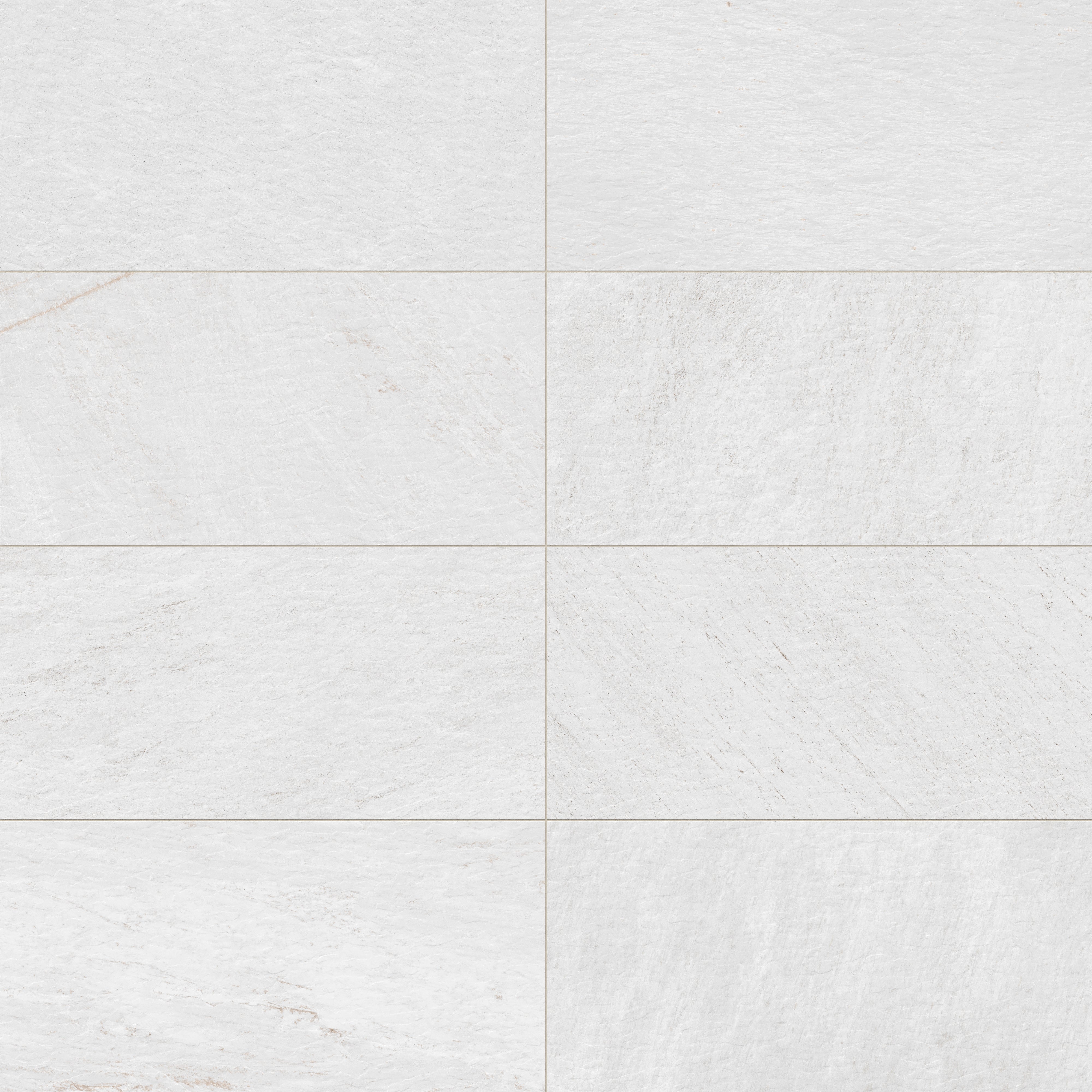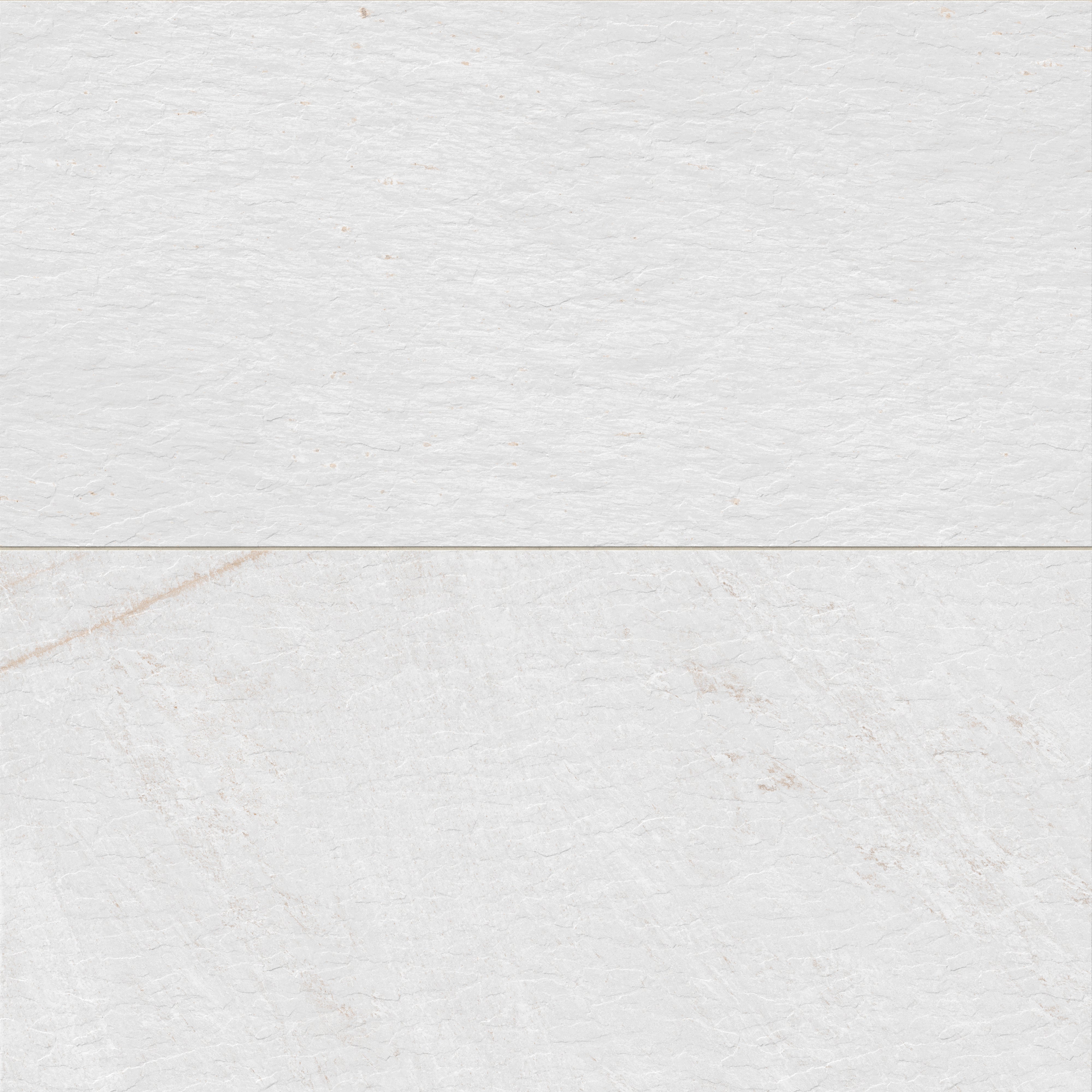 Our Carter 24x48 Grip 2cm Porcelain Paver Tile in Ash introduces a distinctly sophisticated interpretation of quartzite—among earth’s most resilient stones—in a large rectangular format, emphasizing its geologic layering and directional grains. Featuring a soft, chalky white base etched with fine, organic striations, its textured surface resembles the mineral complexity found in natural quarry cuts.