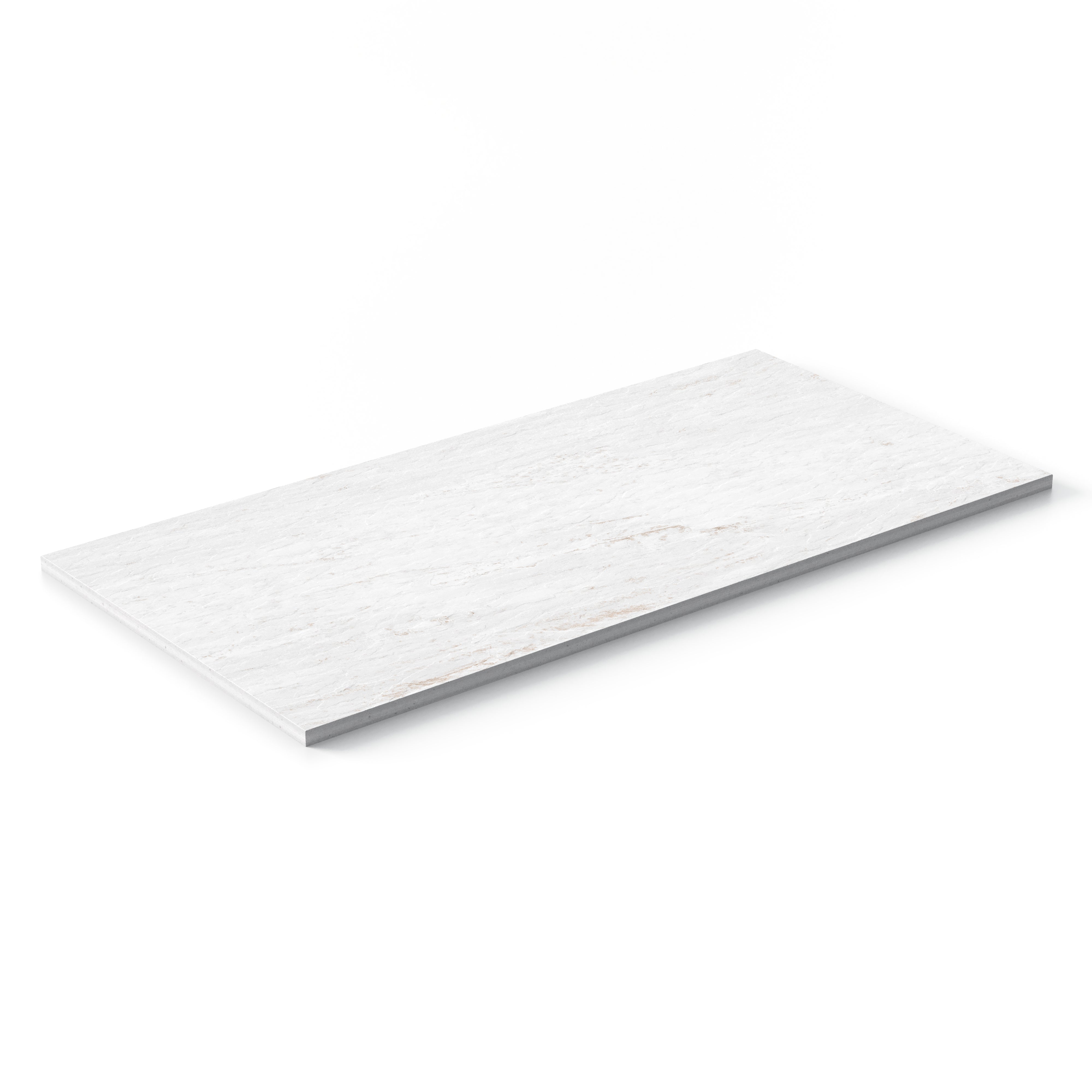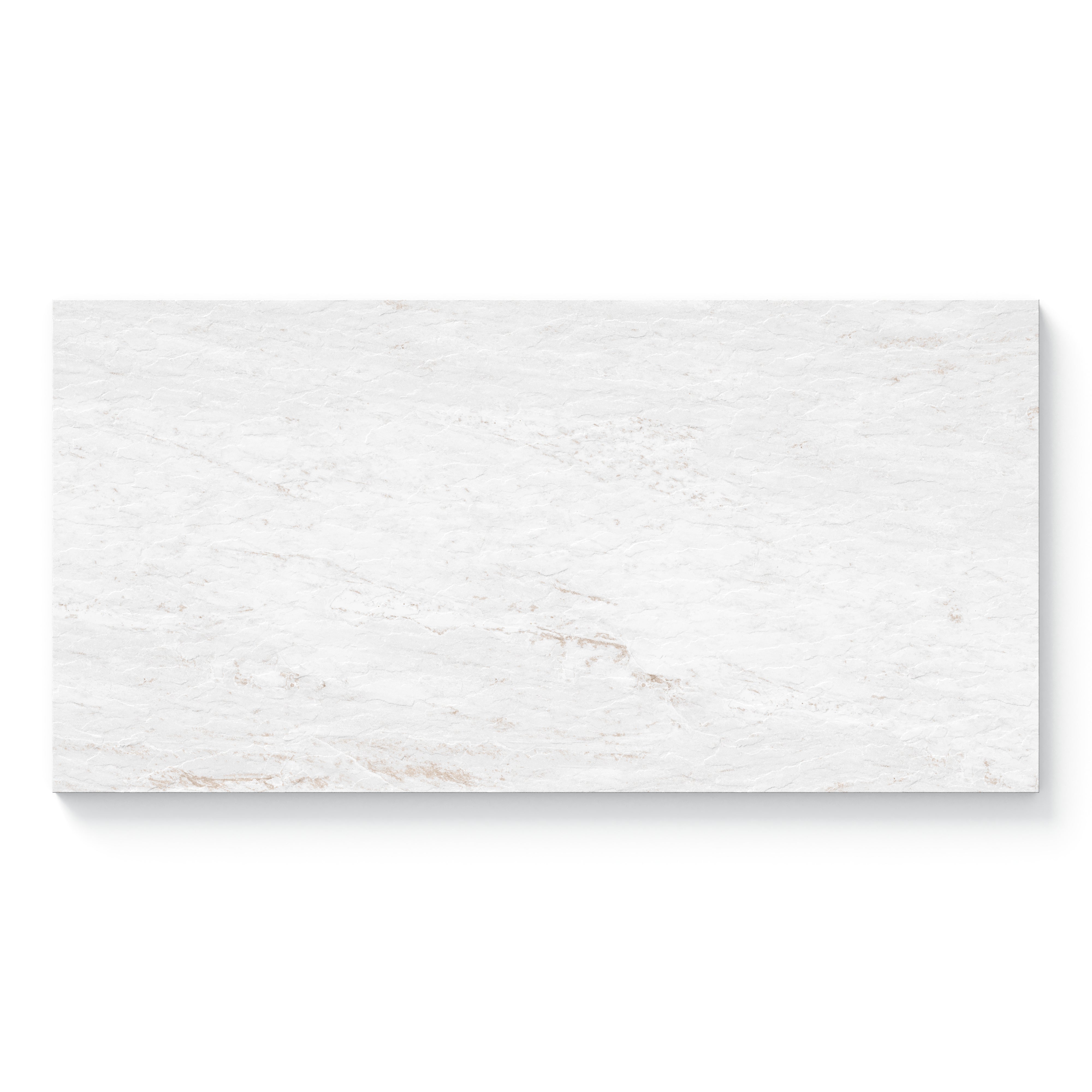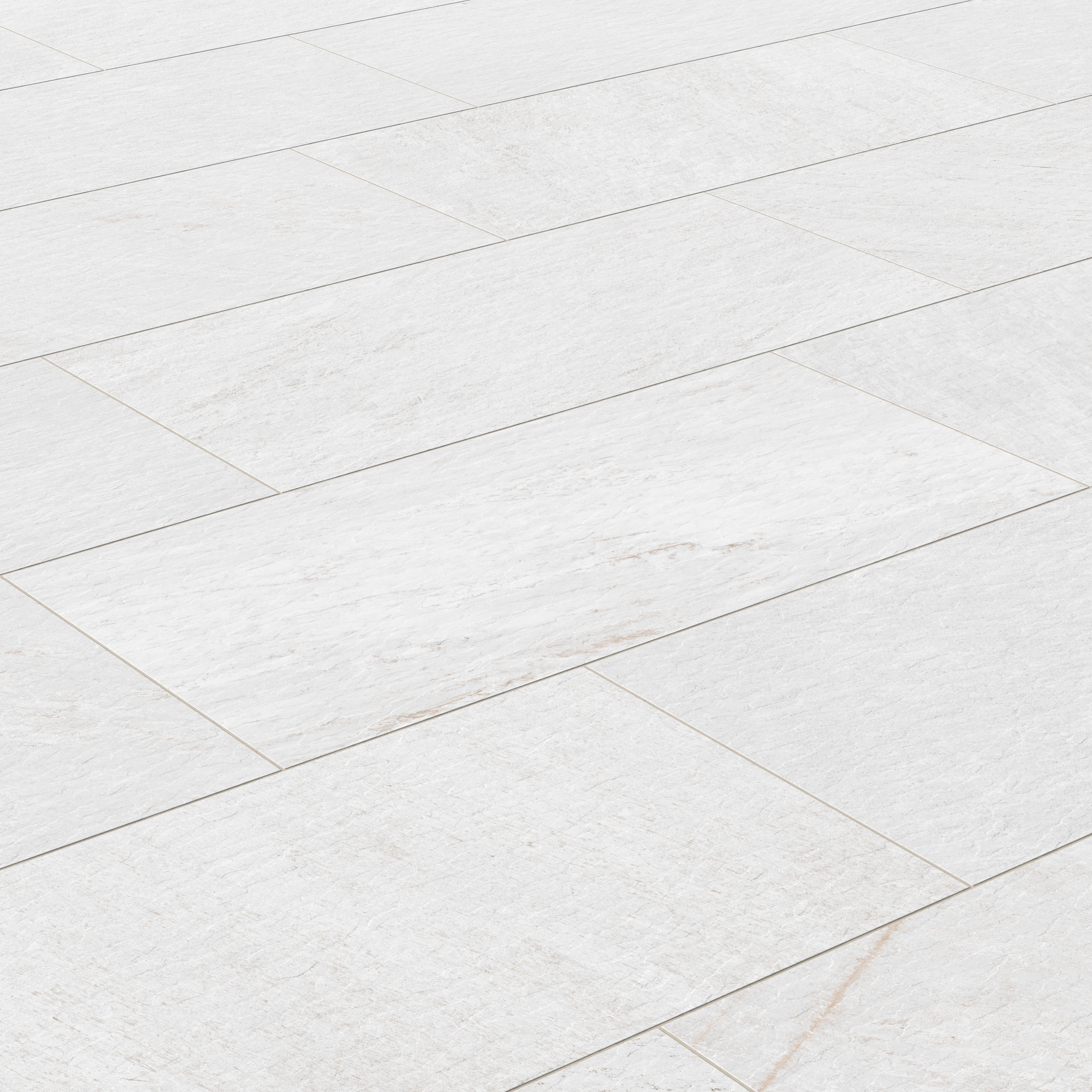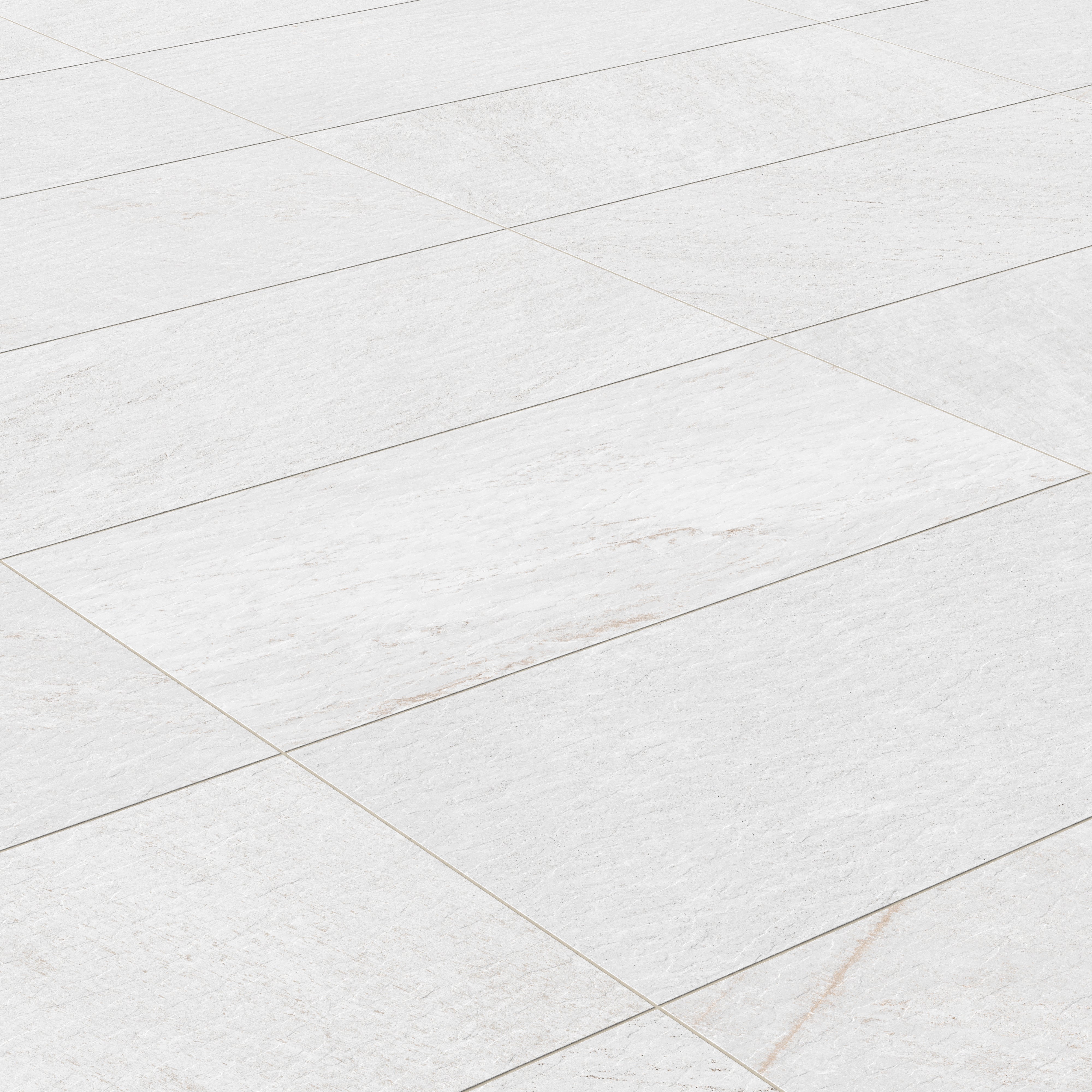 Our Carter 24x48 Grip 2cm Porcelain Paver Tile in Ash introduces a distinctly sophisticated interpretation of quartzite—among earth’s most resilient stones—in a large rectangular format, emphasizing its geologic layering and directional grains. Featuring a soft, chalky white base etched with fine, organic striations, its textured surface resembles the mineral complexity found in natural quarry cuts.