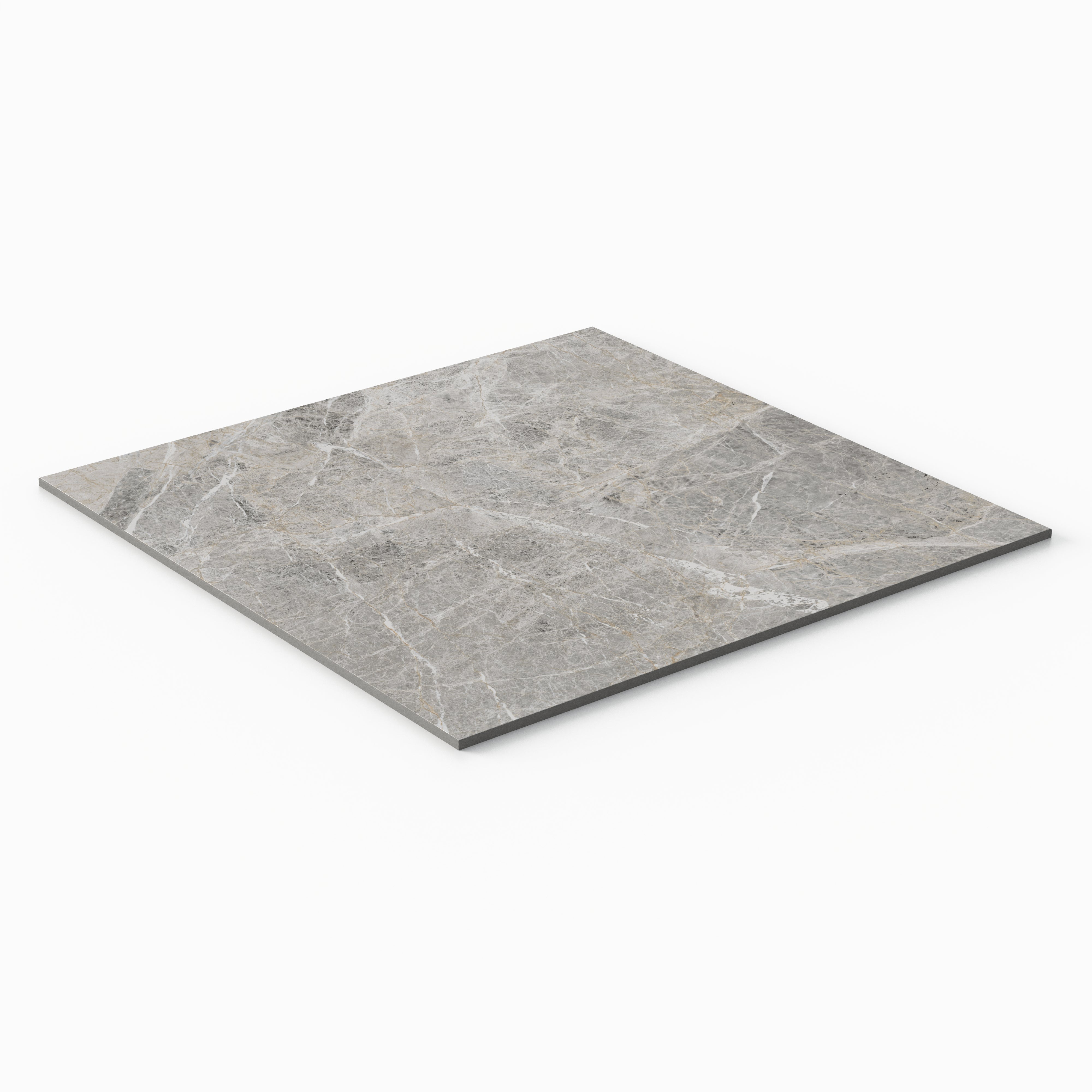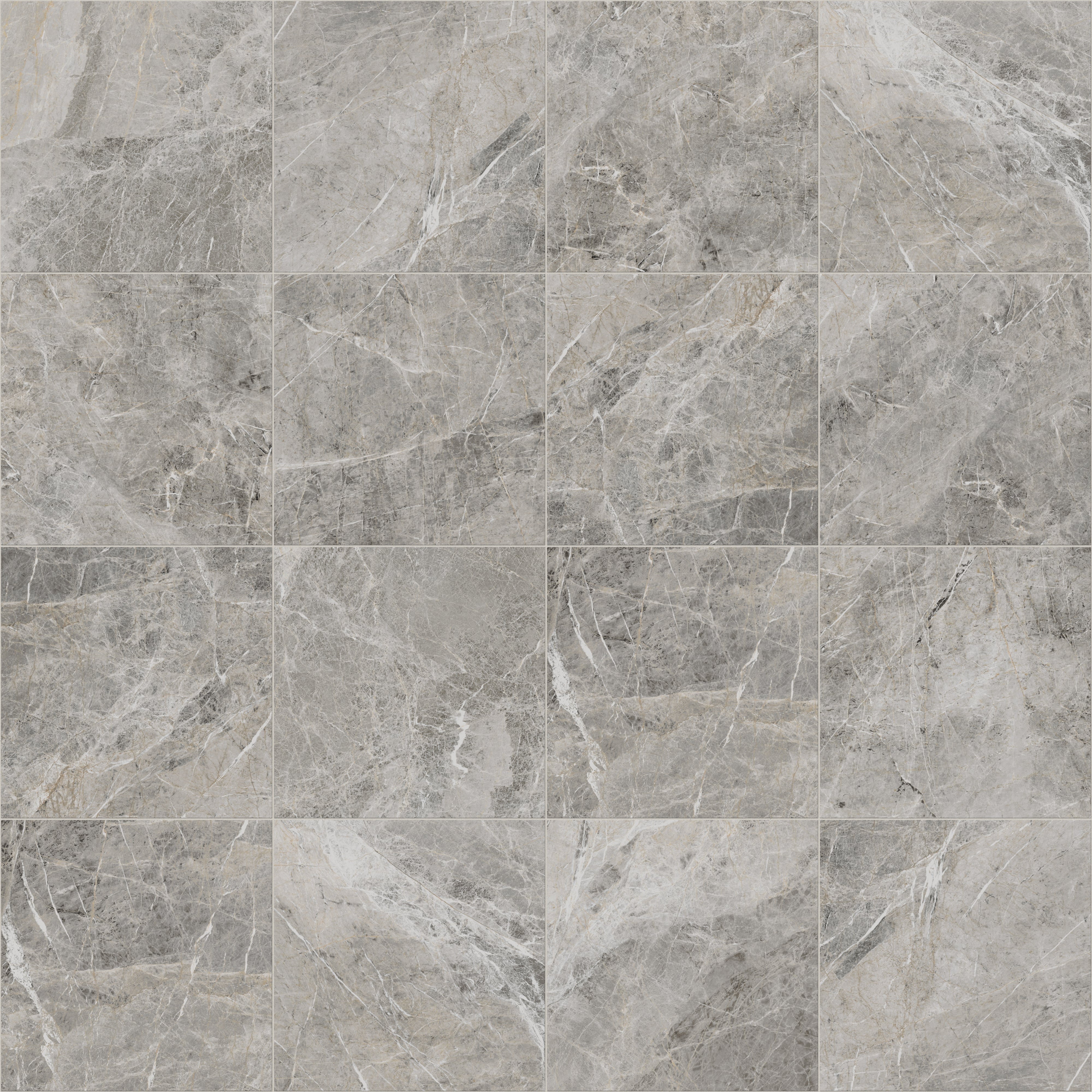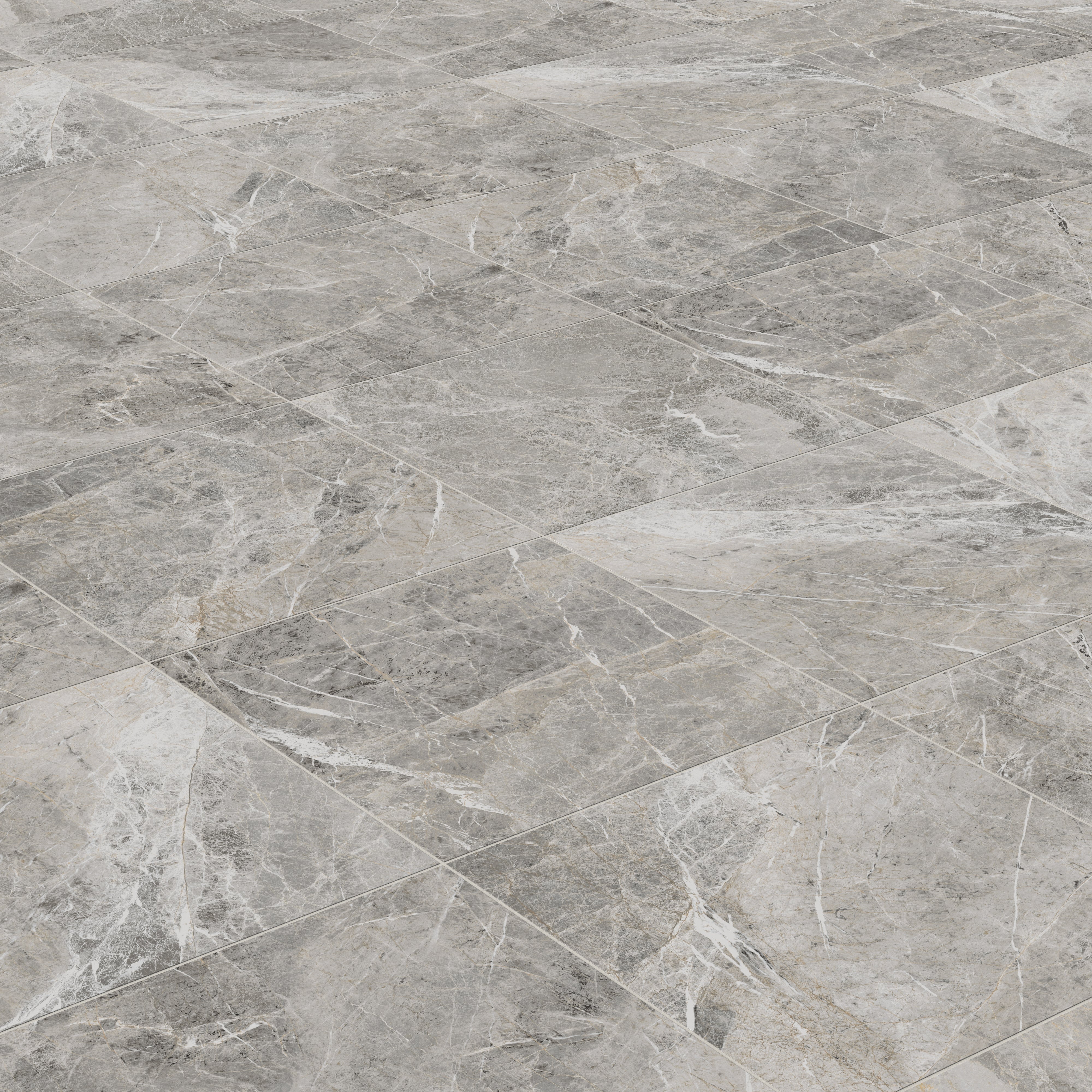 Embracing the natural marble aesthetic, our Chantel 24x24 Matte Porcelain Tile in Imperial reinterprets this timeless, exquisite material through a modern square format. Each large piece carries striking veining across its rich mid-gray surface, softened by a rustic finish that creates an expansive yet sophisticated space.