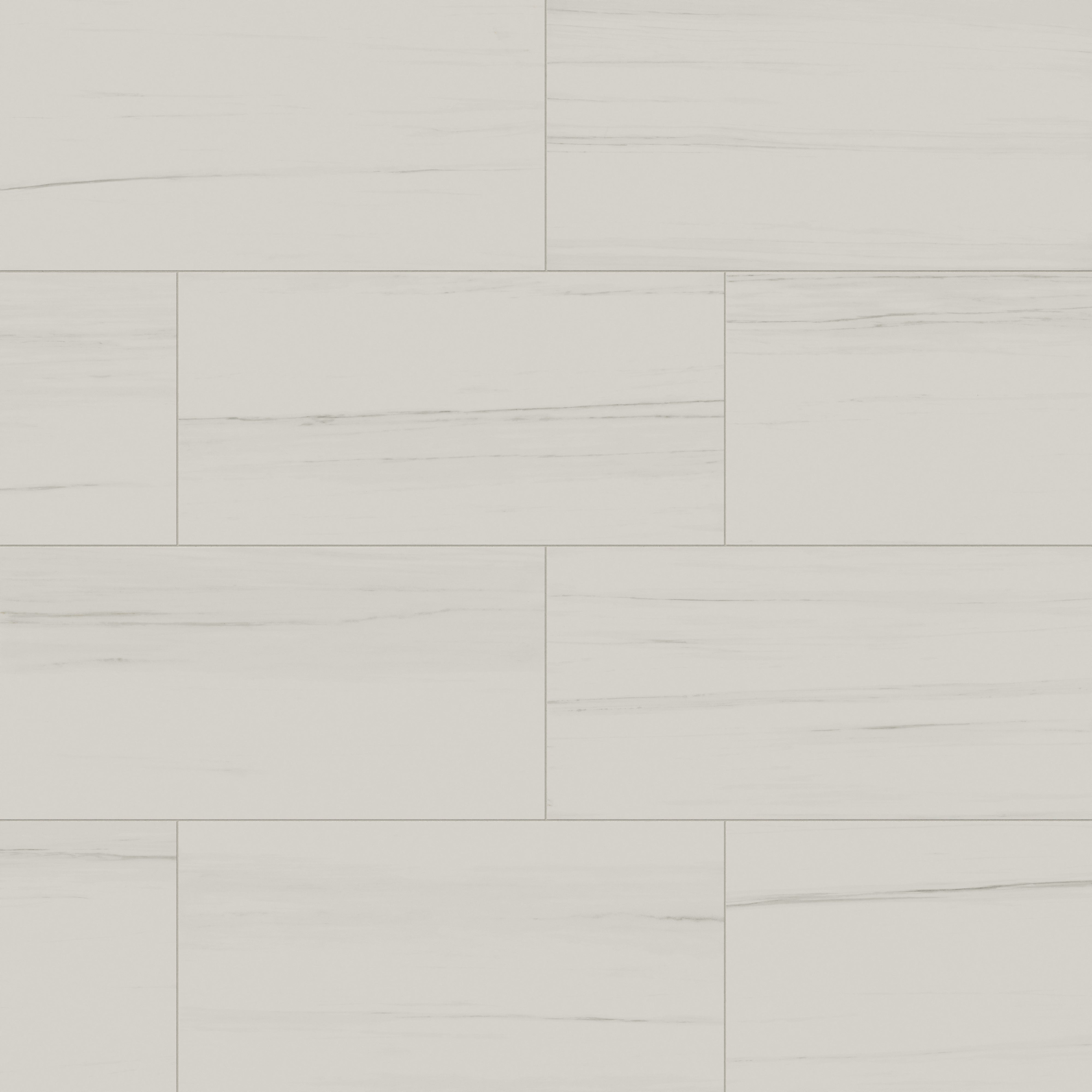 Embracing the natural marble aesthetic, our Chantel 24x48 Polished Porcelain Tile in Dolomite reinterprets this timeless, exquisite material through a modern rectangular format. Each large piece carries fine-line striations across its off-white surface, accentuated by a sleek finish that creates an expansive yet sophisticated space.