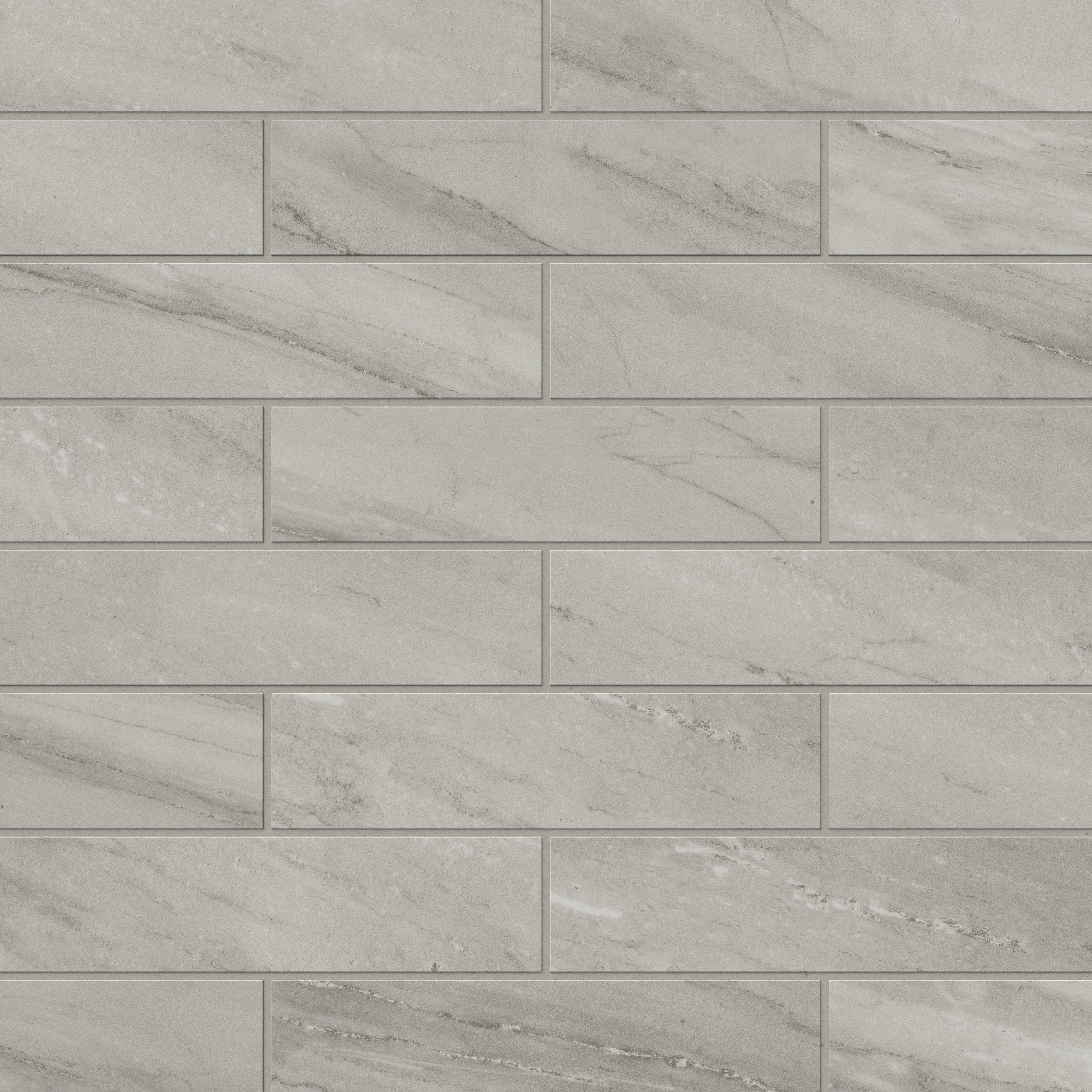 Embracing the natural marble aesthetic, our Chantel 3x12 Matte Porcelain Tile in Alaska Grey reinterprets this timeless, exquisite material through a modern subway format. Each elongated piece carries drifted veins in earthy gray tones, softened by a rustic finish that creates an expansive yet sophisticated space.