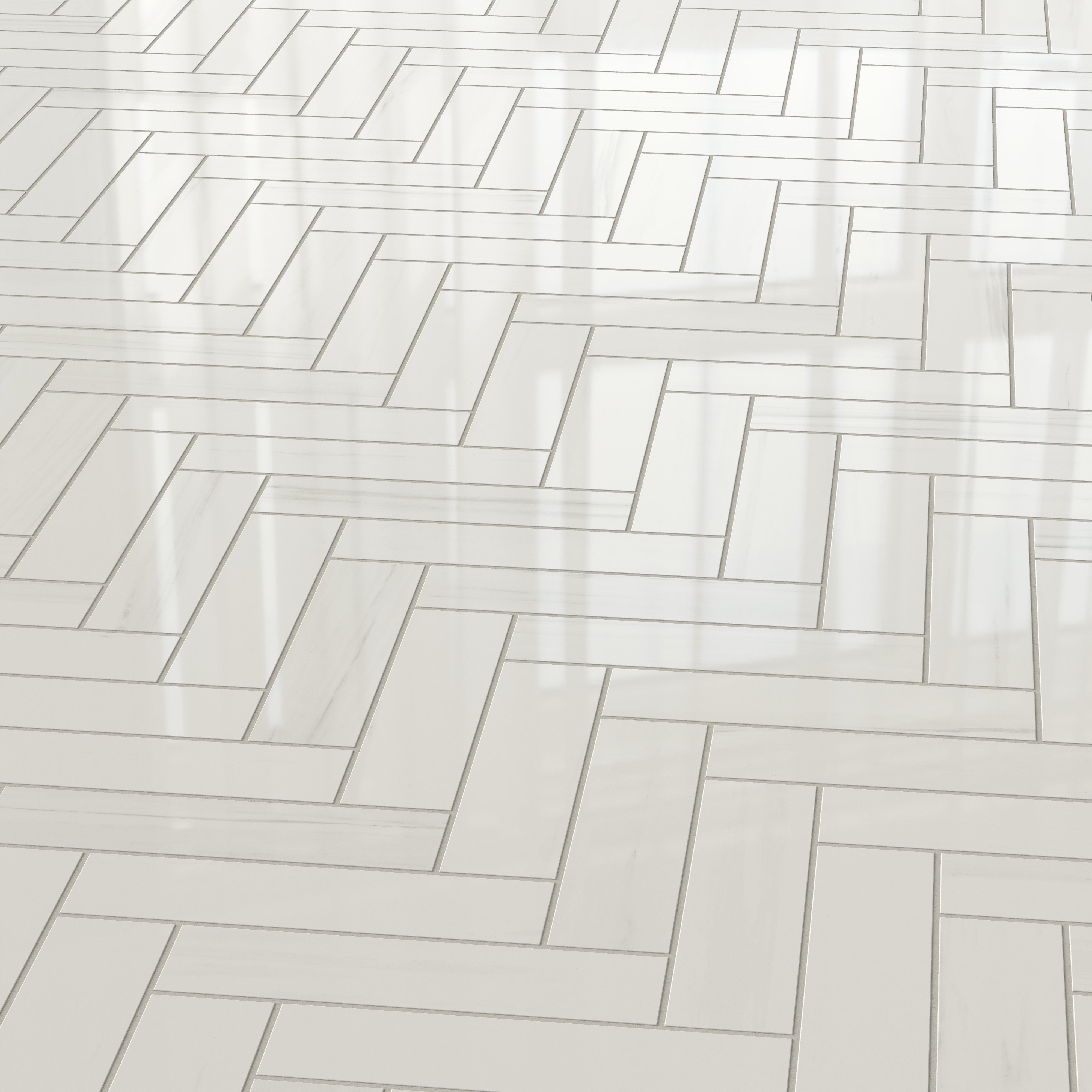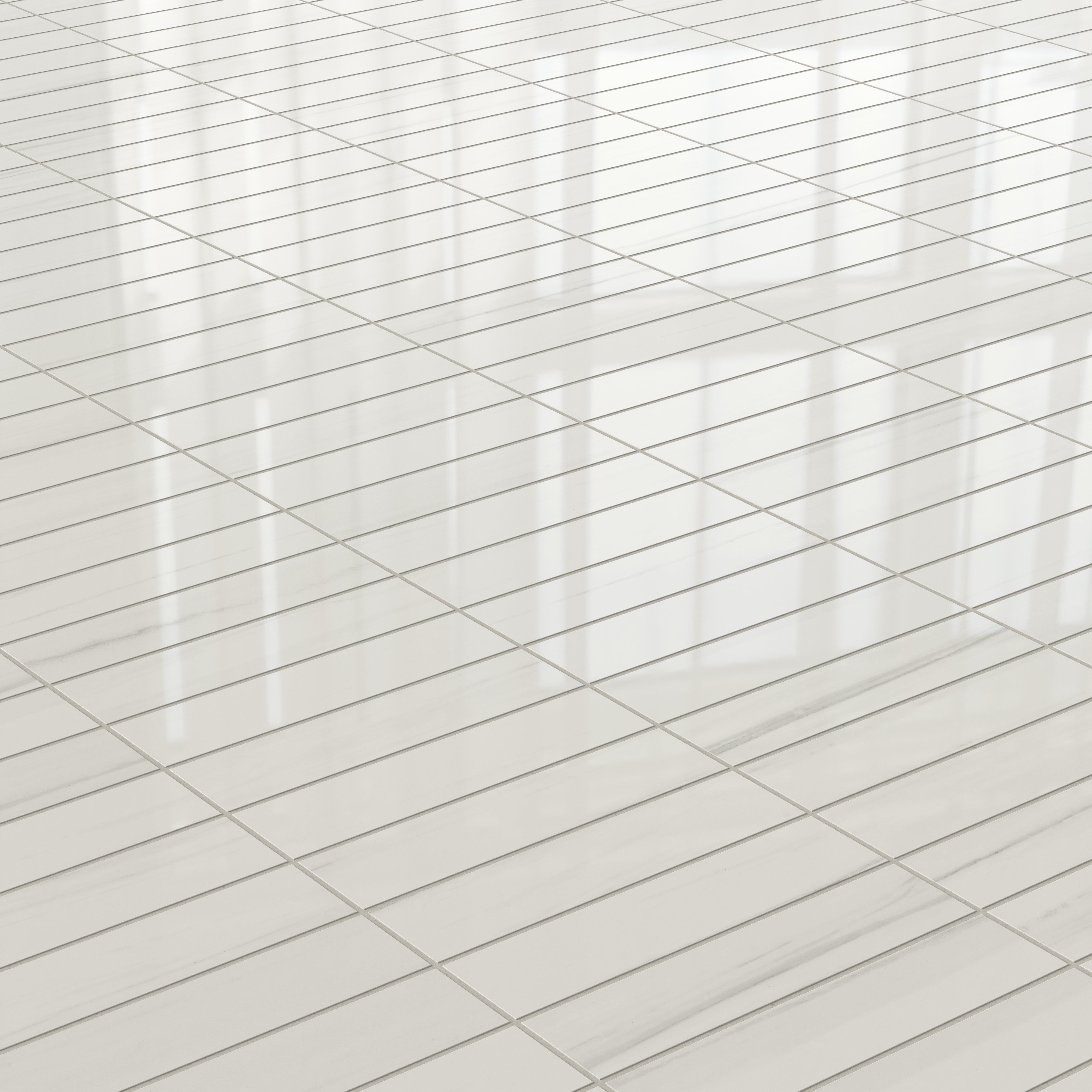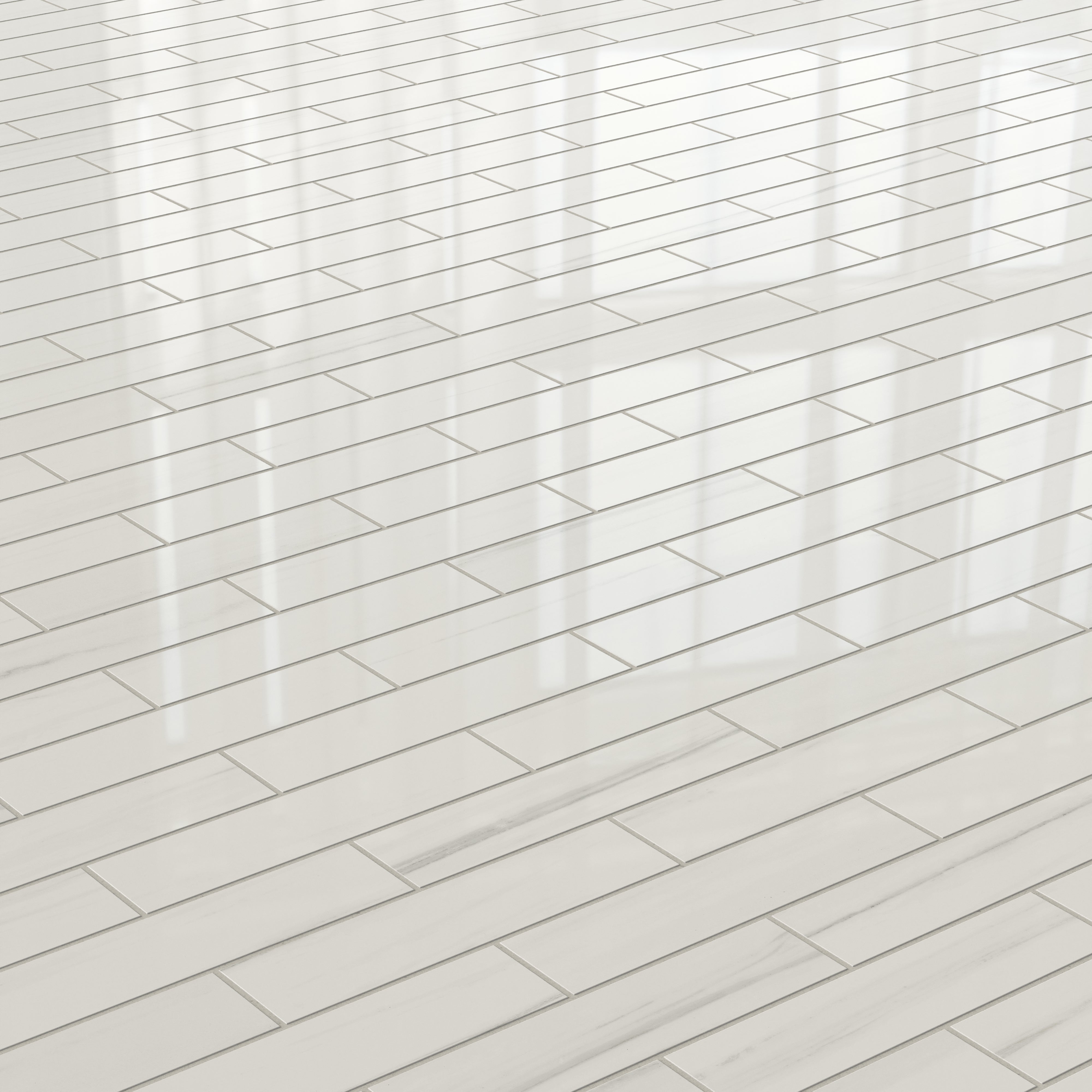 Embracing the natural marble aesthetic, our Chantel 3x12 Polished Porcelain Tile in Dolomite reinterprets this timeless, exquisite material through a modern subway format. Each elongated piece carries fine-line striations across its off-white surface, accentuated by a sleek finish that creates an expansive yet sophisticated space.