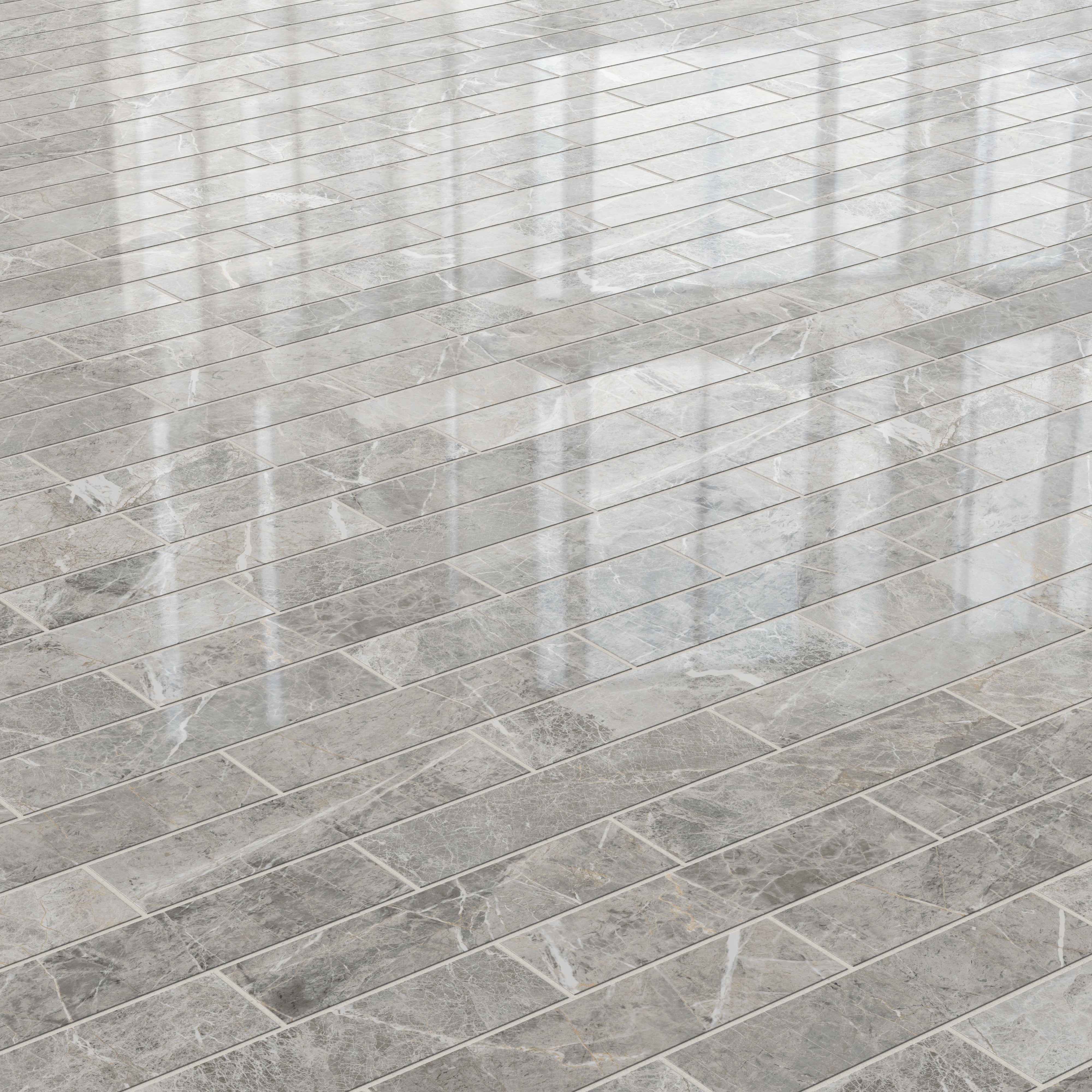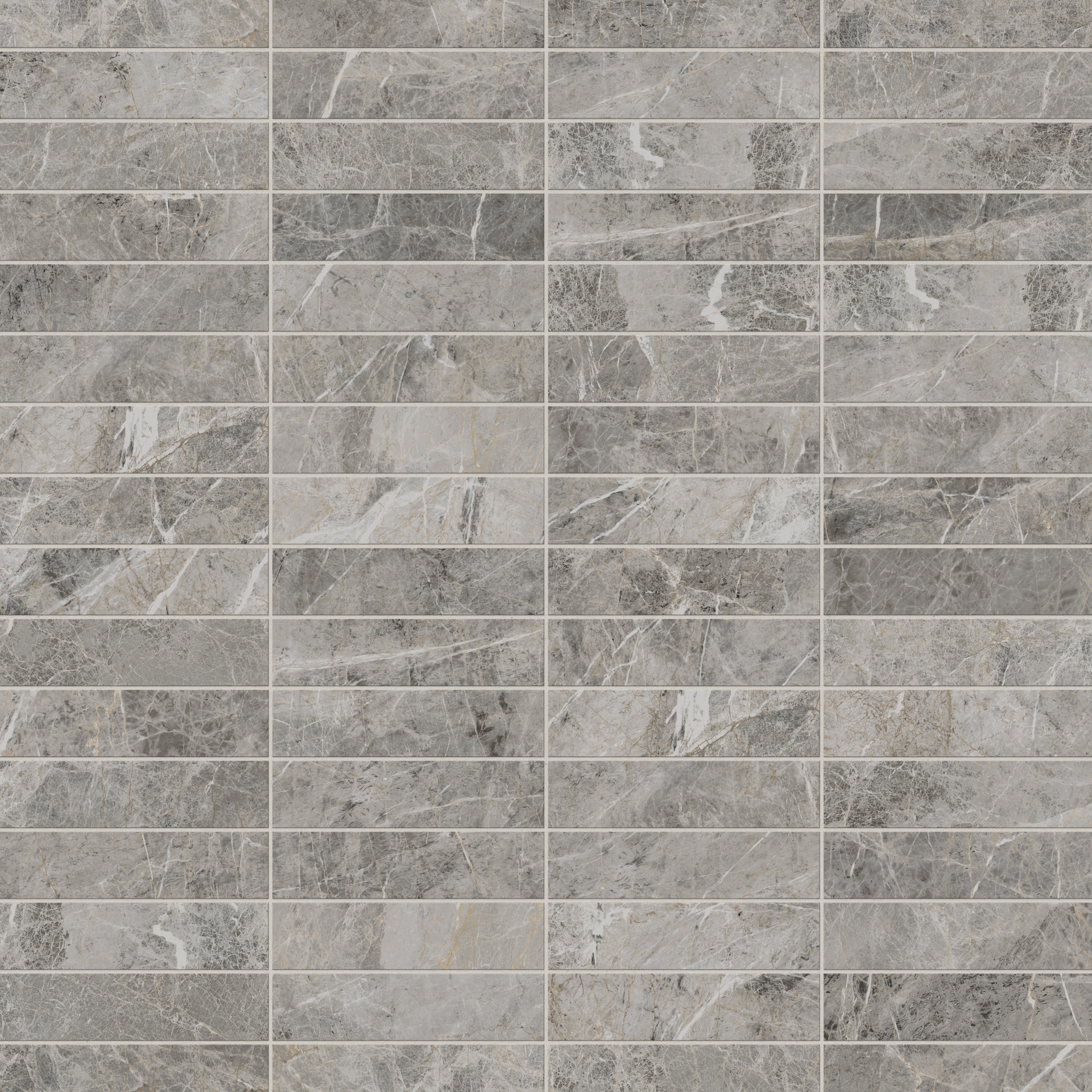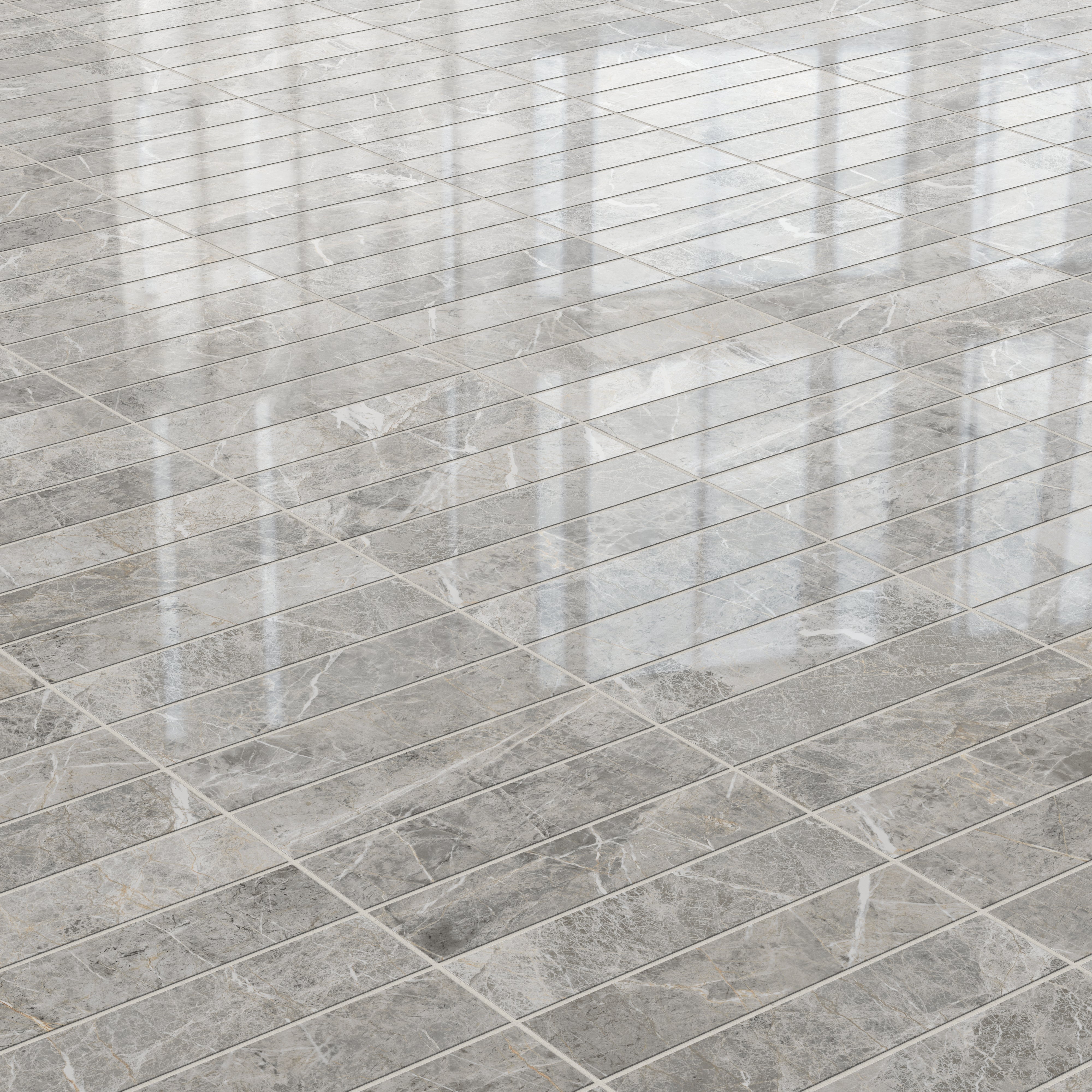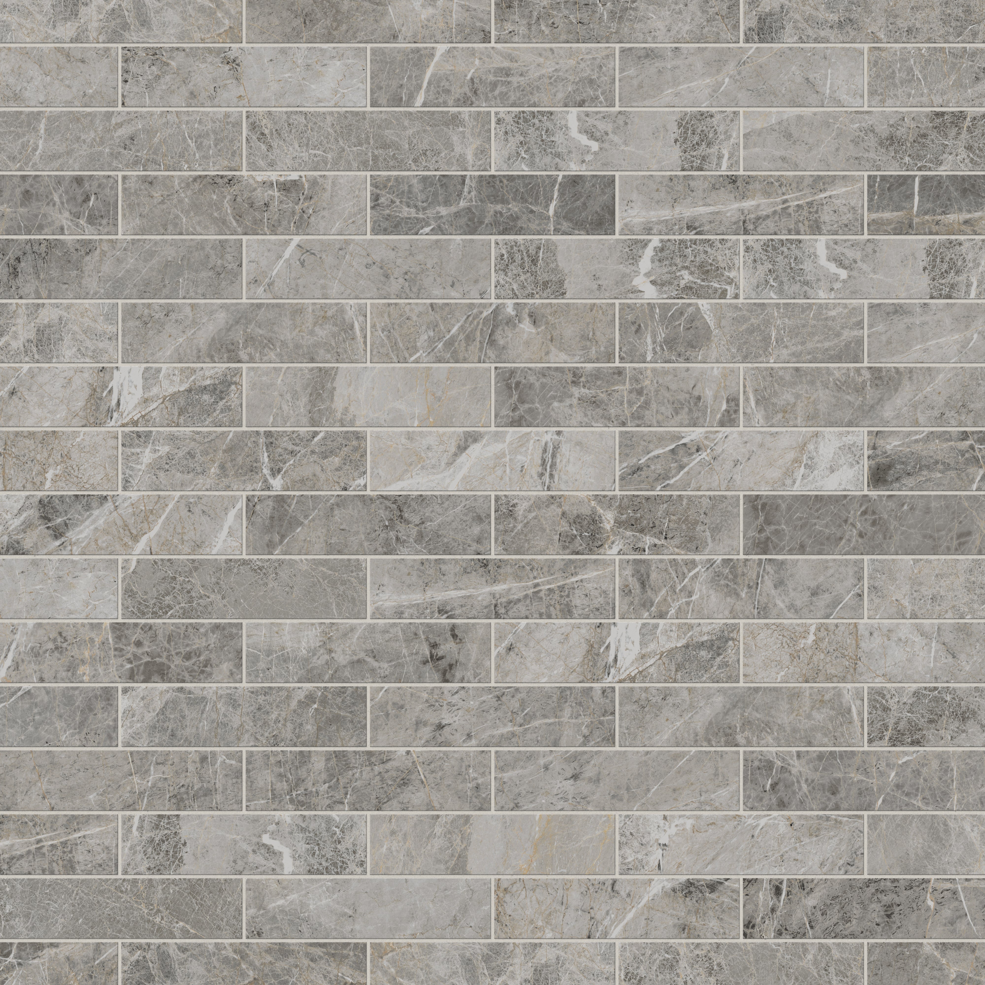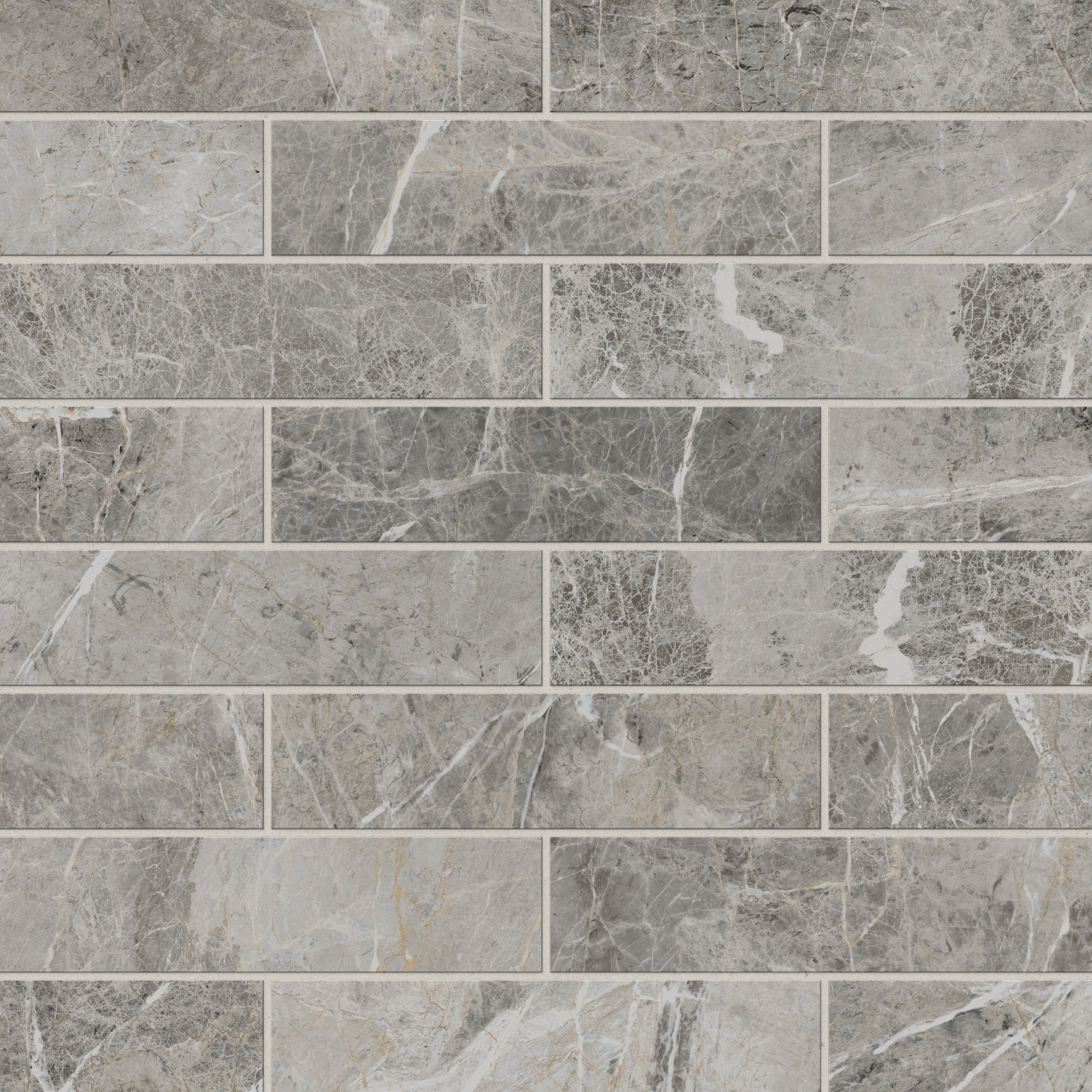 Embracing the natural marble aesthetic, our Chantel 3x12 Polished Porcelain Tile in Imperial reinterprets this timeless, exquisite material through a modern subway format. Each elongated piece carries striking veining across its rich mid-gray surface, accentuated by a sleek finish that creates an expansive yet sophisticated space.