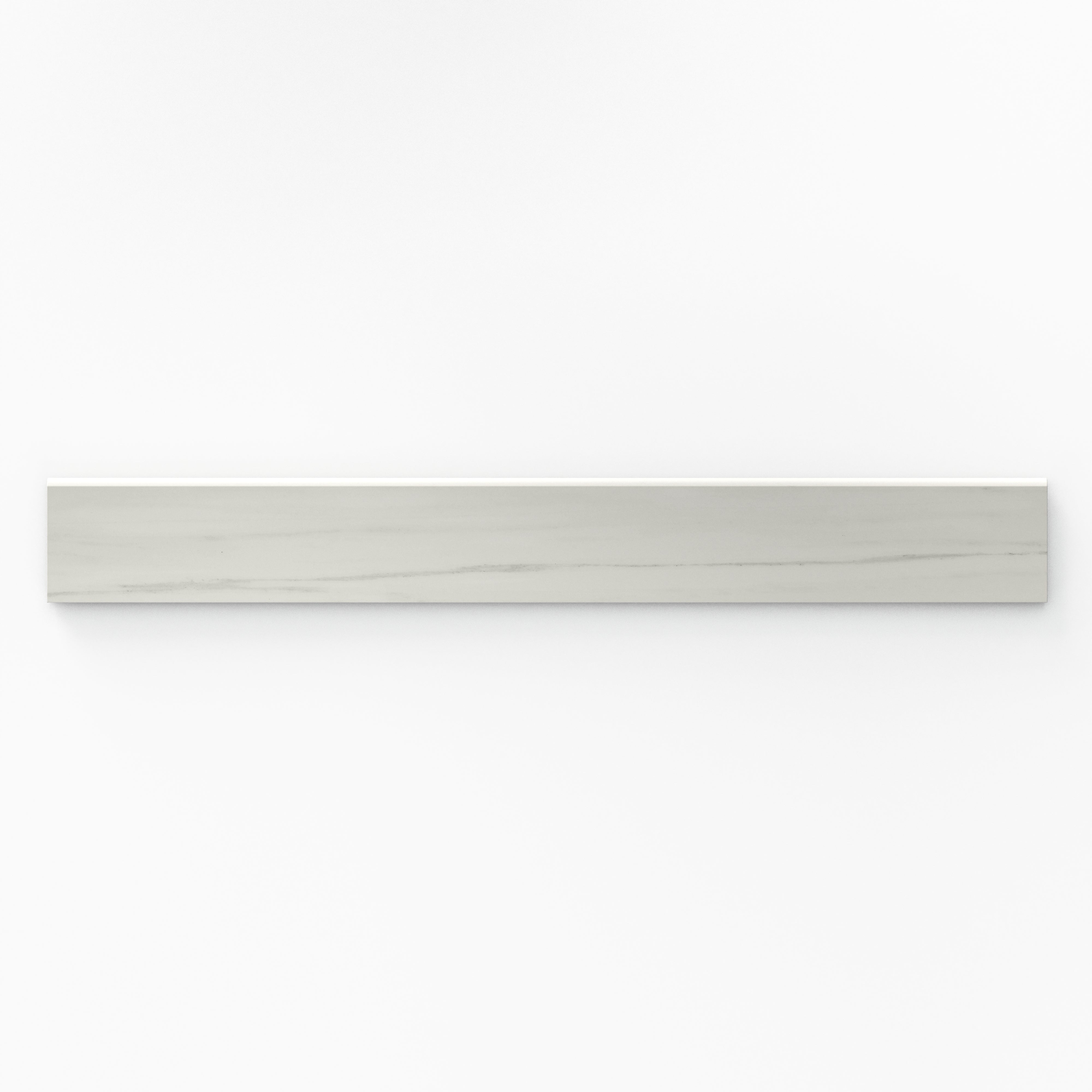 Featuring the same natural marble aesthetic, our Chantel 3x24 Matte Porcelain Bullnose Tile in Dolomite provides a seamless finishing detail for edges, corners, and wall terminations with its fine-line striations across its off-white surface, softened by a rustic finish for a smooth, elegant transition.