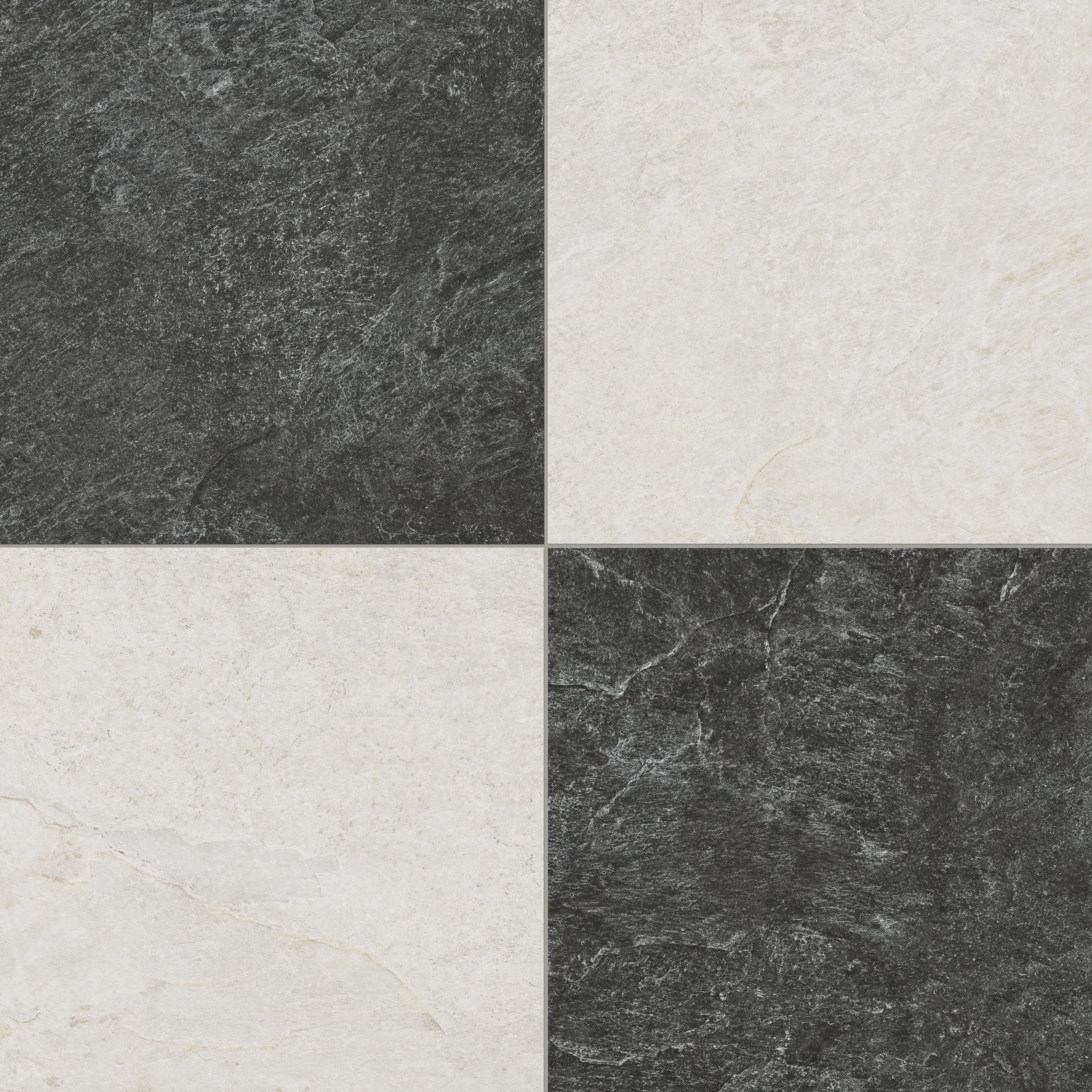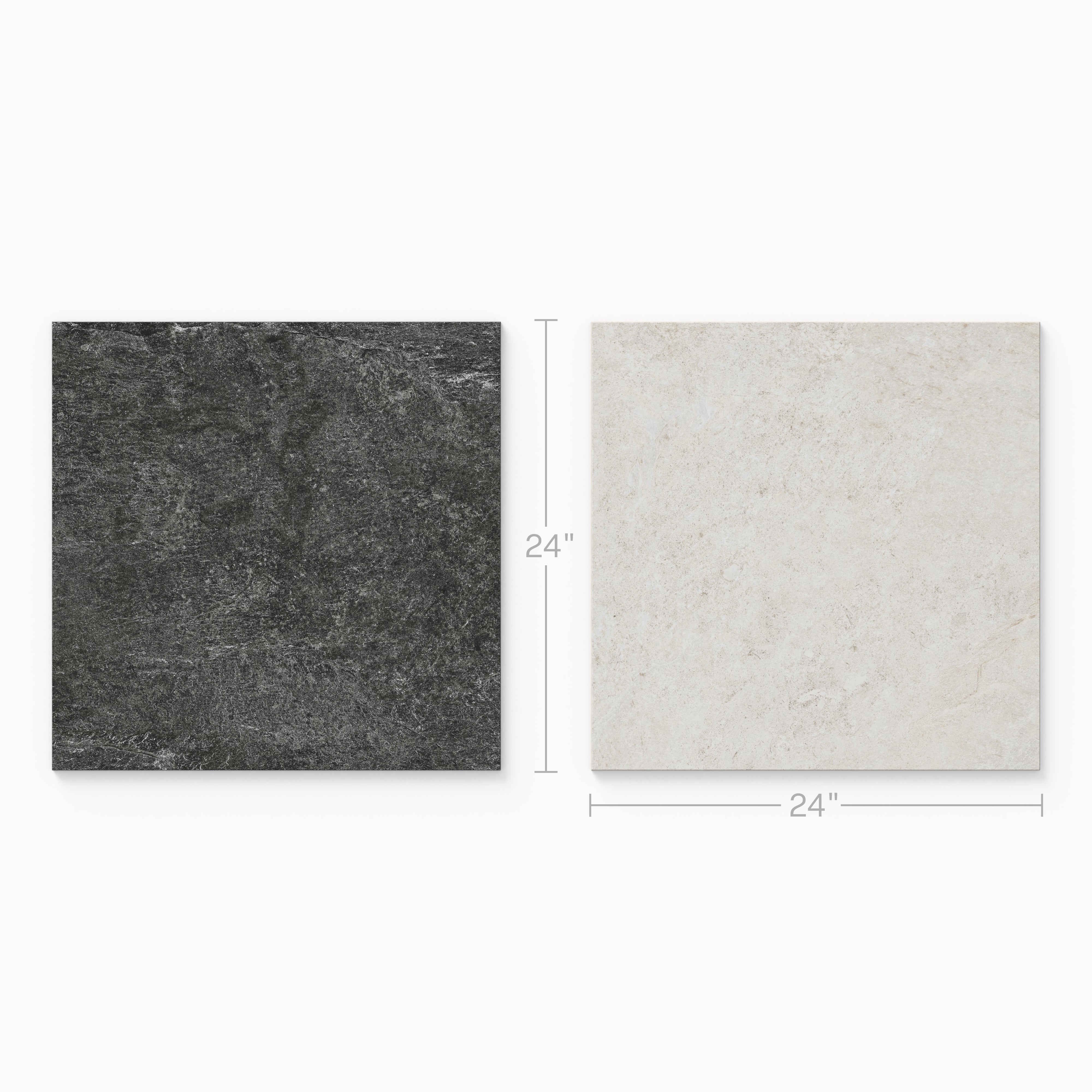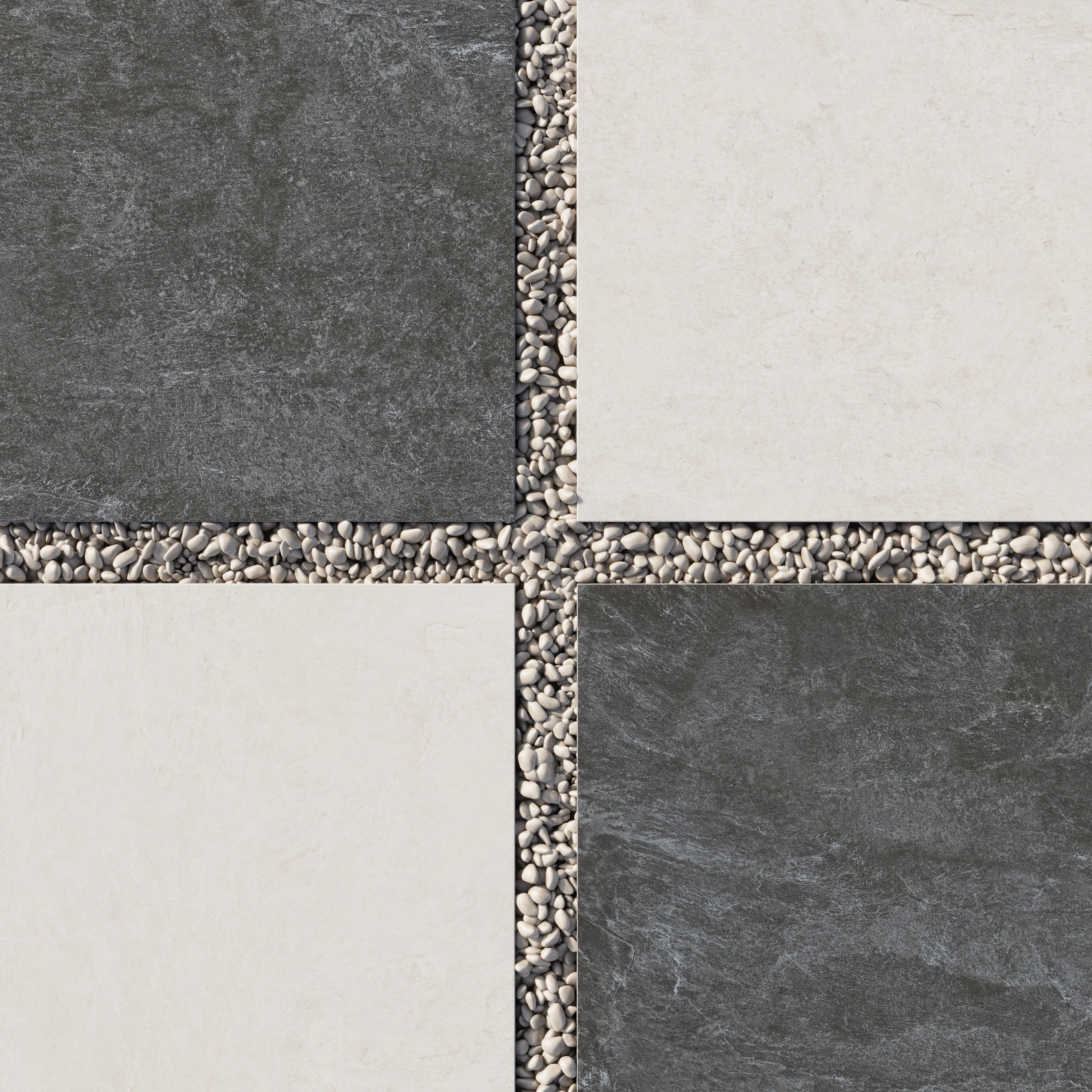 Our Dawson 24x24 Checkerboard Grip 2cm Porcelain Paver Tile in Charcoal & Alabaster captures the delicate veining variations and rich textural complexity that reflect how true quartzite is naturally formed over time. Its large format works in harmony with a classic black-and-white palette and earthy matte-like glaze to accentuate these organic details, bringing a modern sensibility to biophilic design.