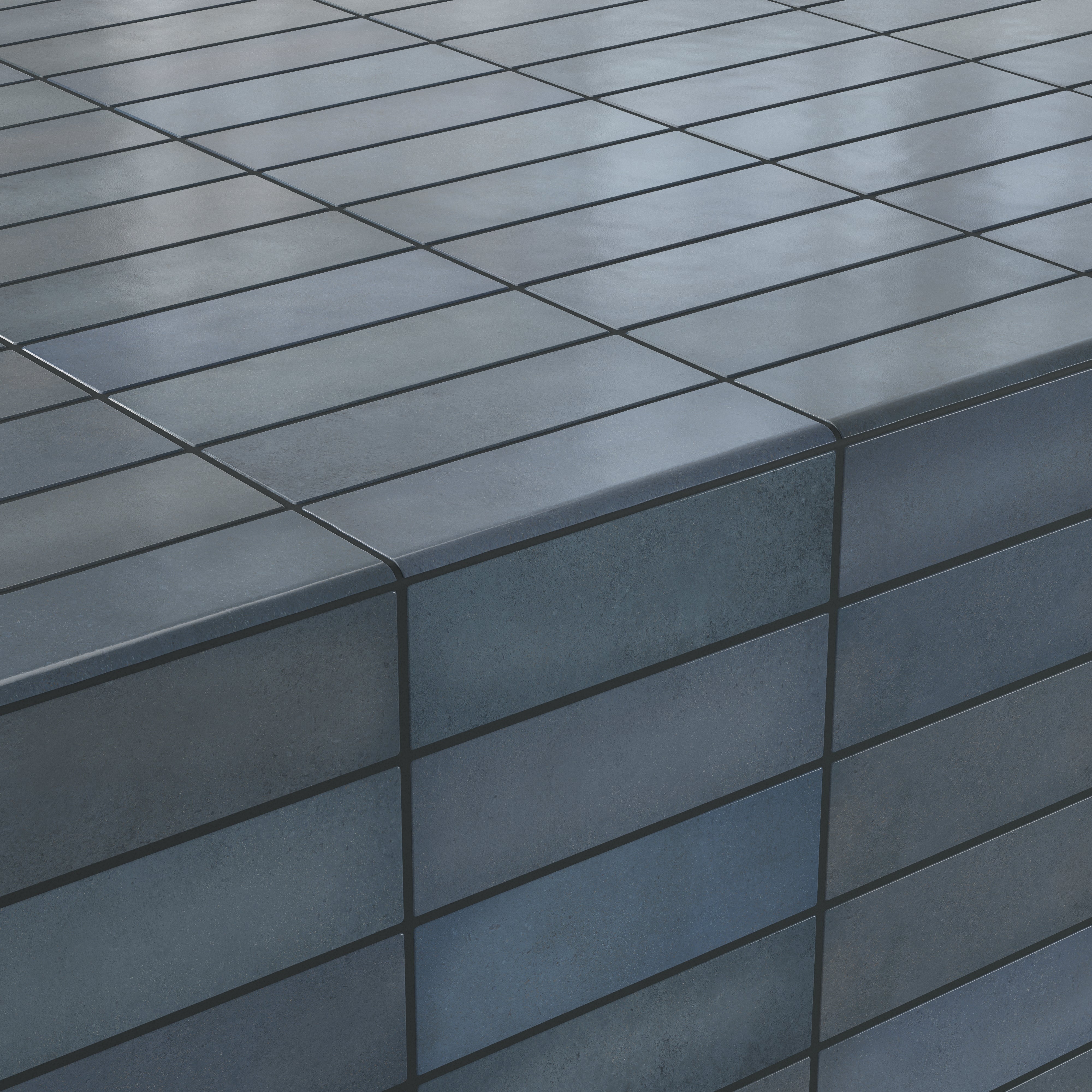 Our Ellie 2.5x8 Matte Ceramic Bullnose Tile in Denim builds on the handcrafted look of its field tiles with the same earthy, layered look and subtly varied, dark blue shade. Its slim rectangular format is designed to neatly finish edges, corners, and tub surrounds with a compact size that complements modern, space-conscious interiors.