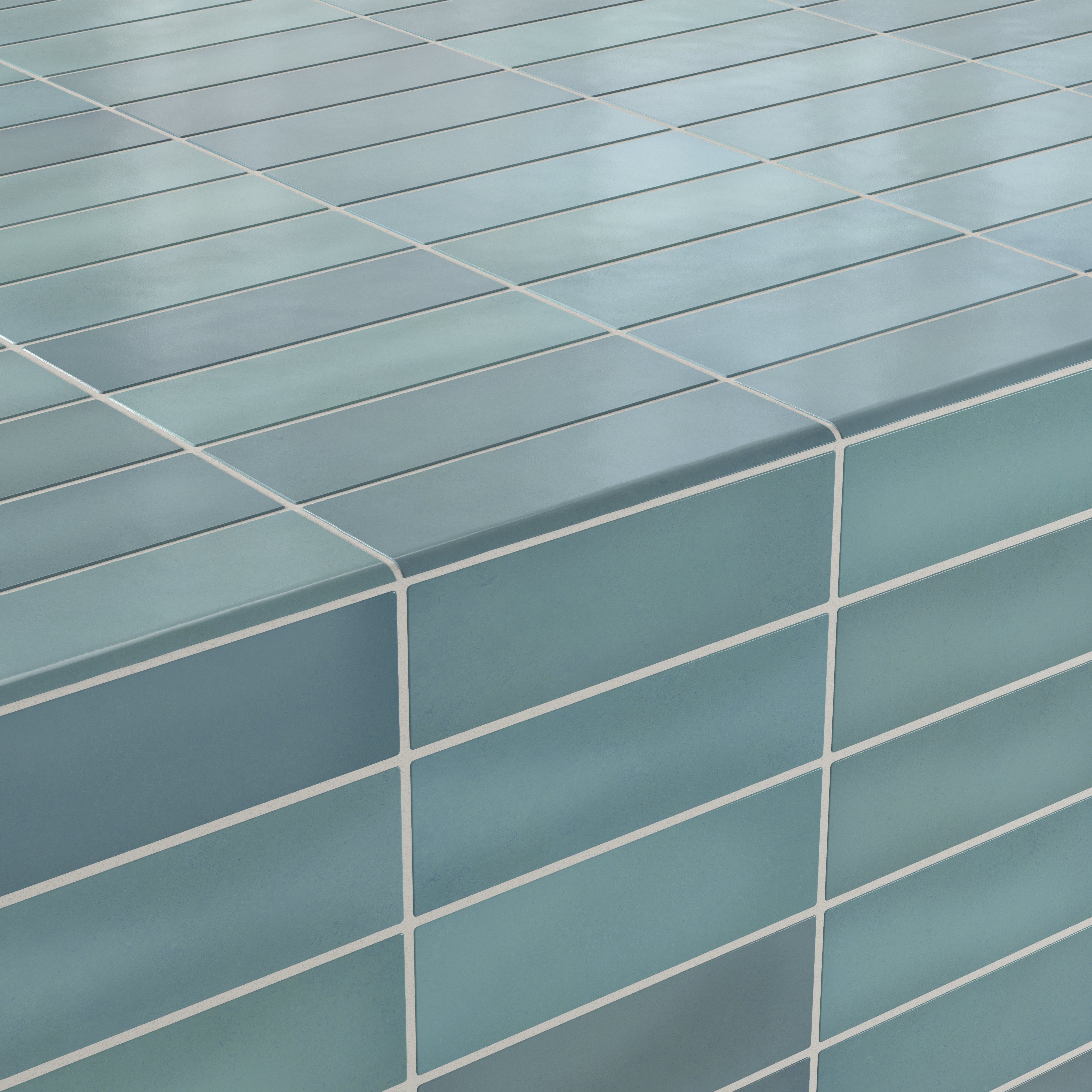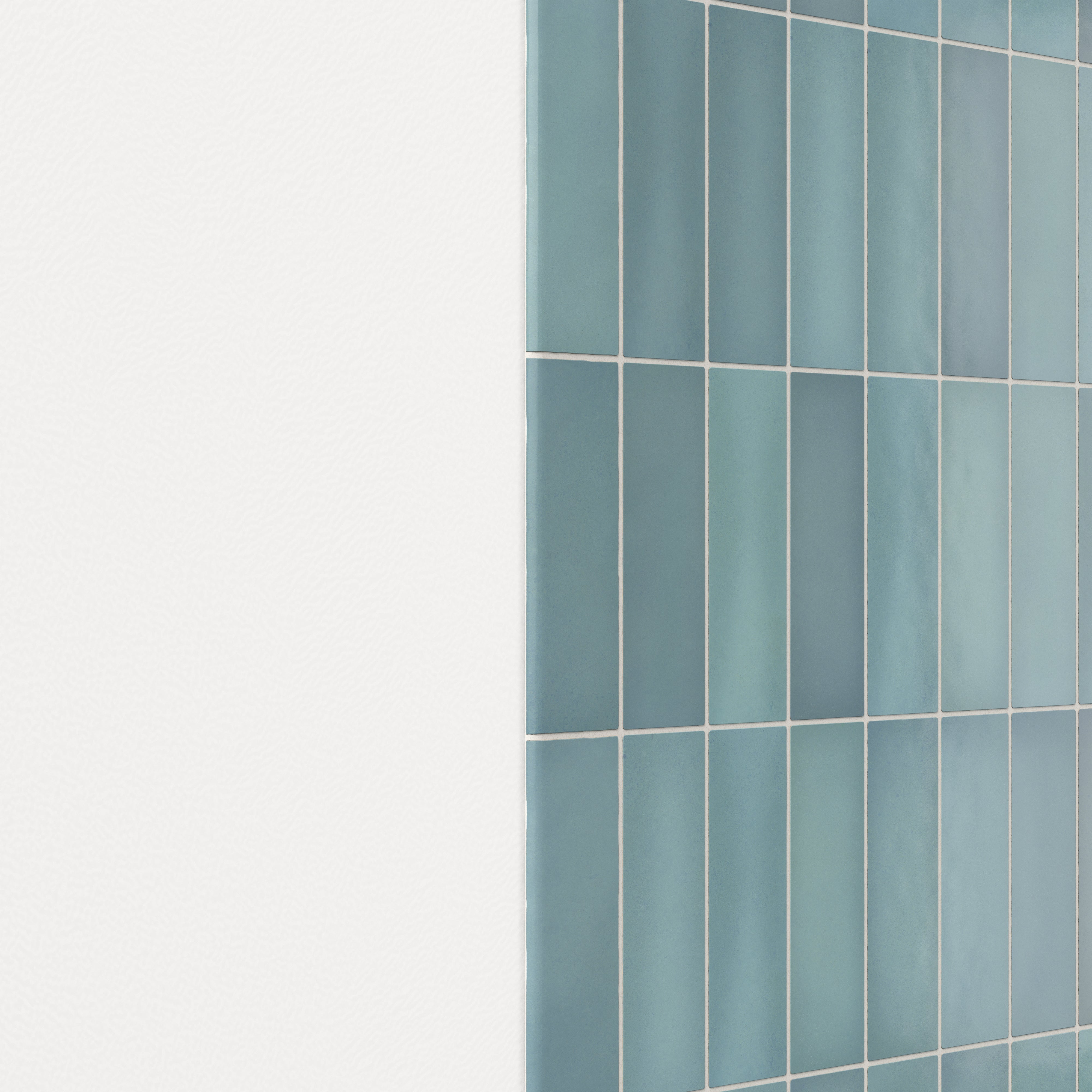 Our Ellie 2.5x8 Matte Ceramic Bullnose Tile in Lake builds on the handcrafted look of its field tiles with the same earthy, layered look and subtly varied, greenish blue shade. Its slim rectangular format is designed to neatly finish edges, corners, and tub surrounds with a compact size that complements modern, space-conscious interiors.