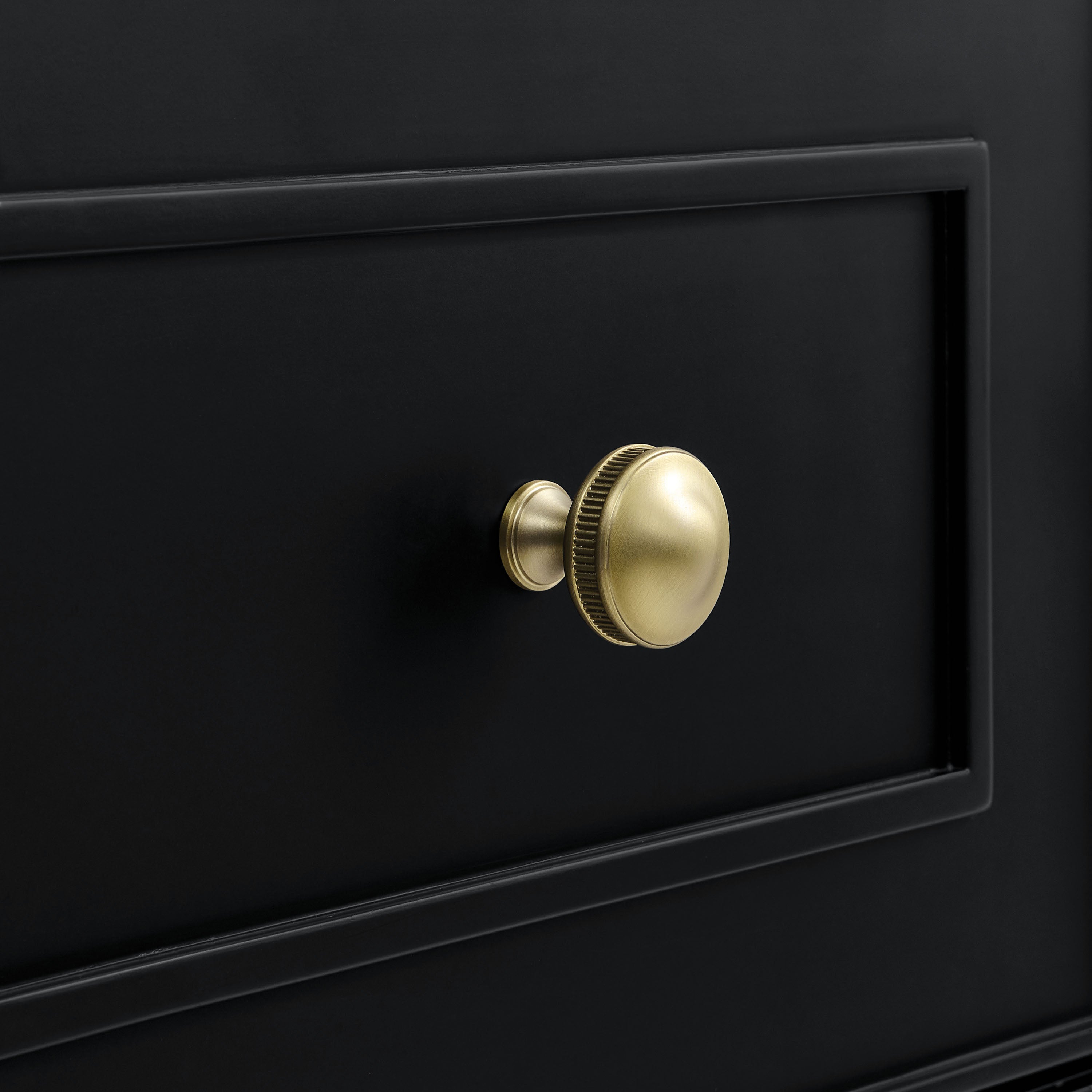 - Champagne brass coin-edge knobs & adjustable door hinges