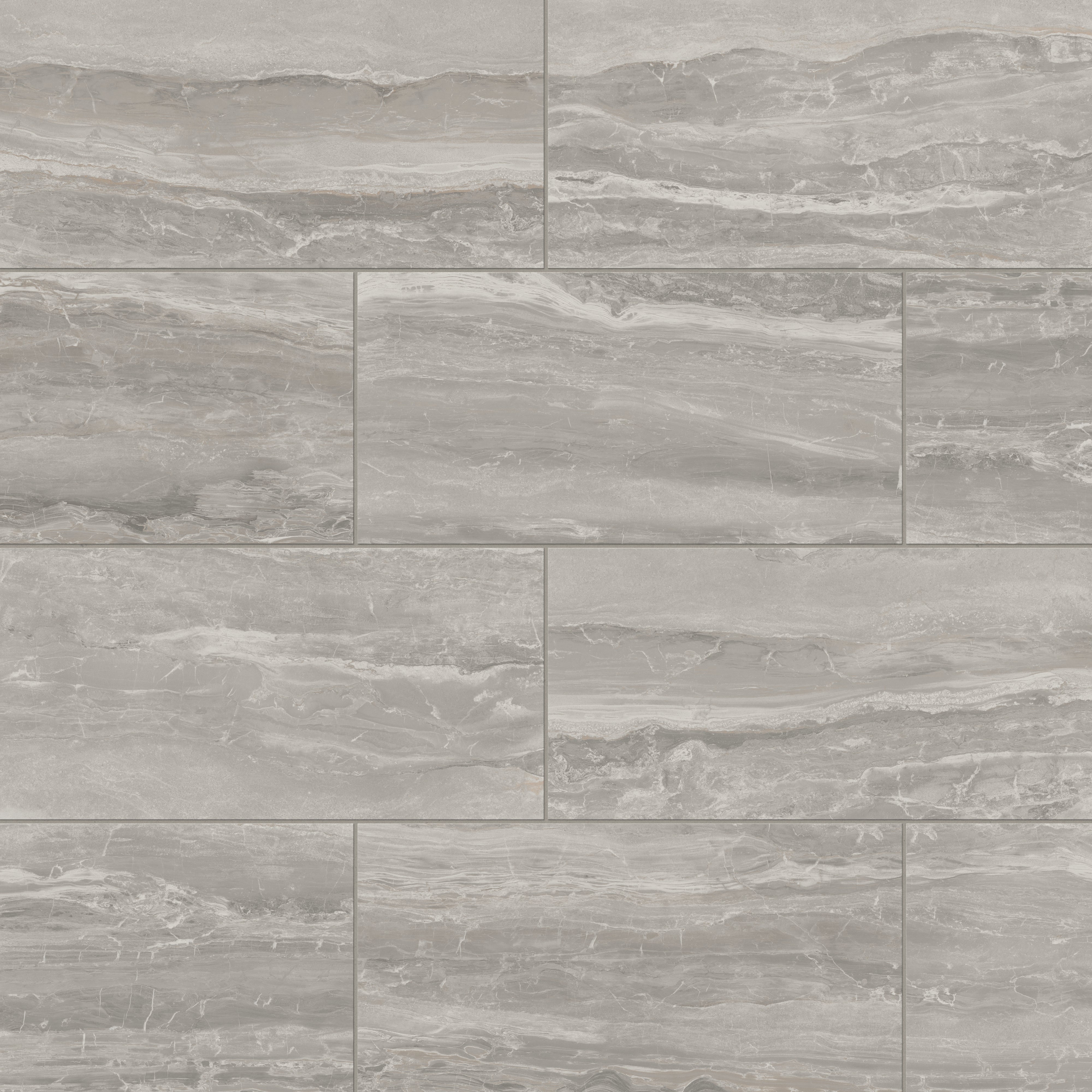 Our Harley 12x24 Matte Porcelain Tile in Taupe translates the beauty of natural fragmentation into a classic rectangular format, where layered, light gray hues with beige undertones and fluid, interlocking veining dynamically meld — a visual metaphor for the earth’s process of breaking and reassembling form. Its subtly textured finish softens this organic complexity, gently diffusing light, creating a calm, refined surface that allows spaces to relive marble’s timeless elegance.