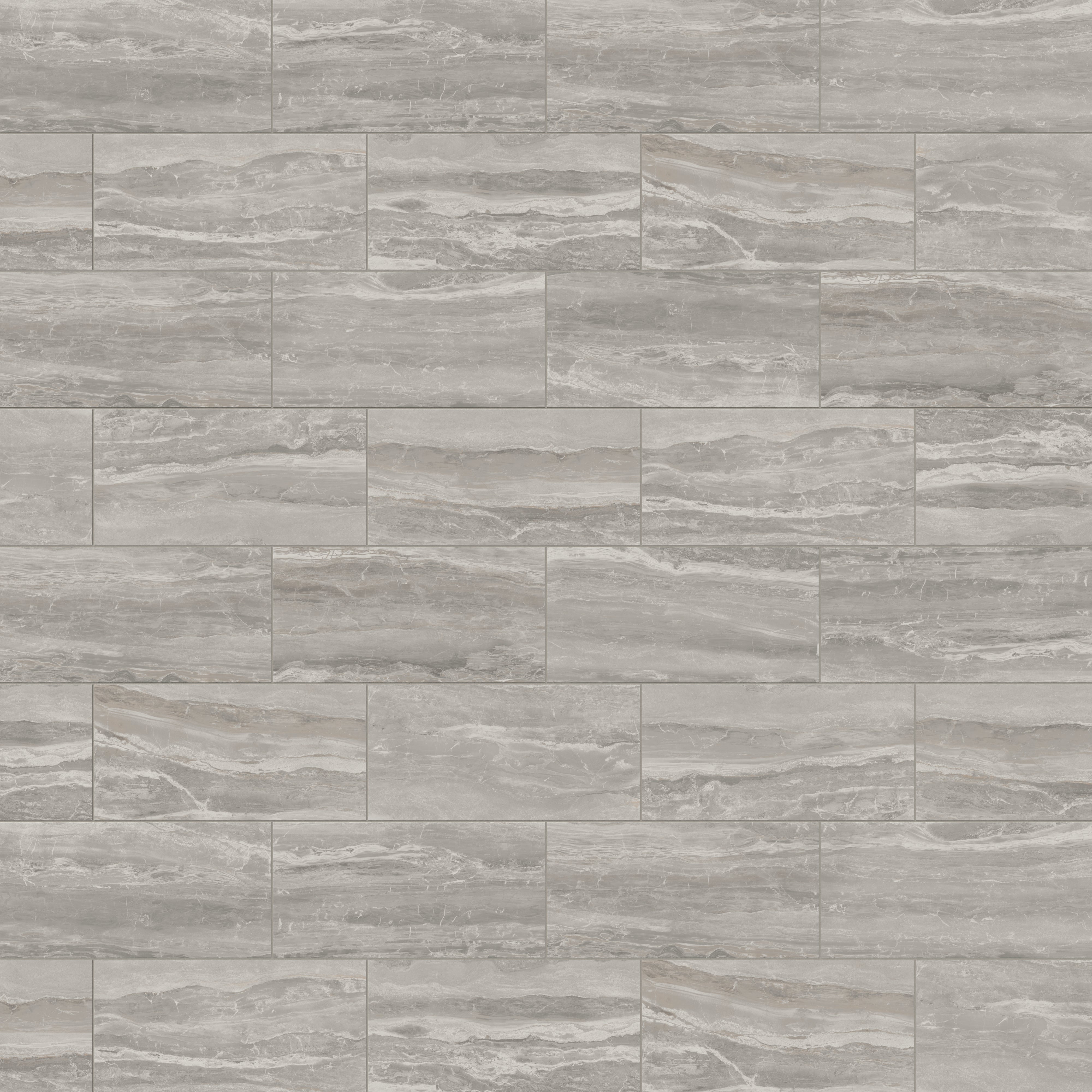 Our Harley 12x24 Polished Porcelain Tile in Taupe translates the beauty of natural fragmentation into a classic rectangular format, where layered, light gray hues with beige undertones and fluid, interlocking veining dynamically meld — a visual metaphor for the earth’s process of breaking and reassembling form. Its reflective finish accentuates this organic complexity, creating a luminous, refined surface that allows spaces to relive marble’s timeless elegance.