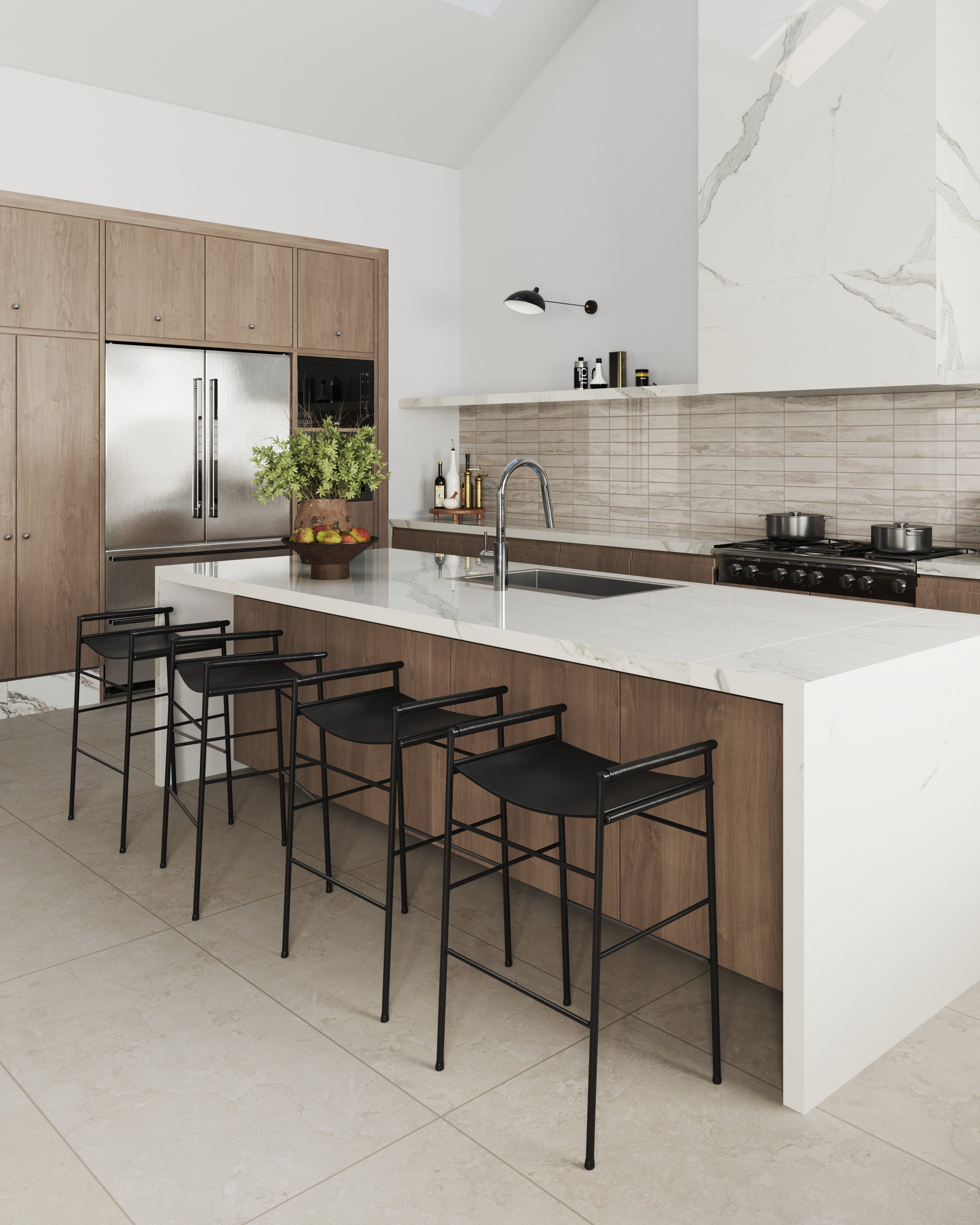 Our Harley 3x12 Polished Porcelain Tile in Greige translates the beauty of natural fragmentation into a modern subway format, where layered, grayish beige hues and fluid, interlocking veining dynamically meld — a visual metaphor for the earth’s process of breaking and reassembling form. Its reflective finish accentuates this organic complexity, creating a luminous, refined surface that allows spaces to relive marble’s timeless elegance.