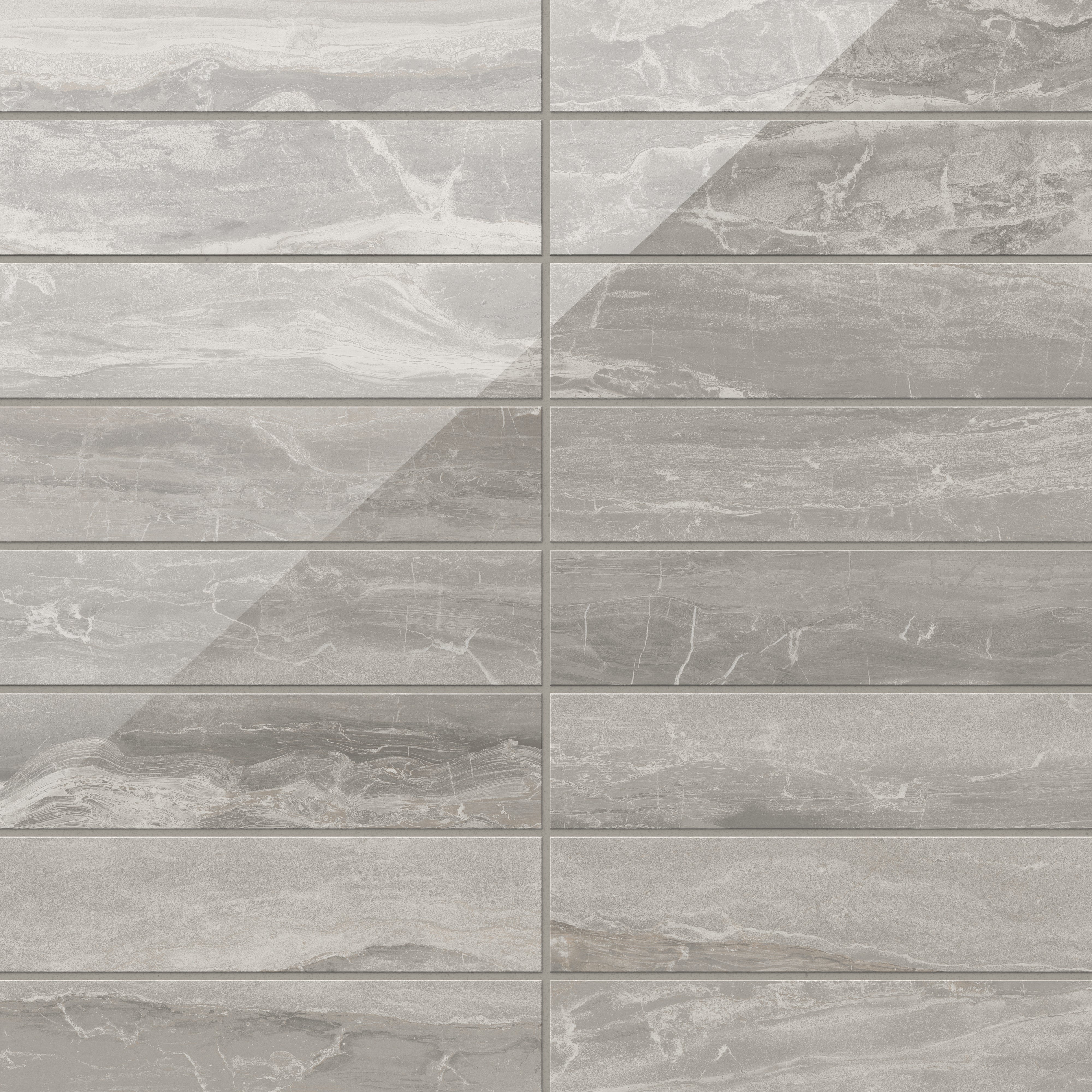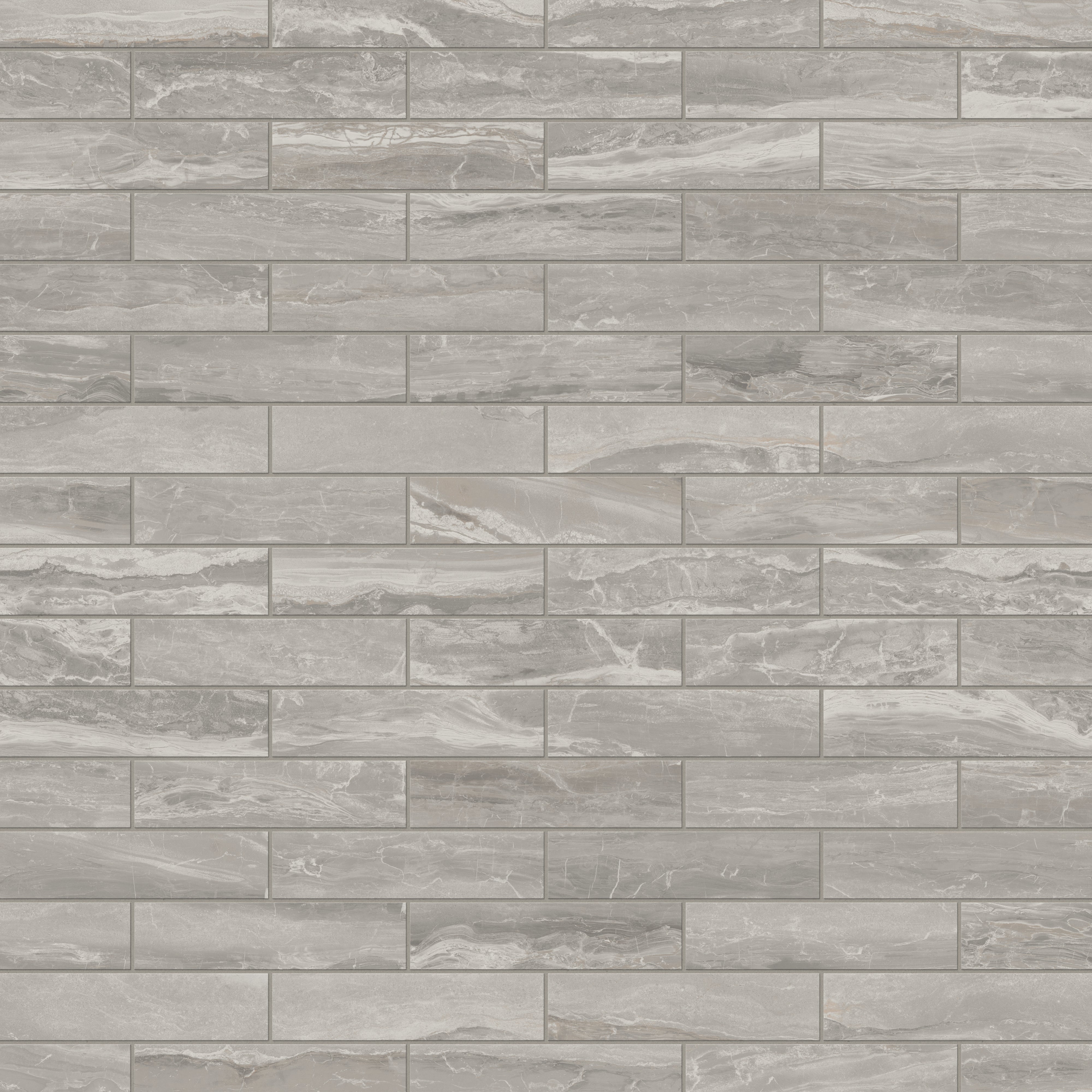 Our Harley 3x12 Polished Porcelain Tile in Taupe translates the beauty of natural fragmentation into a modern subway format, where layered, light gray hues with beige undertones and fluid, interlocking veining dynamically meld — a visual metaphor for the earth’s process of breaking and reassembling form. Its reflective finish accentuates this organic complexity, creating a luminous, refined surface that allows spaces to relive marble’s timeless elegance.