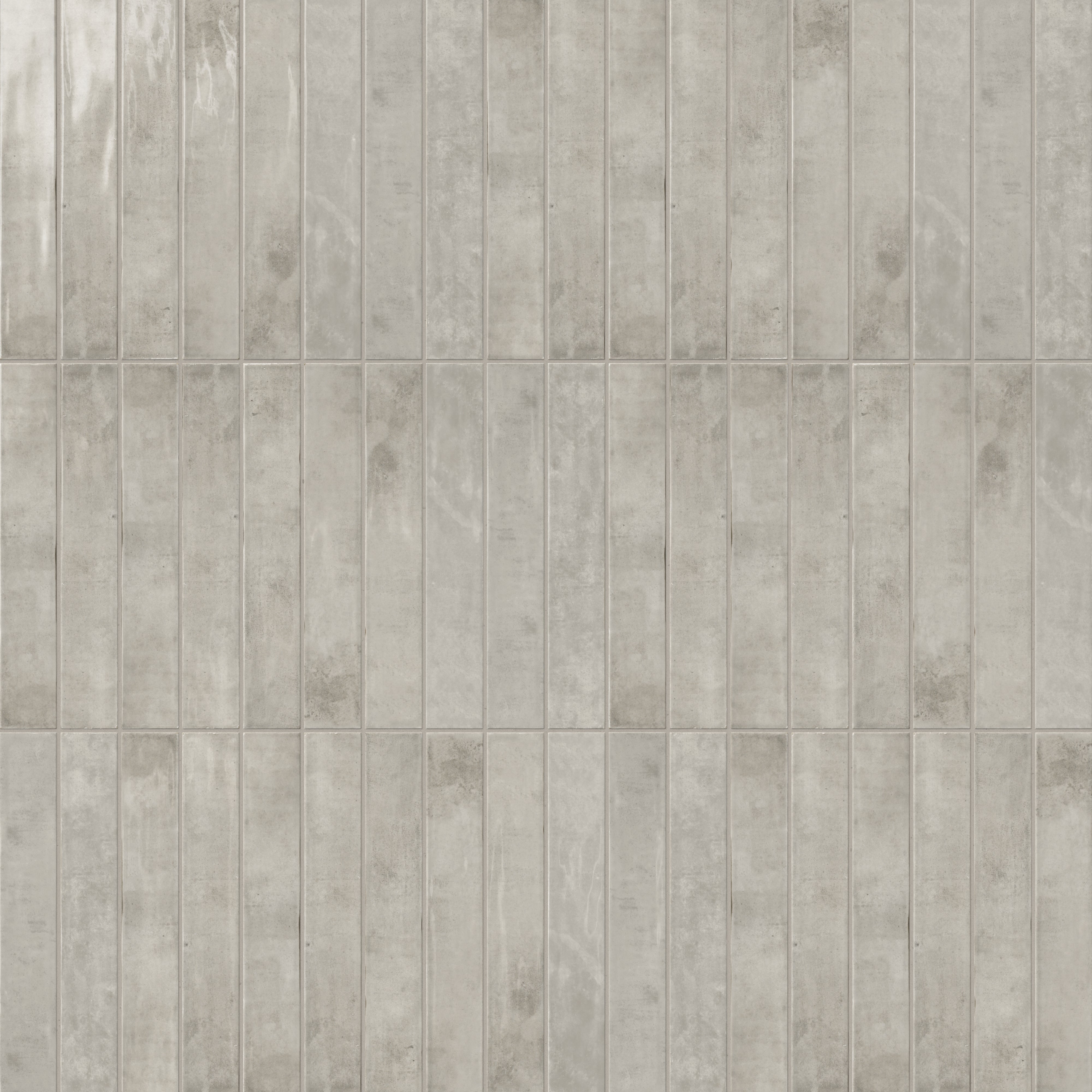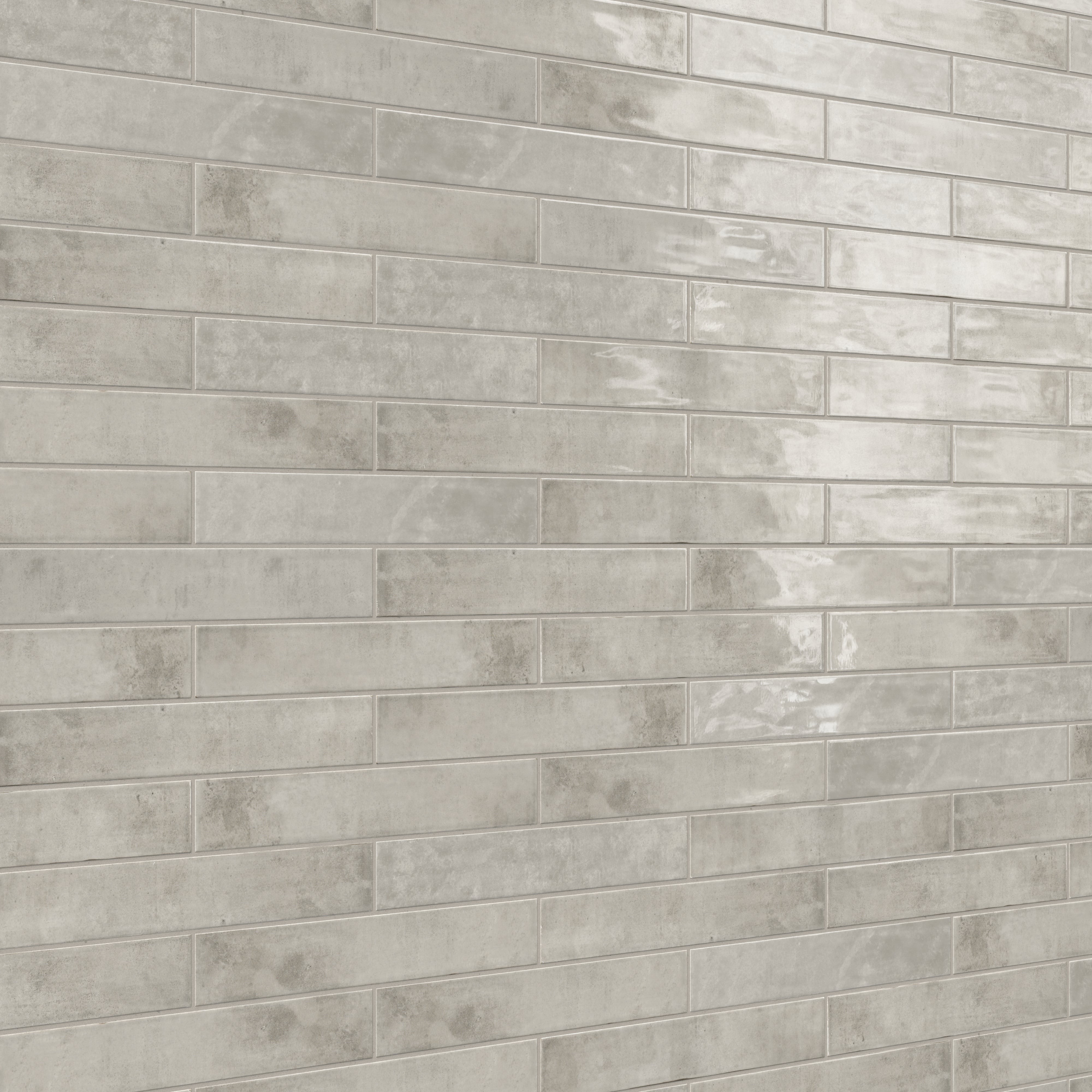 Our Jaden 2.5x16 Glossy Ceramic Tile in Dove comes in a subtle, grey shade that seems to shift in light, showing off an industrial chic style with its distinctive print. This layered visual texture is further accentuated by its elongated format—a modern twist on the classic subway tile—that draws the eye along its organic lines and subtly uneven edges, creating an impression of greater depth and openness in any room.