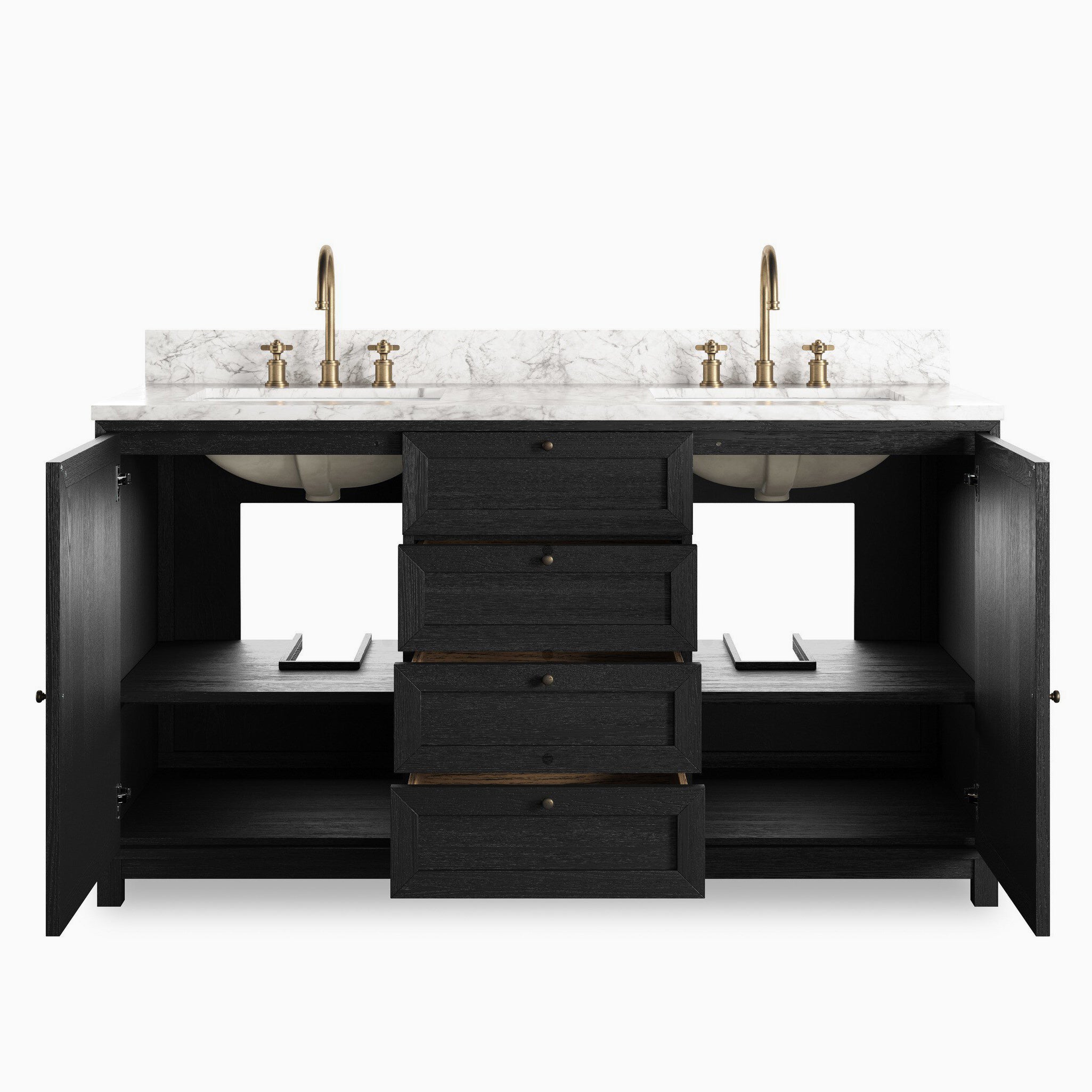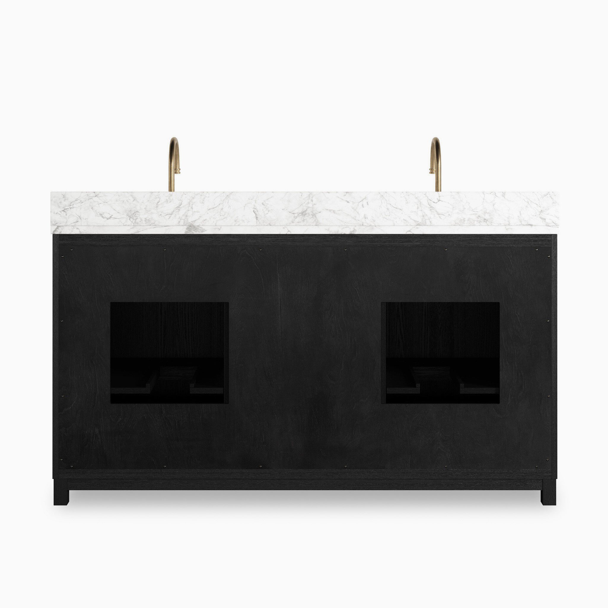Josephine 60" Double Vanity in Satin Drifted Black Veneer with Carrara Marble Top