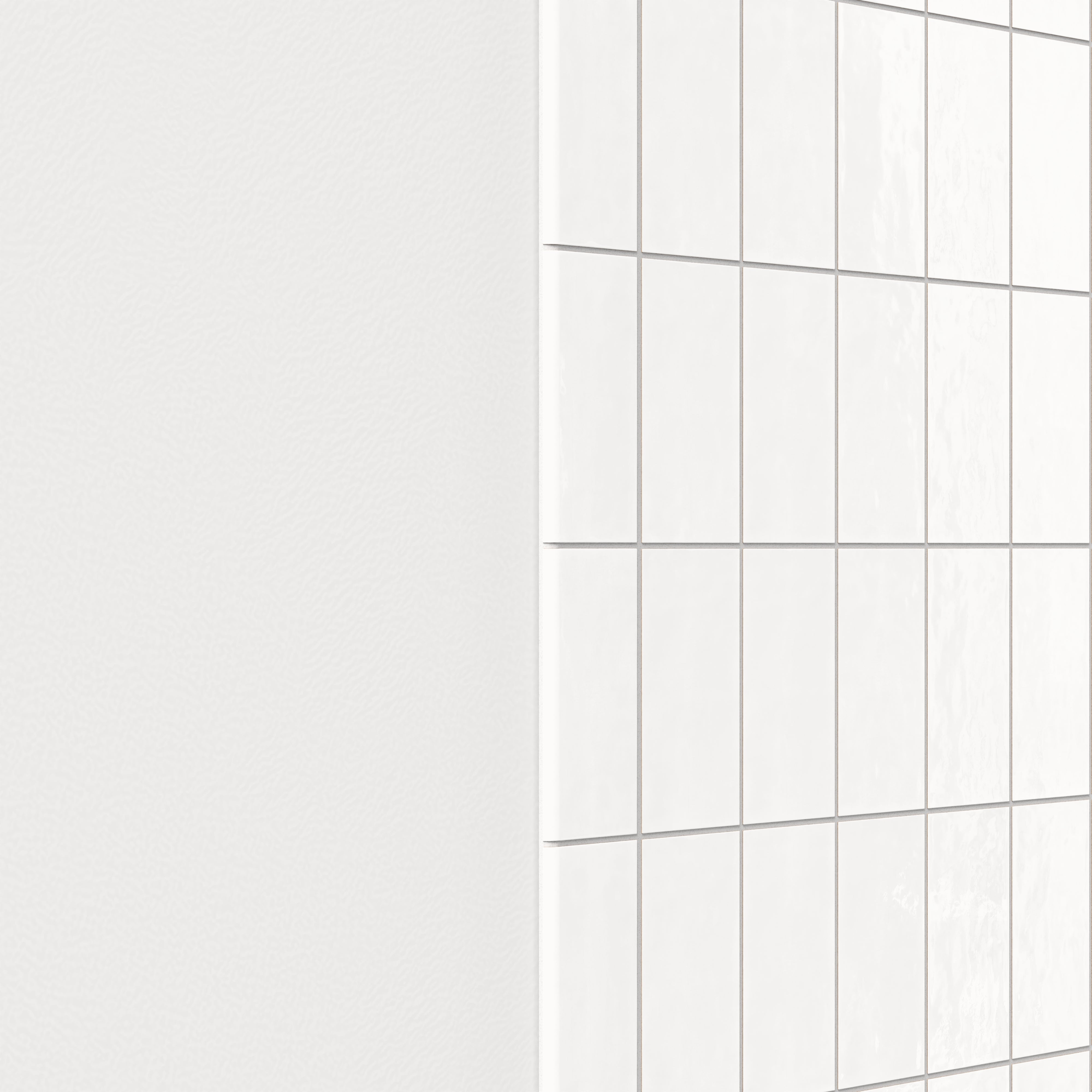 Our Josie 3x6 Bullnose Glossy Ceramic Tile in Pearl highlights the artistry of traditional craftsmanship through its reflective white surface layered with subtle visual ripples. Perfect for wainscoting caps, backsplashes, and shower surrounds, it delivers smooth transitions and a polished finish that harmonizes beautifully with its field tiles.