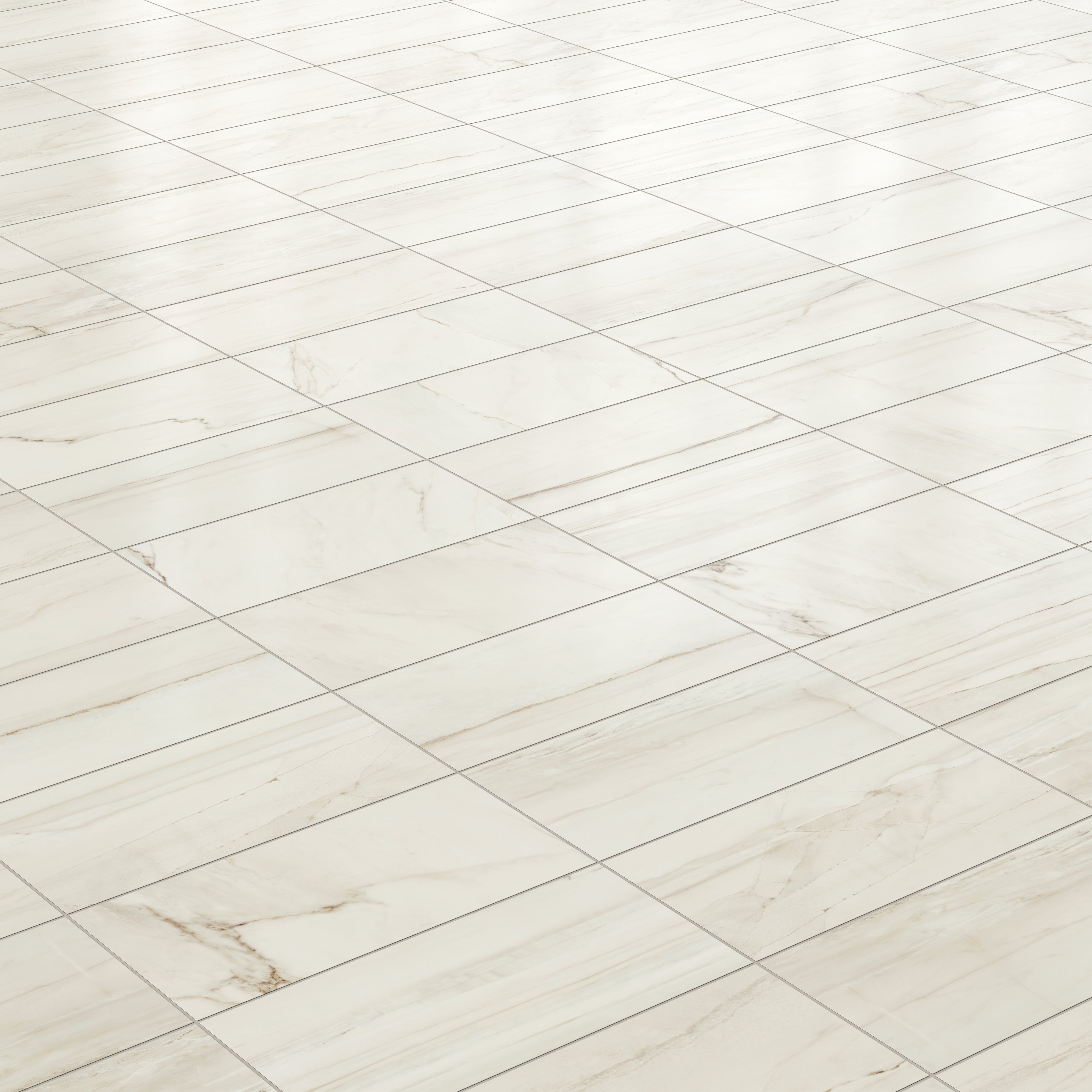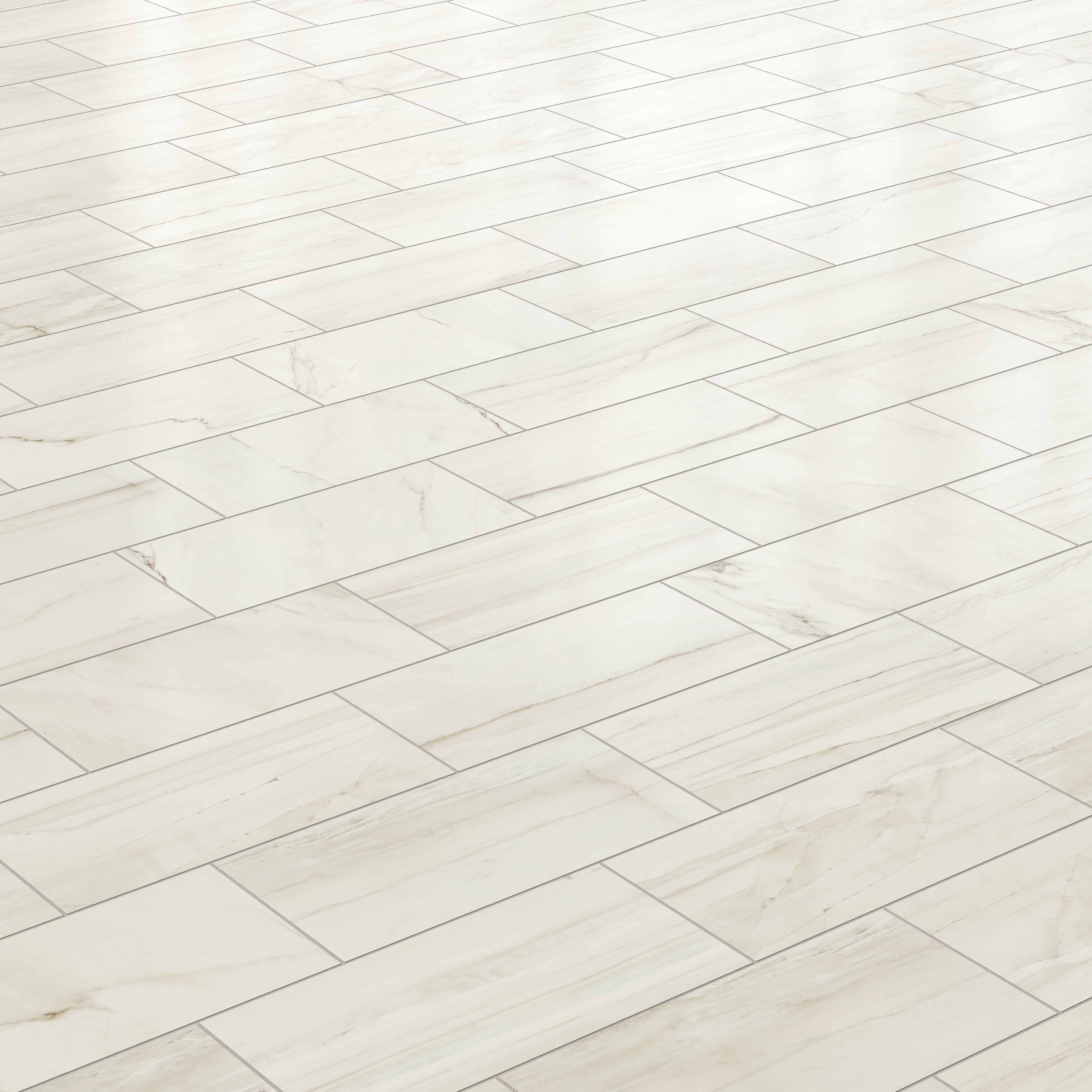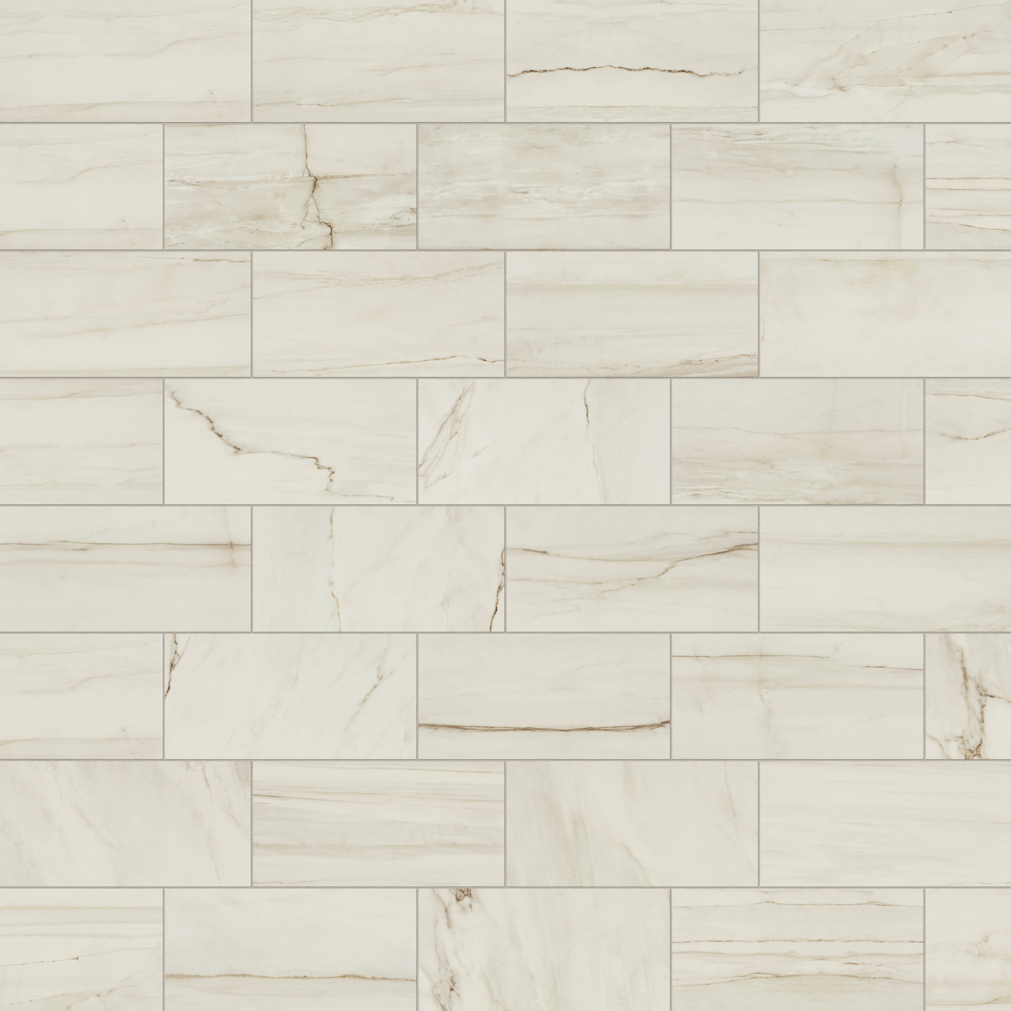 Our Kendrick 12x24 Satin Porcelain Tile in Sand draws inspiration from ancient imprints preserved by nature to reinvent the classic marble through a modern lens, showcasing fossil-like veining across a classic rectangular format in light beige. This is further enhanced by a velvety finish, offering a softened feel with subtle light diffusion.