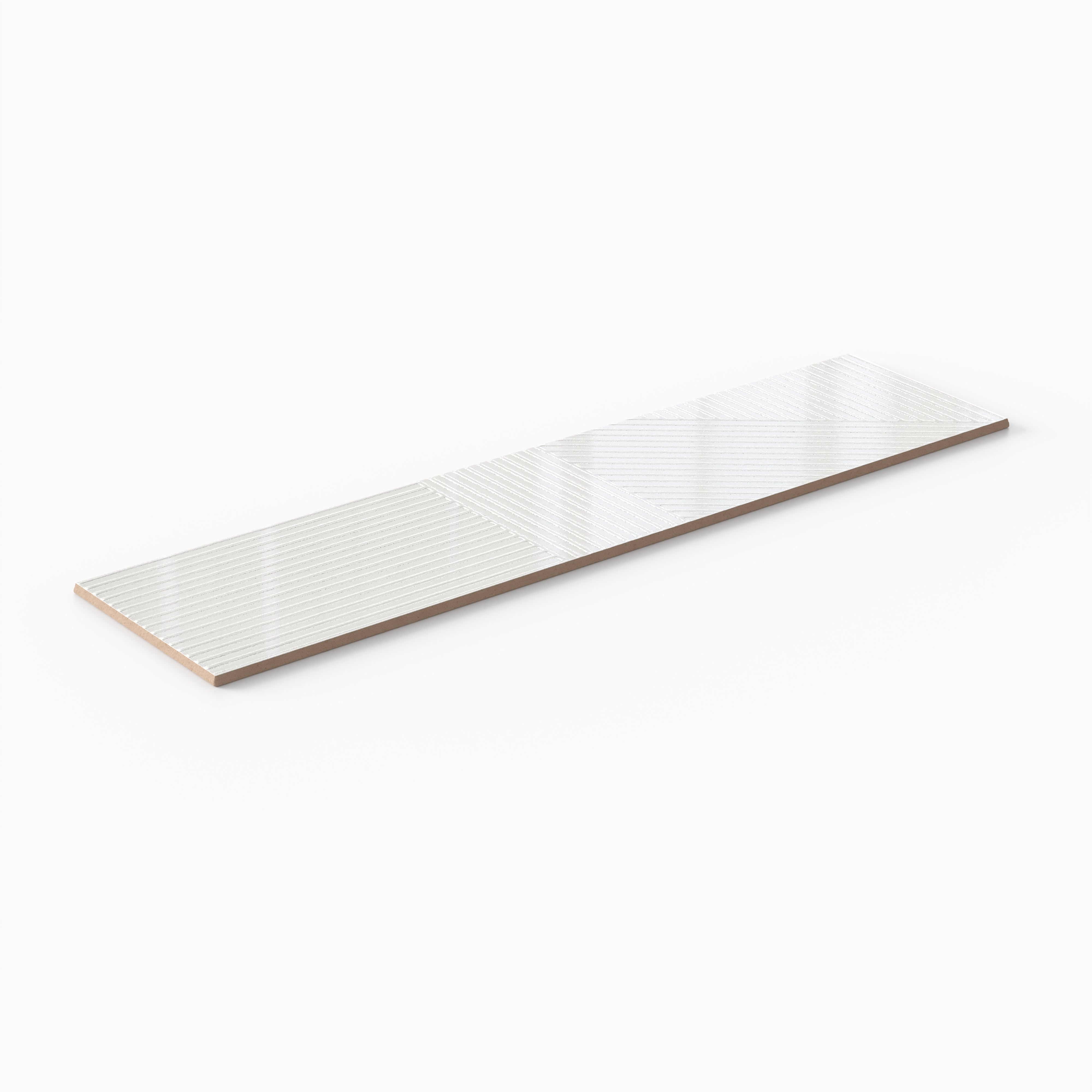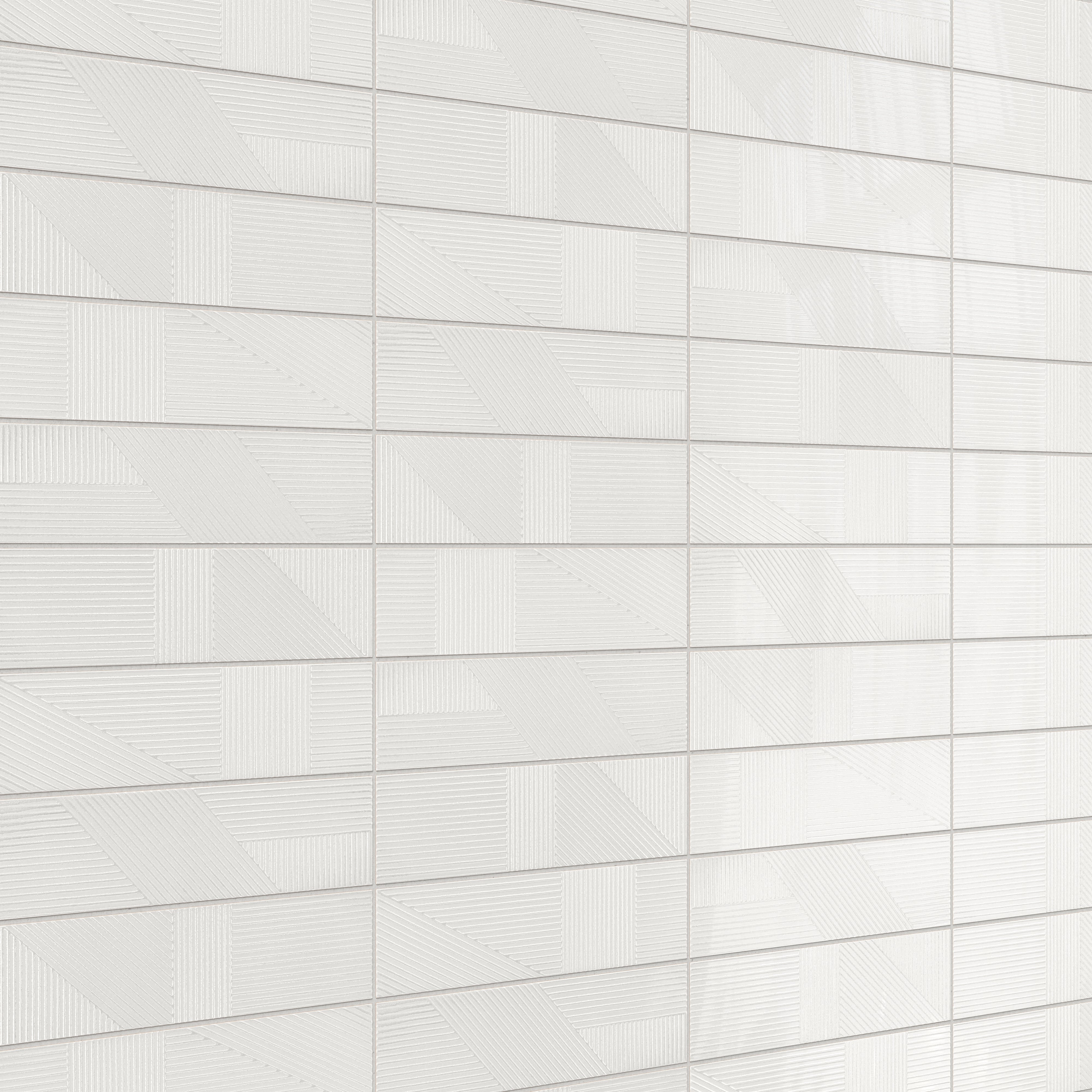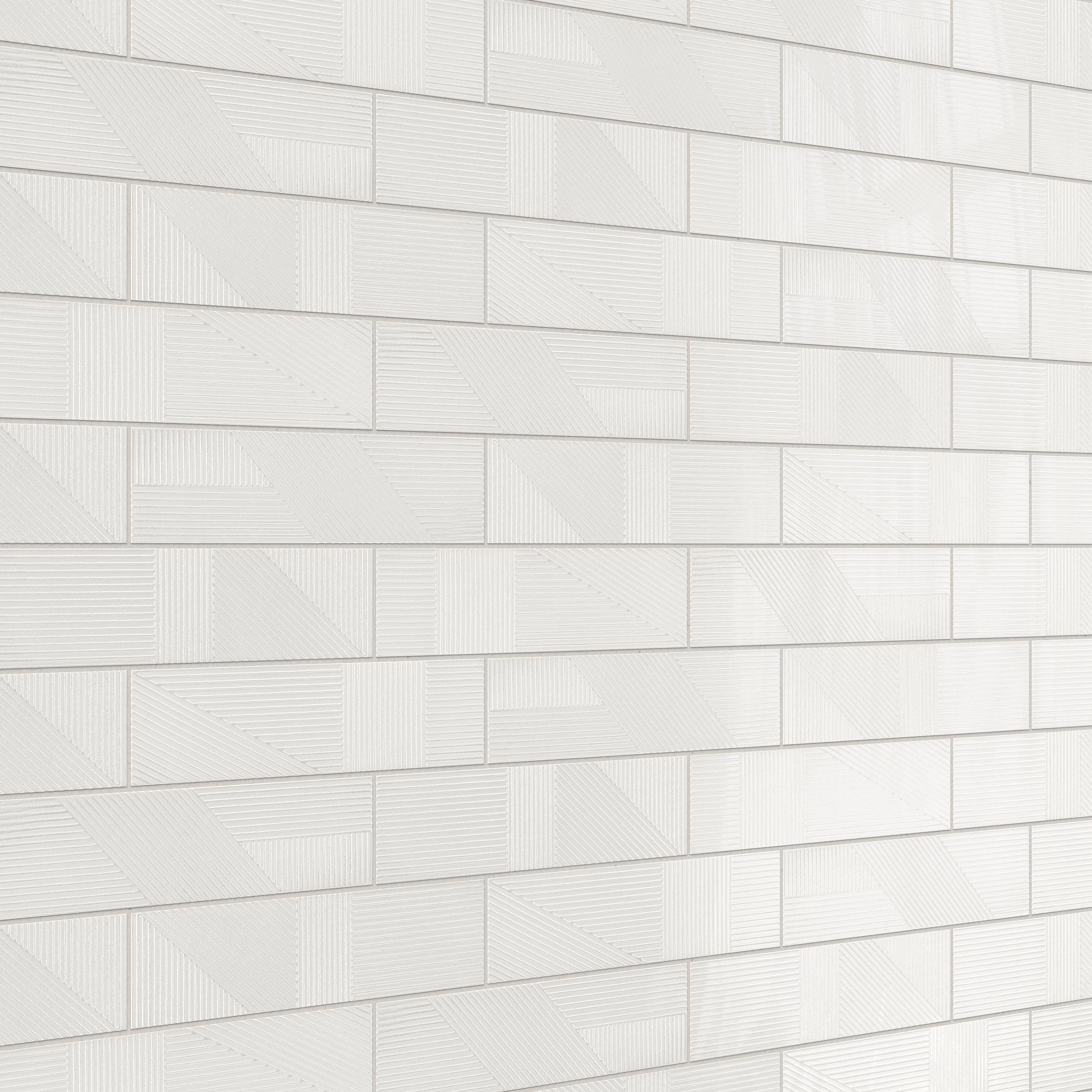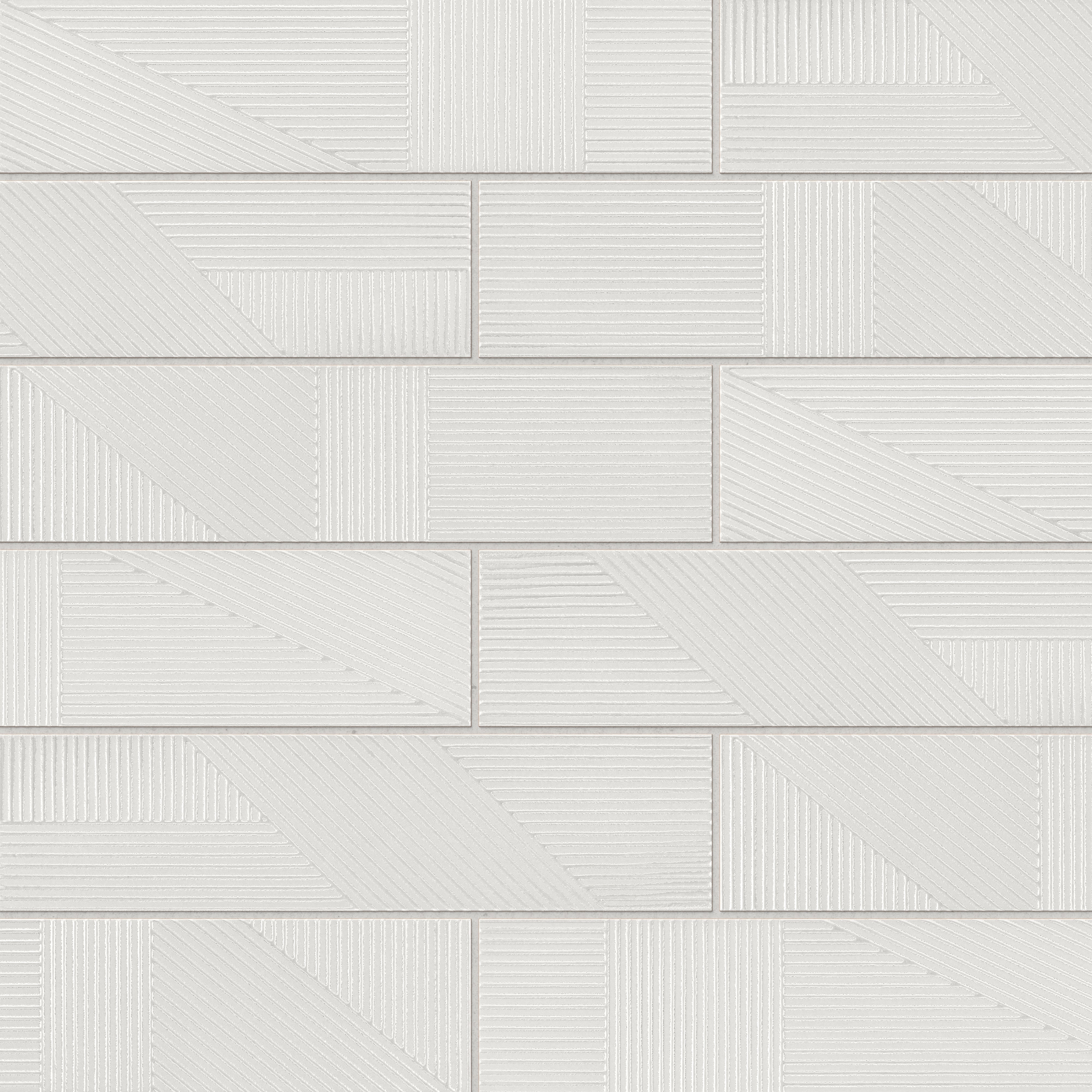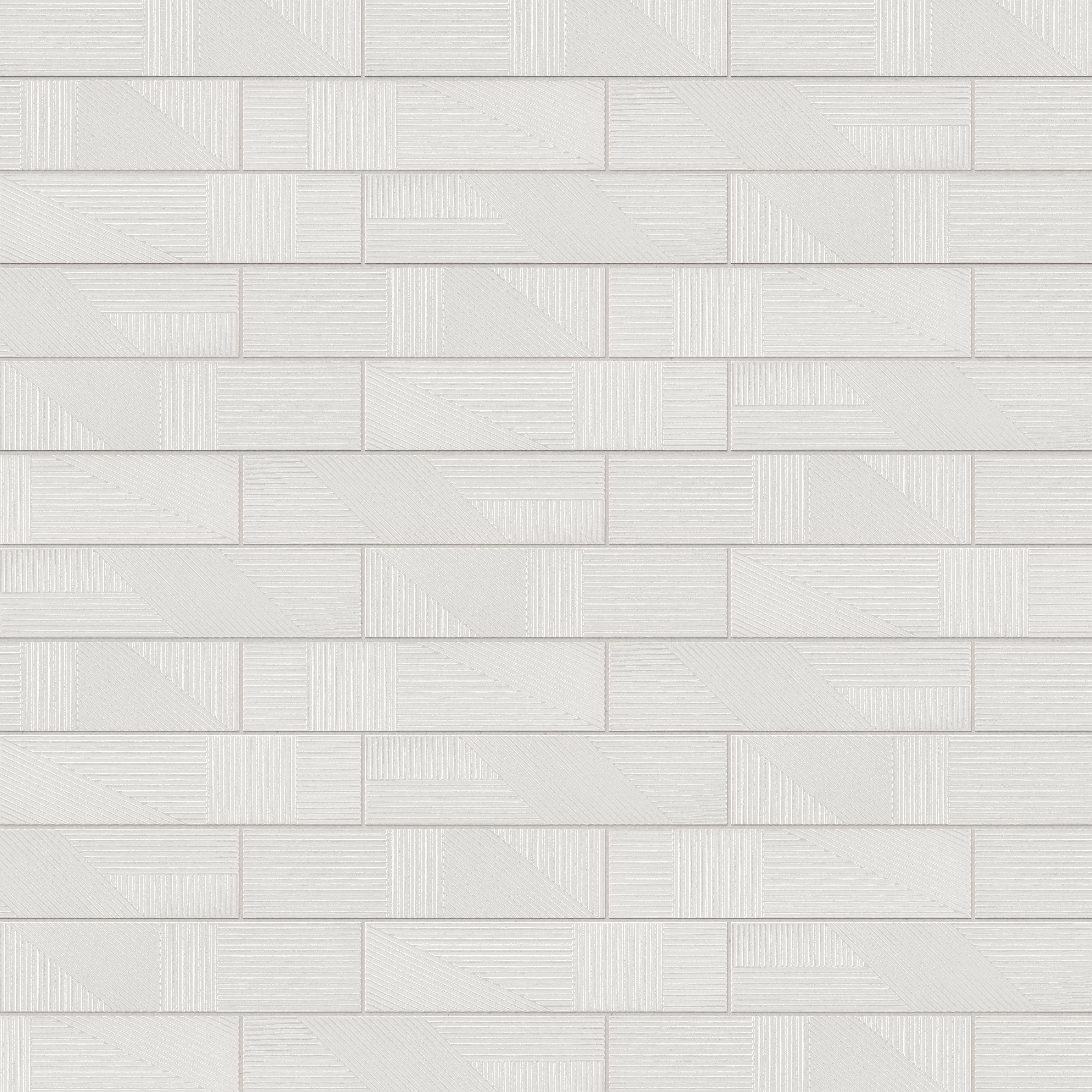 Drawing inspiration from Brazil’s iconic Ópera de Arame, our Kinsley 4x16 Glossy Ceramic Tile in Fog Deco transforms a simple light gray surface into an architectural statement. Fine raised lines layer across its elongated form, shifting direction to form dynamic patterns that are both visual and tactile. With a finish that reflects light across every relief, each piece adds a contemporary edge to modern interiors.