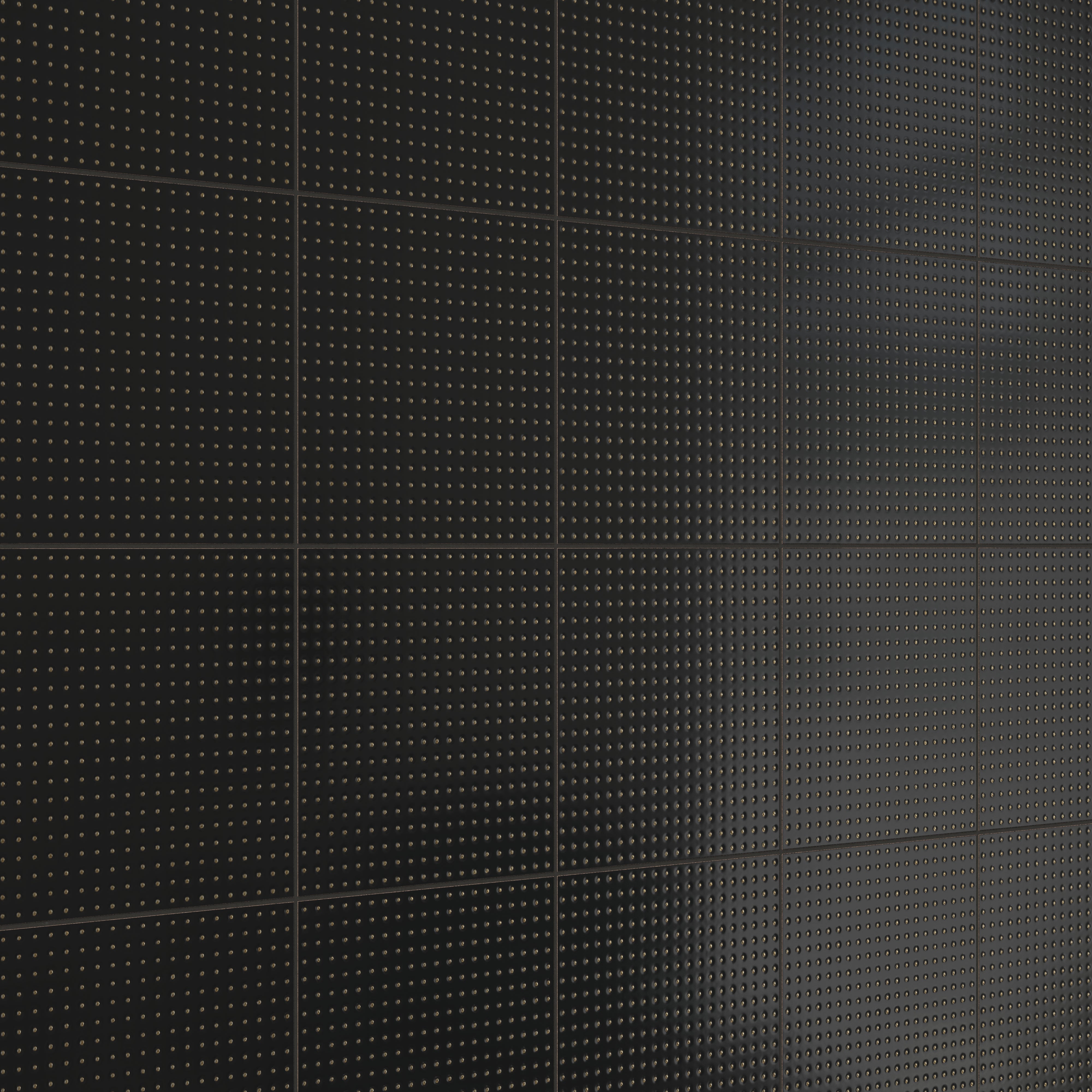 Inspired by the elegance of capitonné upholstery, our Kira 12x12 Satin Ceramic Tile in Dots Black features a velvety black surface highlighted by small, subtly raised gold dots. These delicate accents shimmer across each piece, giving it an artistic, sophisticated feel up close, while forming a tufted effect from afar—perfect for bringing a touch of luxury to modern interiors.