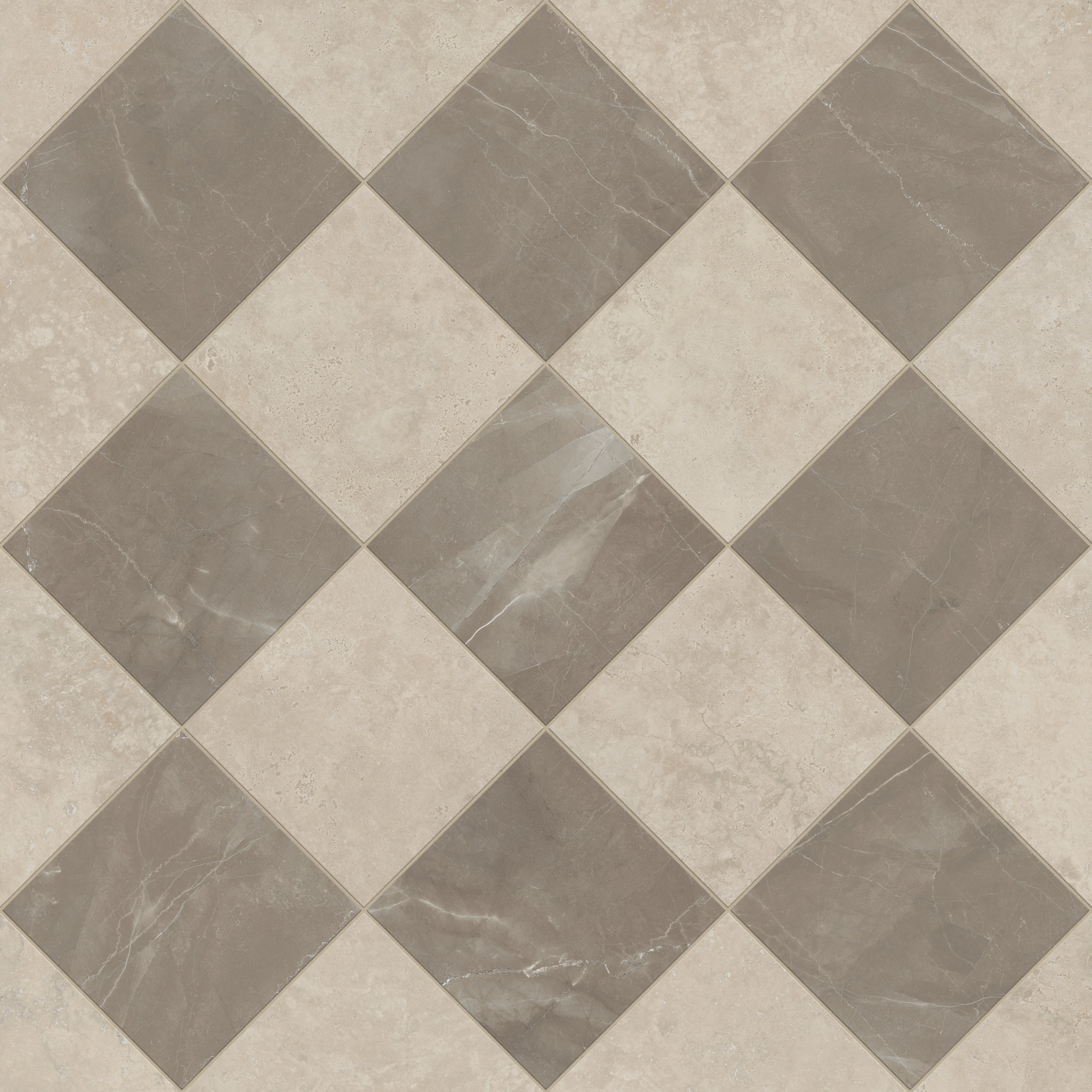 Classic elegance redefined—this is the essence of our Leona 12x12 Checkerboard Polished Porcelain Tile in Marfil and Amani Bronze. Designed for those seeking a refined take on the timeless checkered pattern, these mid-sized square tiles strike the perfect balance between the life-like shade variations of beige Crema Marfil and the rich, earthy tones of Amani Bronze. Its polished finish also lends a sophisticated shine that further highlights the natural marble aesthetic, adding a sleek touch to this vintage-inspired style for a brighter, more open feel.