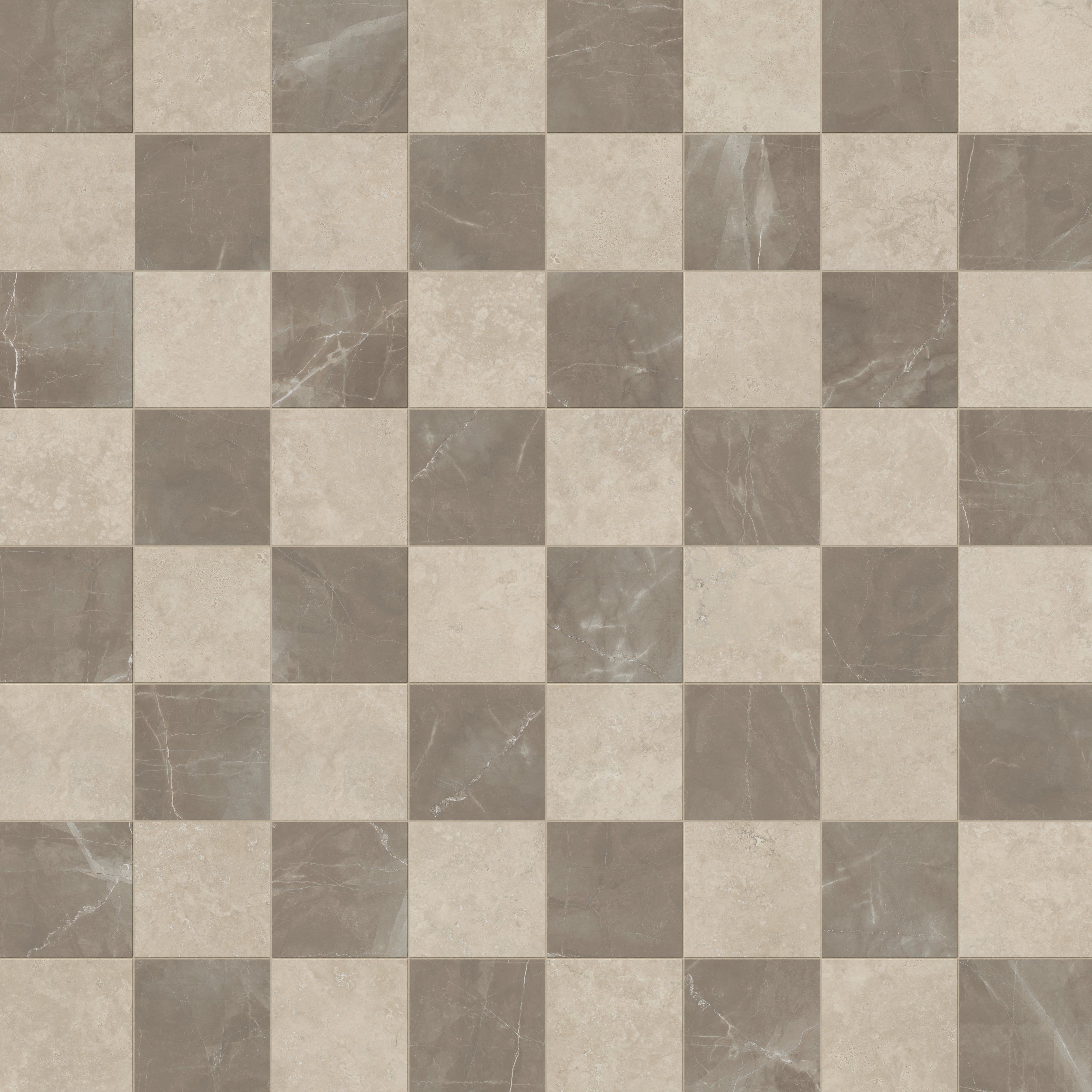 Leona 12x12 Checkerboard Polished Porcelain Tile in Marfil and Amani Bronze