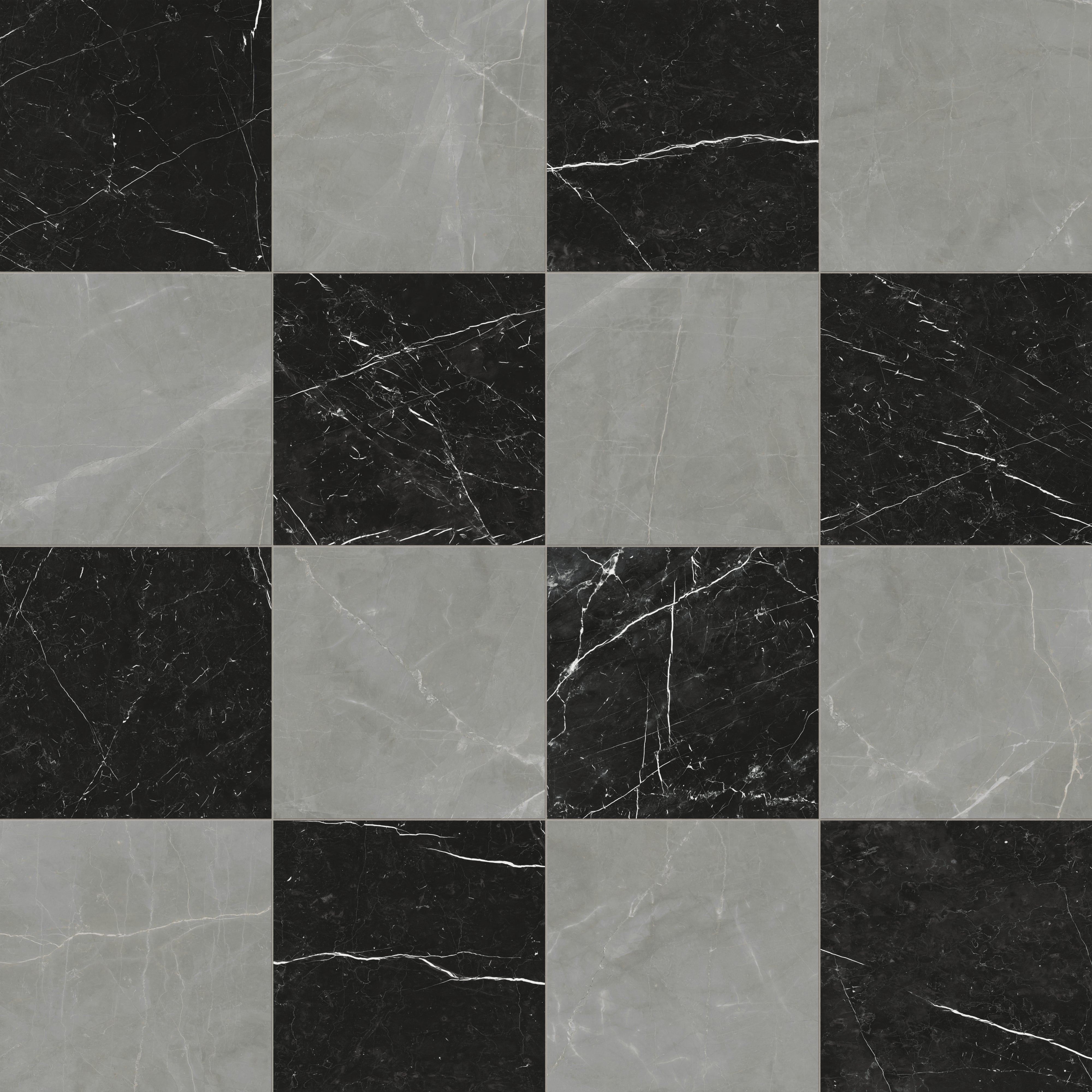 Leona 24x24 Checkerboard Matte Porcelain Tile in Amani Grey and Nero Marquina
