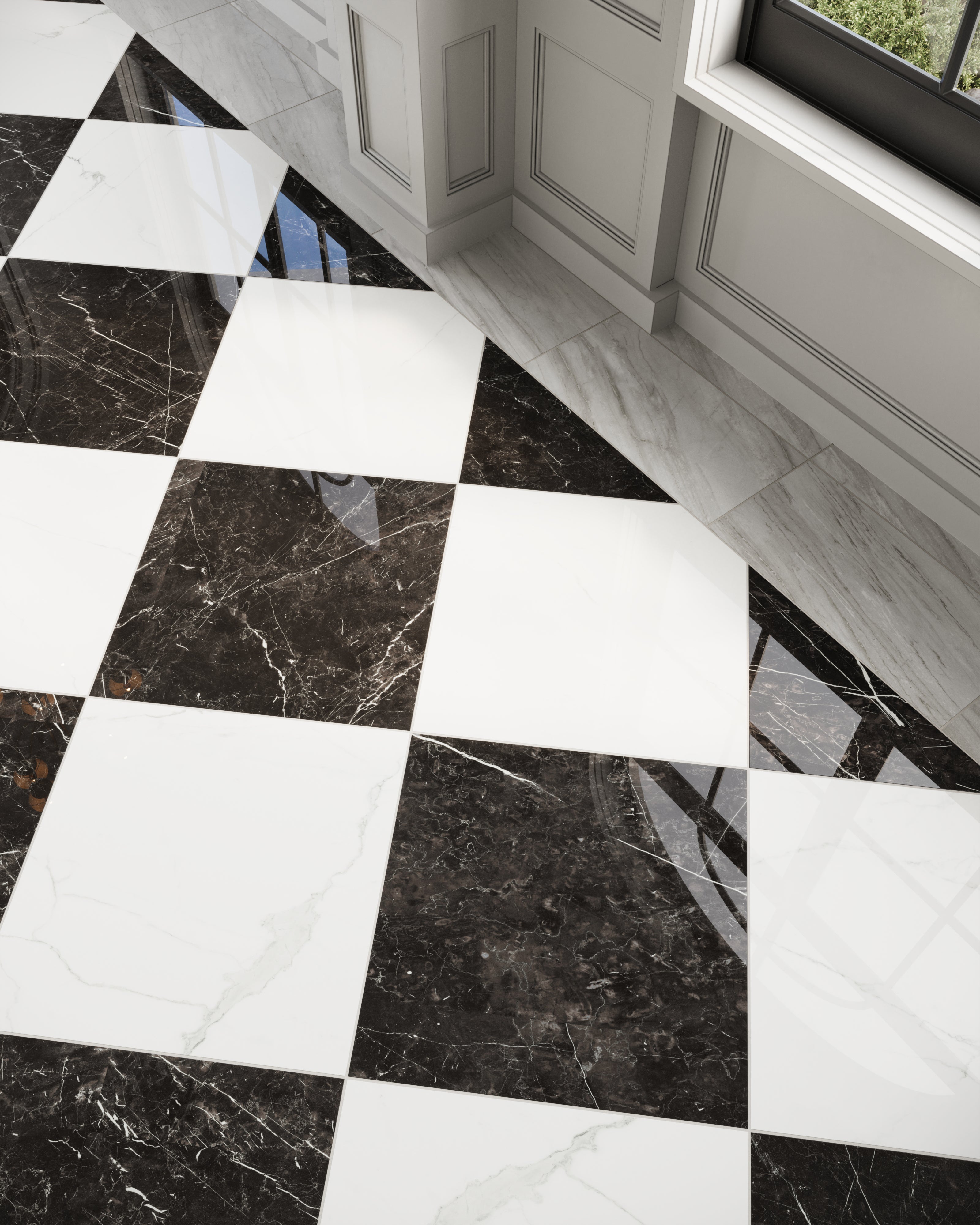 Leona 24x24 Polished Porcelain Tile in Nero Marquina
