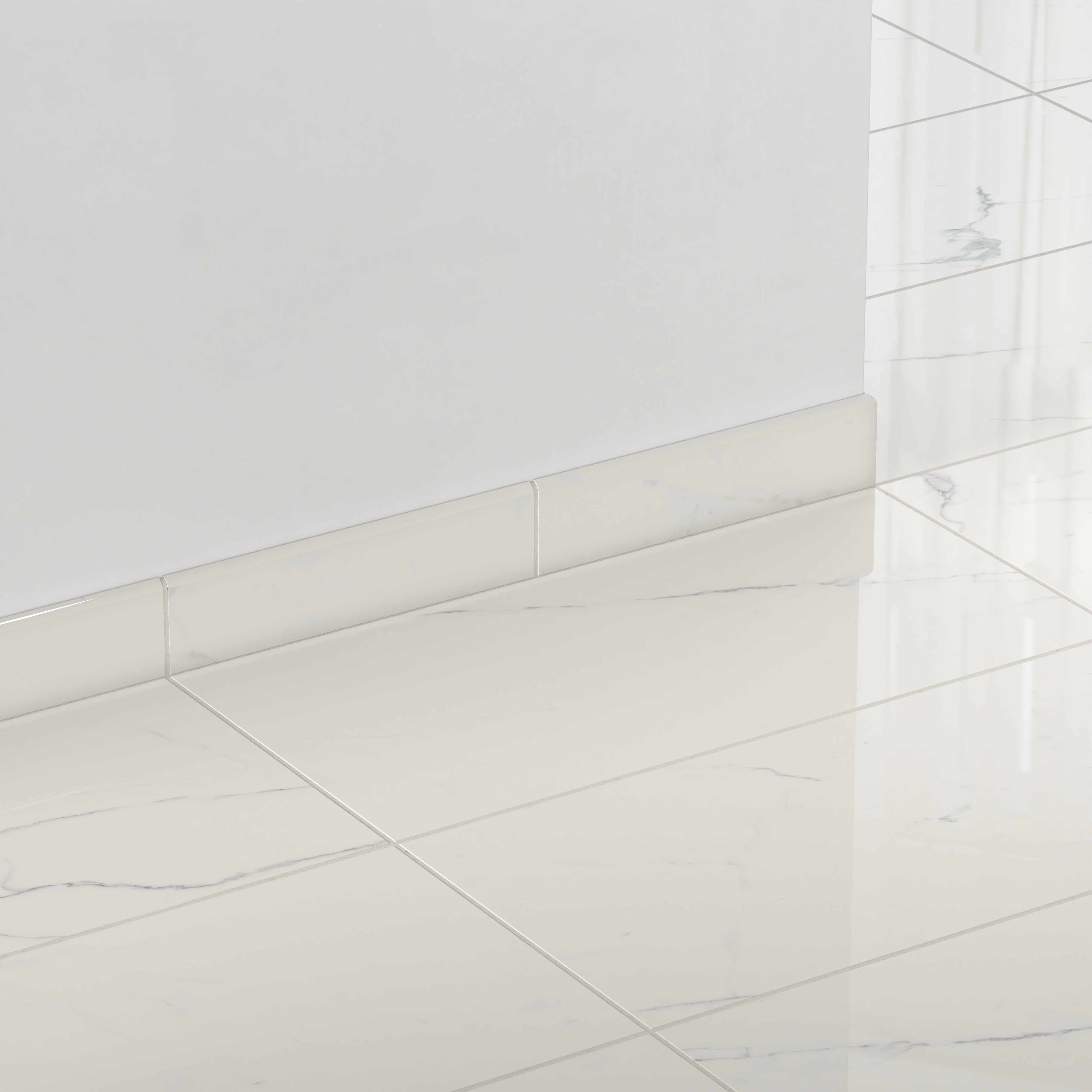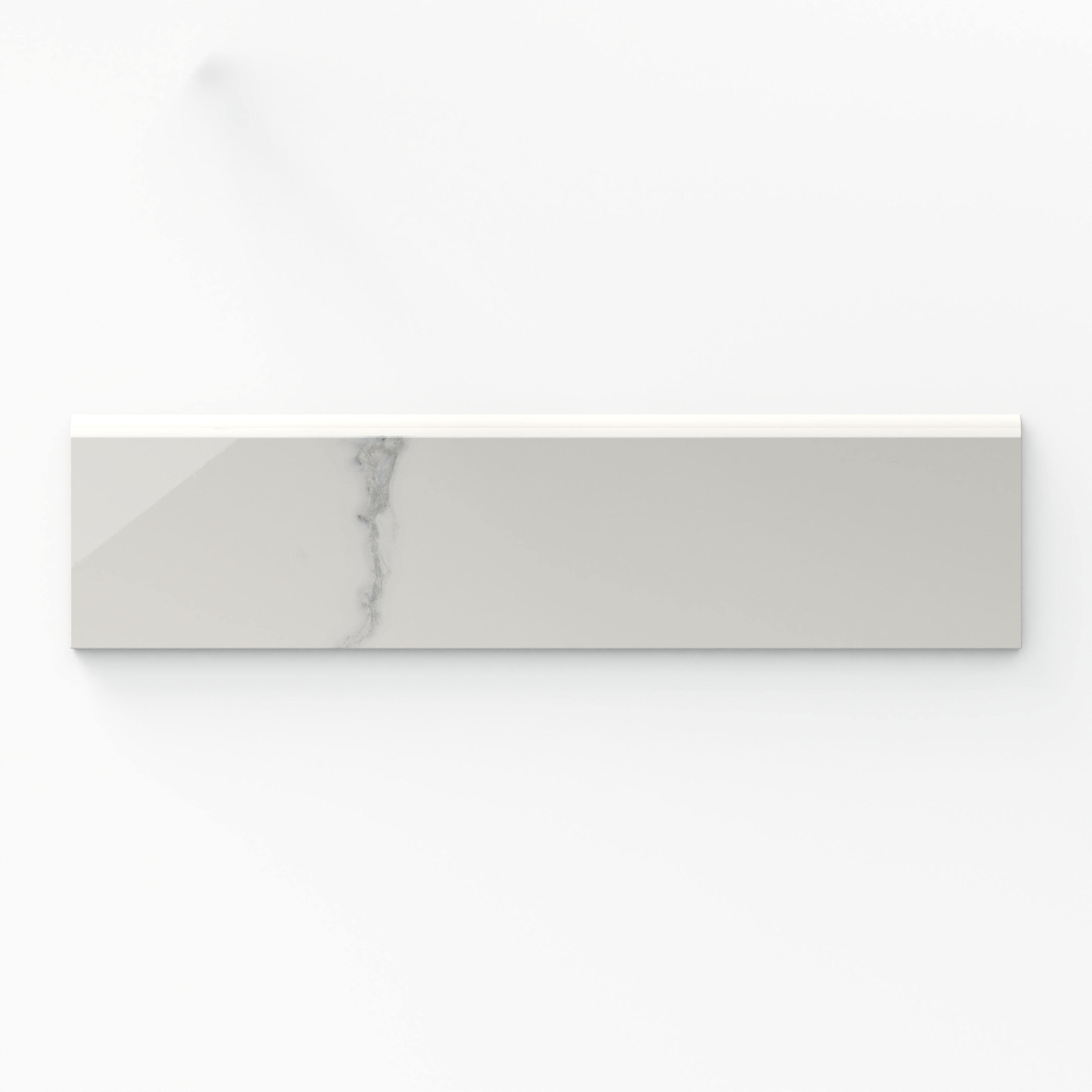 Designed as a refined finishing element, our Leona 3x12 Polished Porcelain Bullnose Tile in Calacatta carries the same prized white base veined in soft gray, extending the timeless marble-inspired beauty of the collection to transitions, perimeters, and wall bases. Its bright glaze brings both durability and elegance to your installation, making it an essential piece for achieving a cohesive and professional look.