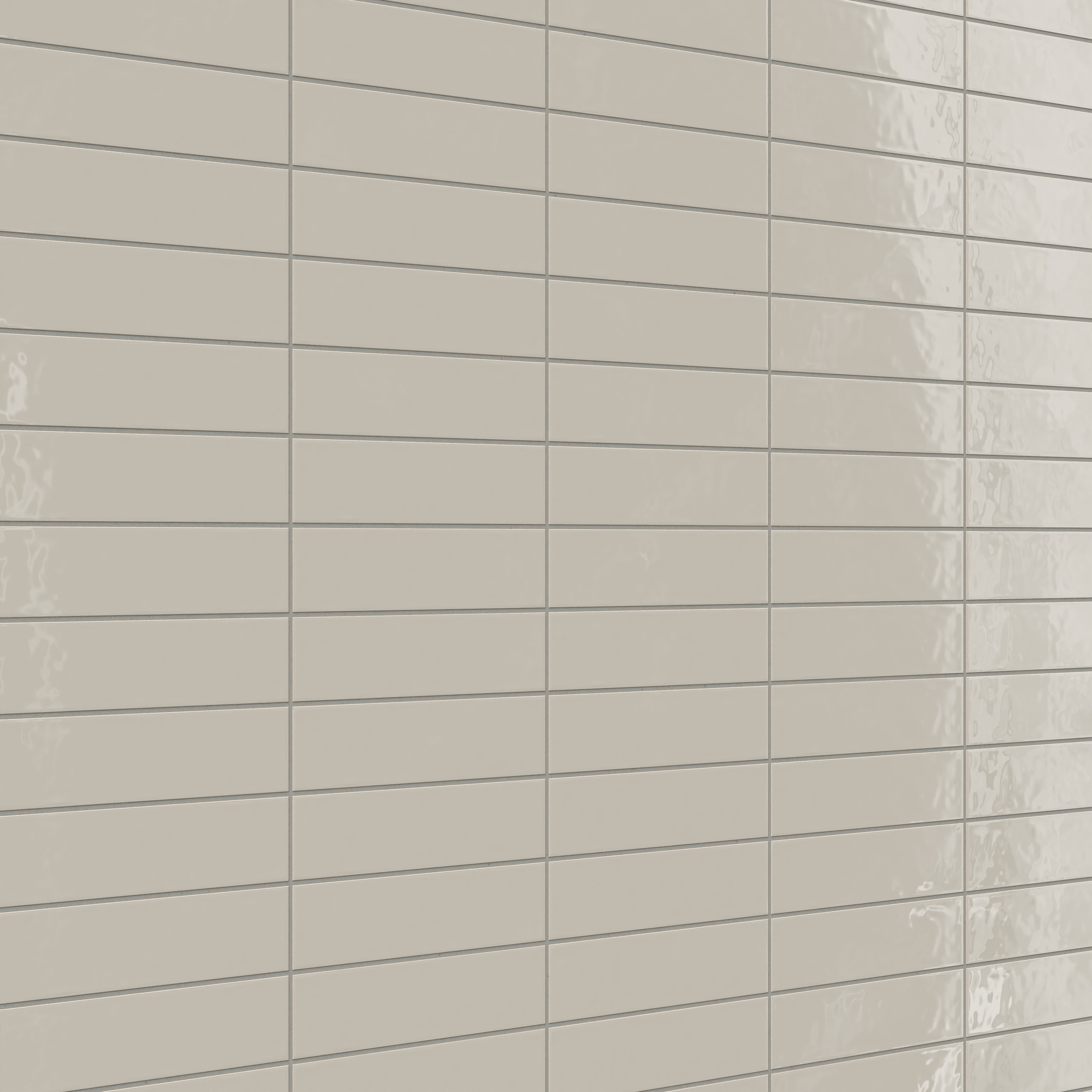 Our Madilyn 3x12 Glossy Ceramic Tile in Dove is a modern take on the classic subway tile with its elongated silhouette that visually expands any interior. Its light-reflective glaze accentuates a refined handmade look, defined by slightly cushioned edges and gentle ripples across its uniform grayish-beige surface.