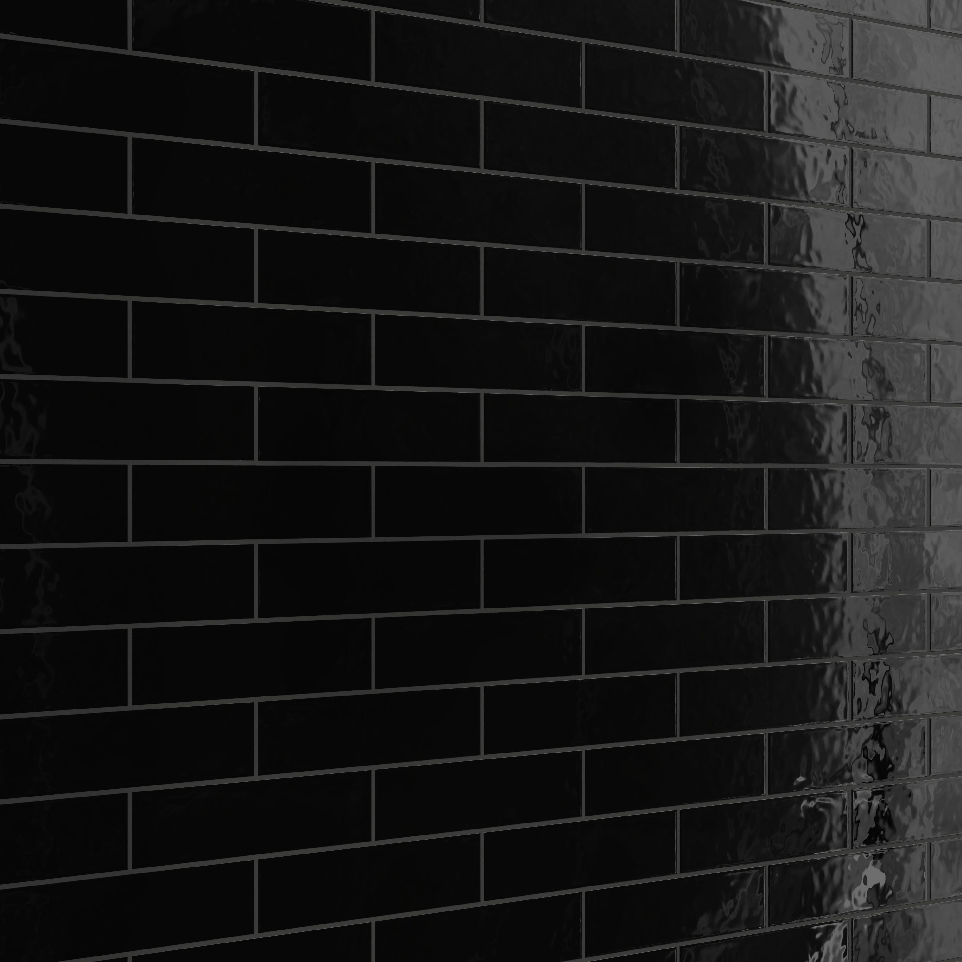 Our Madilyn 3x12 Glossy Ceramic Tile in Midnight is a modern take on the classic subway tile with its elongated silhouette that visually expands any interior. Its light-reflective glaze accentuates a refined handmade look, defined by slightly cushioned edges and gentle ripples across its uniform deep black surface.