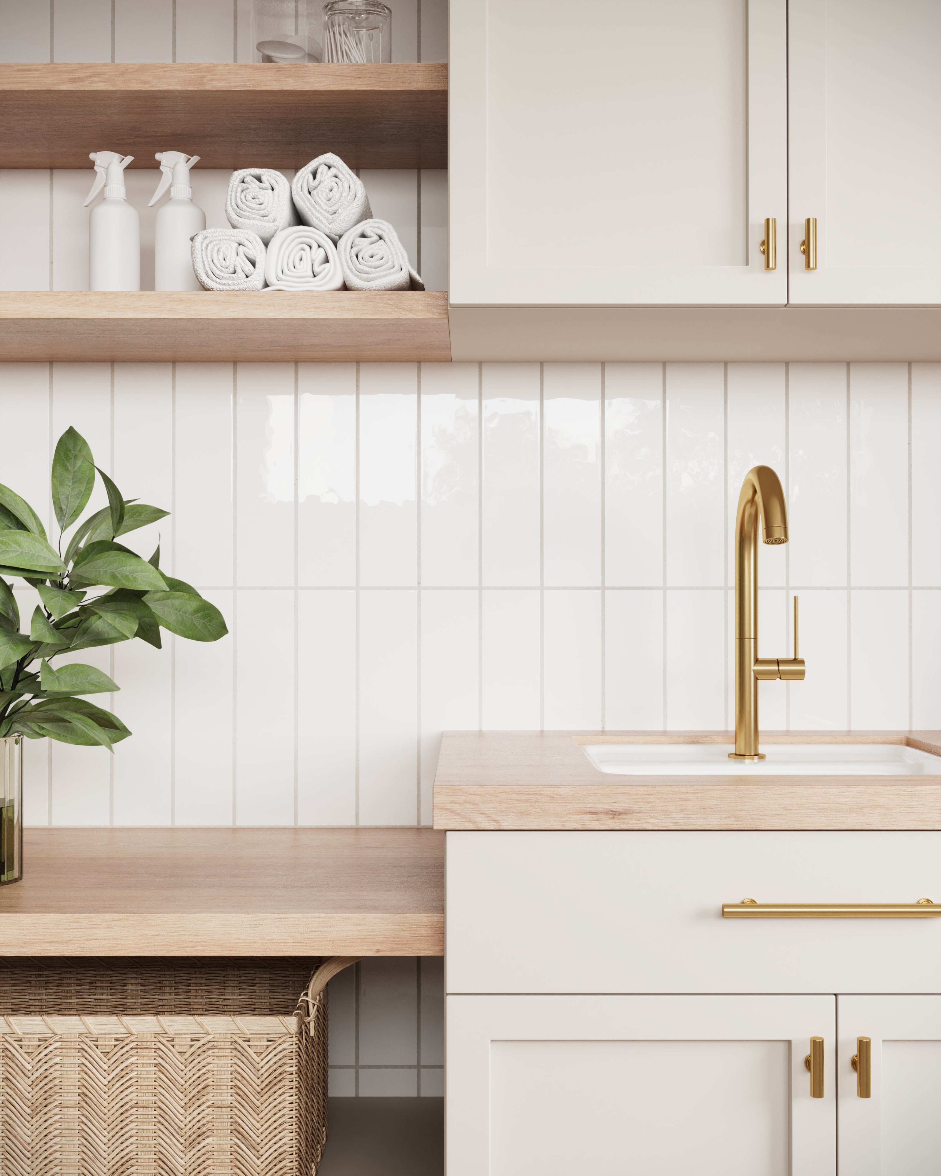 Our Madilyn 3x12 Glossy Ceramic Tile in Pearl is a modern take on the classic subway tile with its elongated silhouette that visually expands any interior. Its light-reflective glaze accentuates a refined handmade look, defined by slightly cushioned edges and gentle ripples across its uniform white surface.
