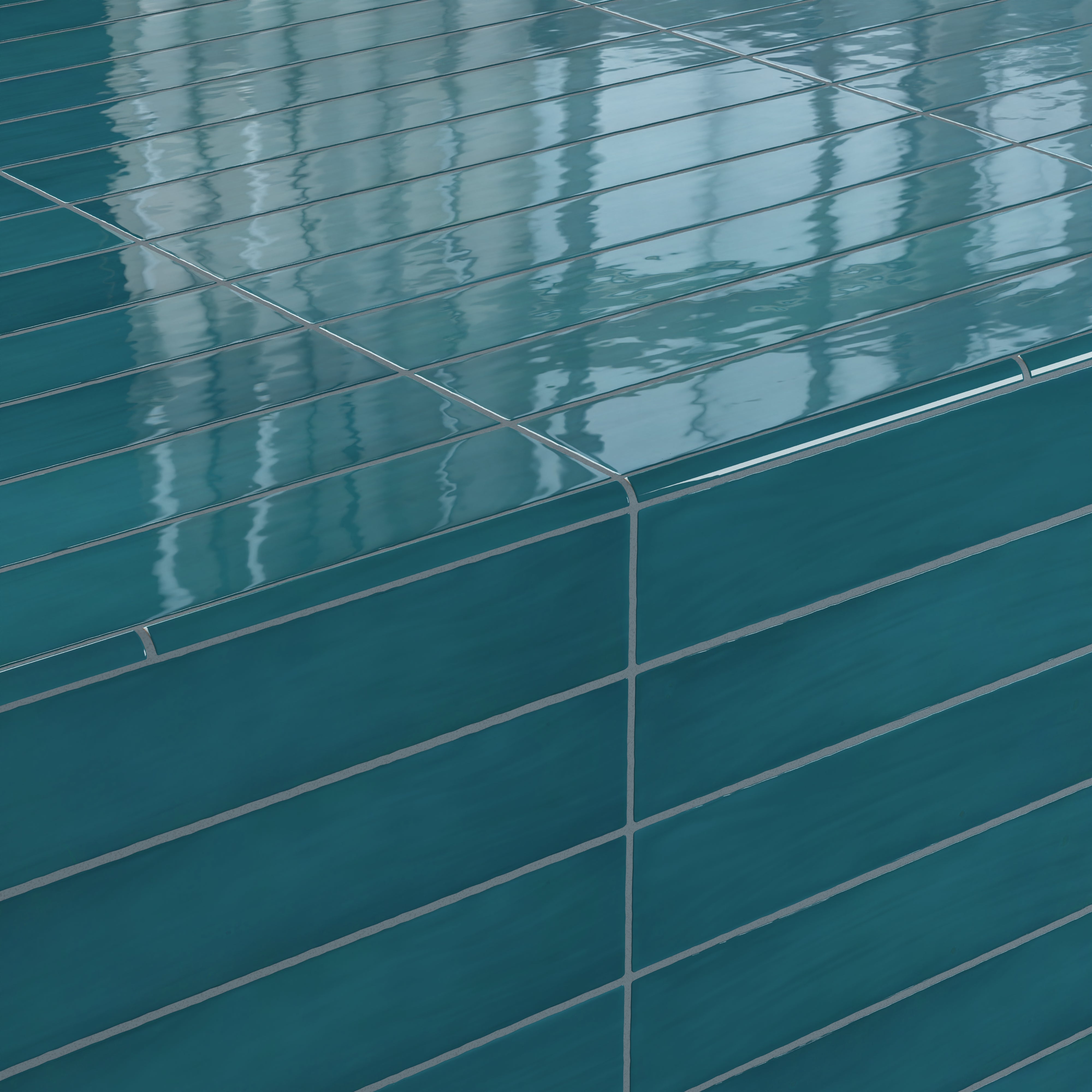 Our Maisie 0.5x8 Jolly Glossy Porcelain Tile Trim in Peacock embodies the collection’s serene, Mediterranean influence, featuring the same subtle shade shifts of blue-green with a high-sheen glaze as its field tile. Designed to protect exposed edges and corners, this piece adds a luminous, handcrafted touch to every transition.