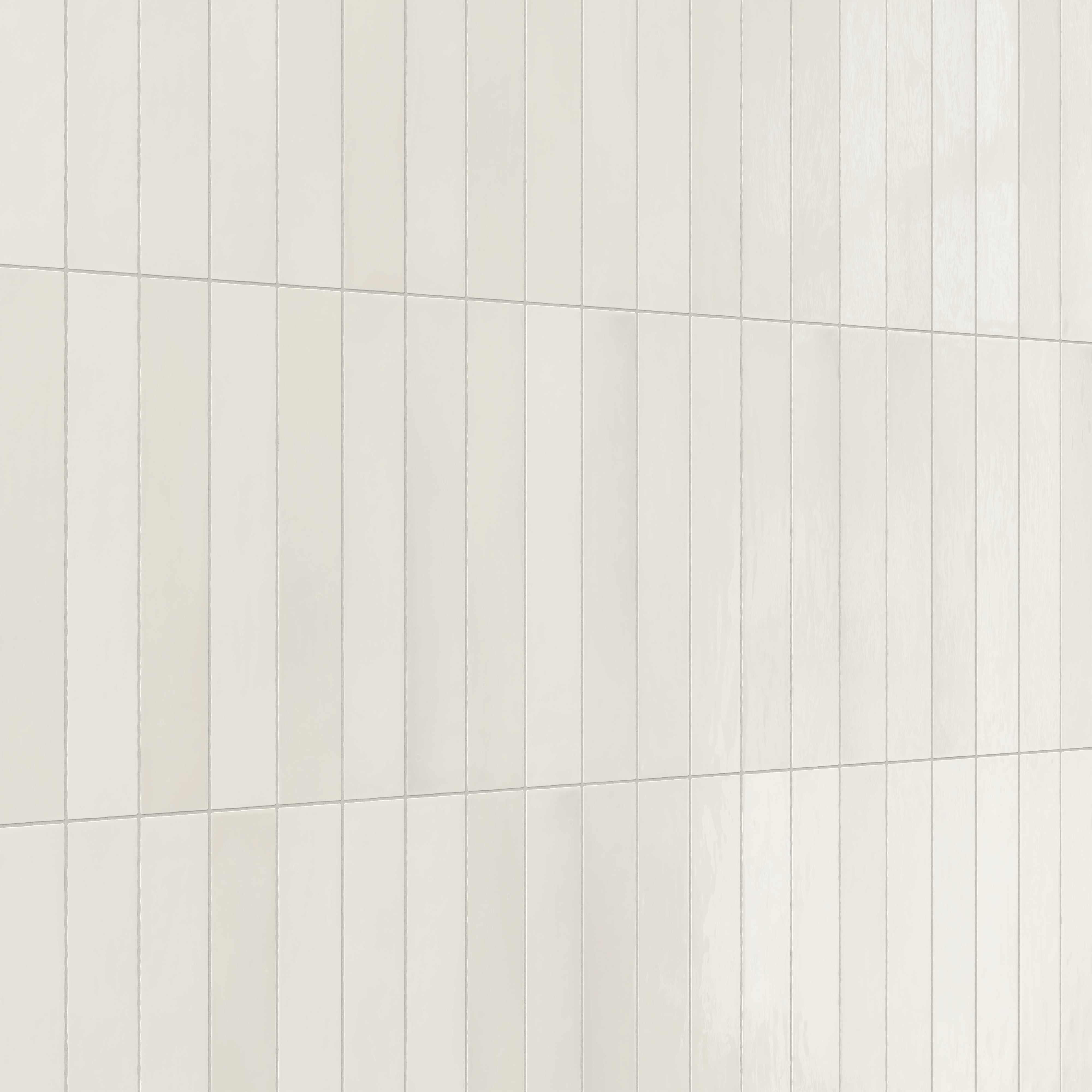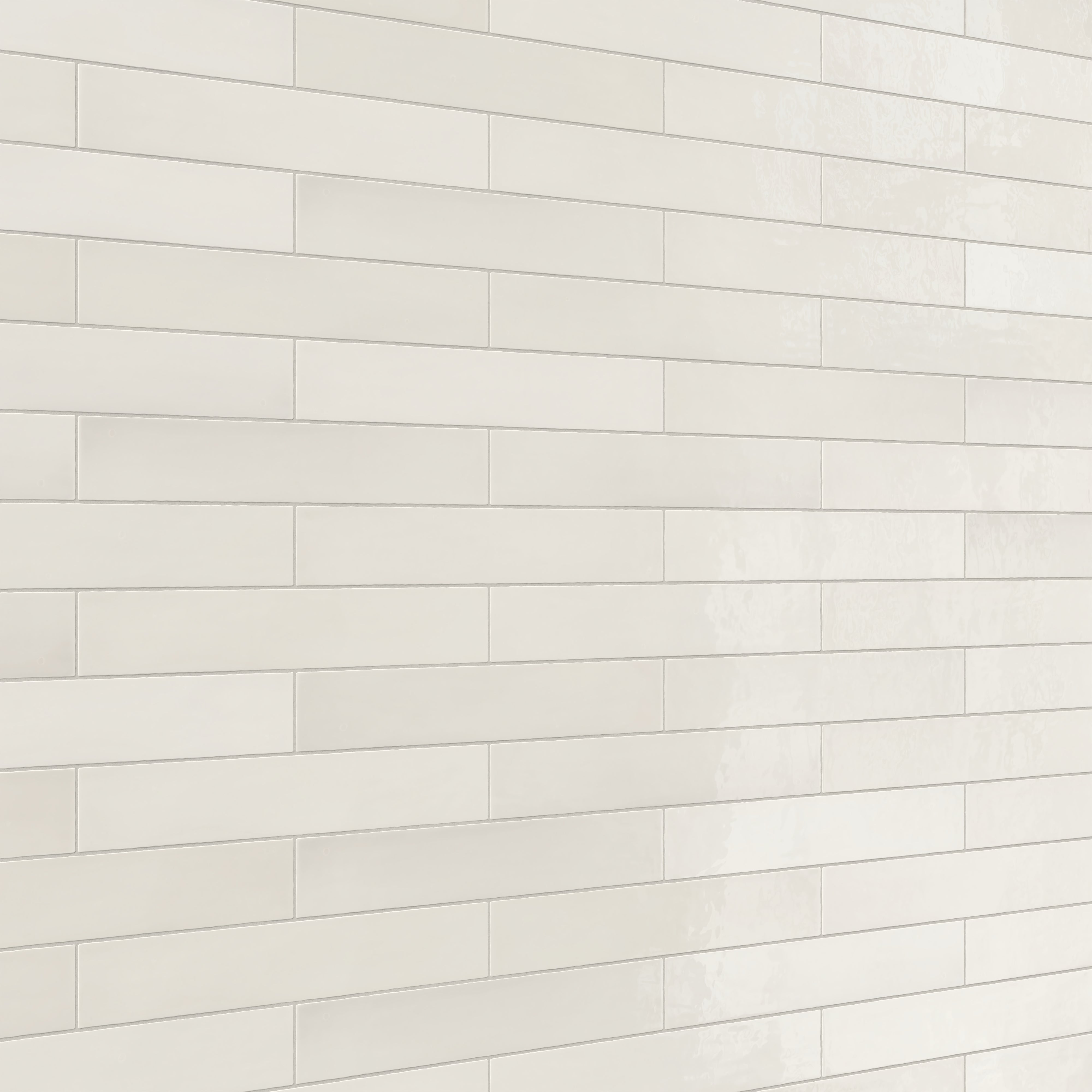 Borrowing its palette from the coves and pine-lined shores of the Mediterranean, our Maisie 2.5x16 Glossy Ceramic Tile in Canvas carries subtle shade shifts of white with a high-sheen glaze that creates a soft wash of light across vertical surfaces. This natural variation reflects the artisan craftsmanship celebrated in the region, reimagined through an extended subway format for a rustic yet refreshingly current organic design.
