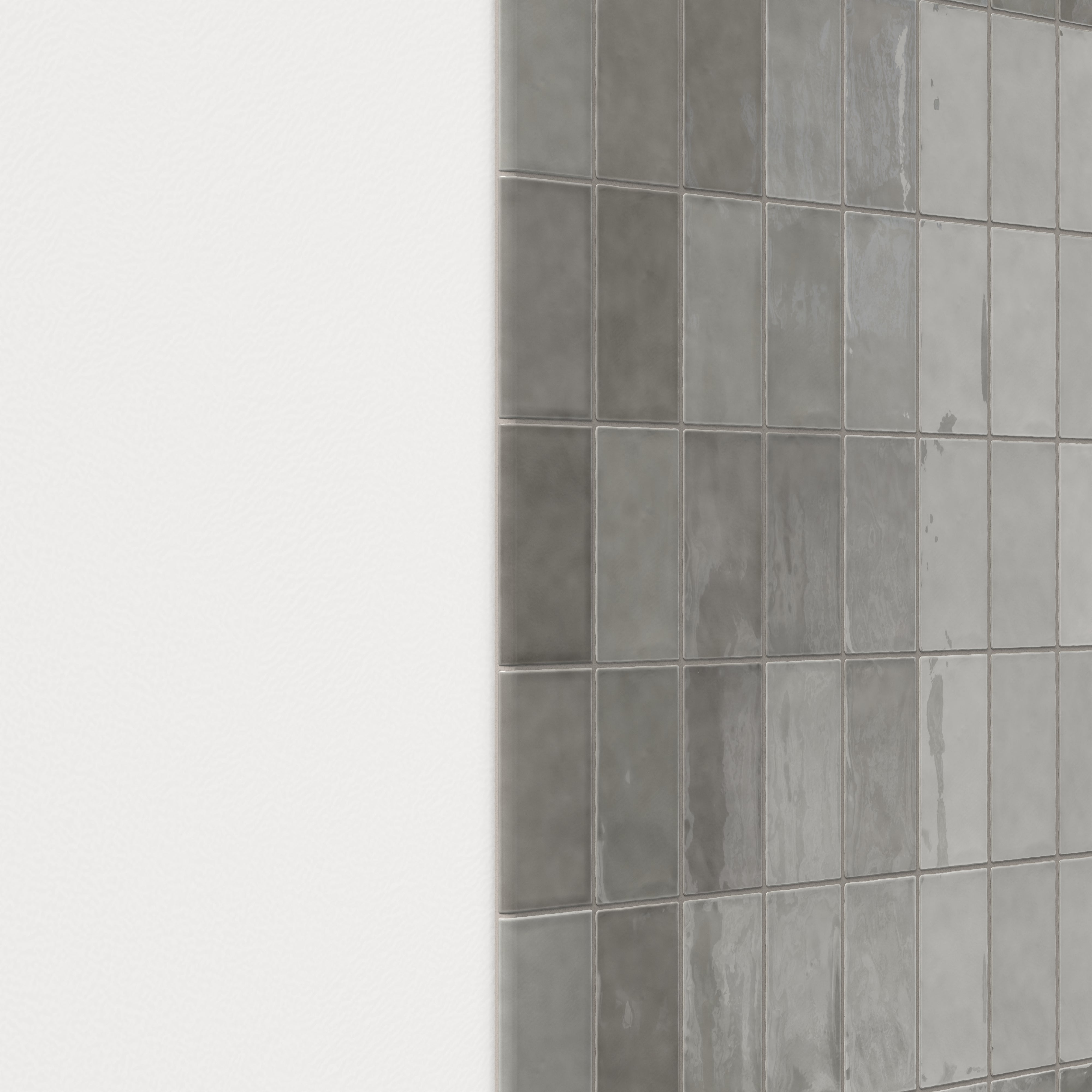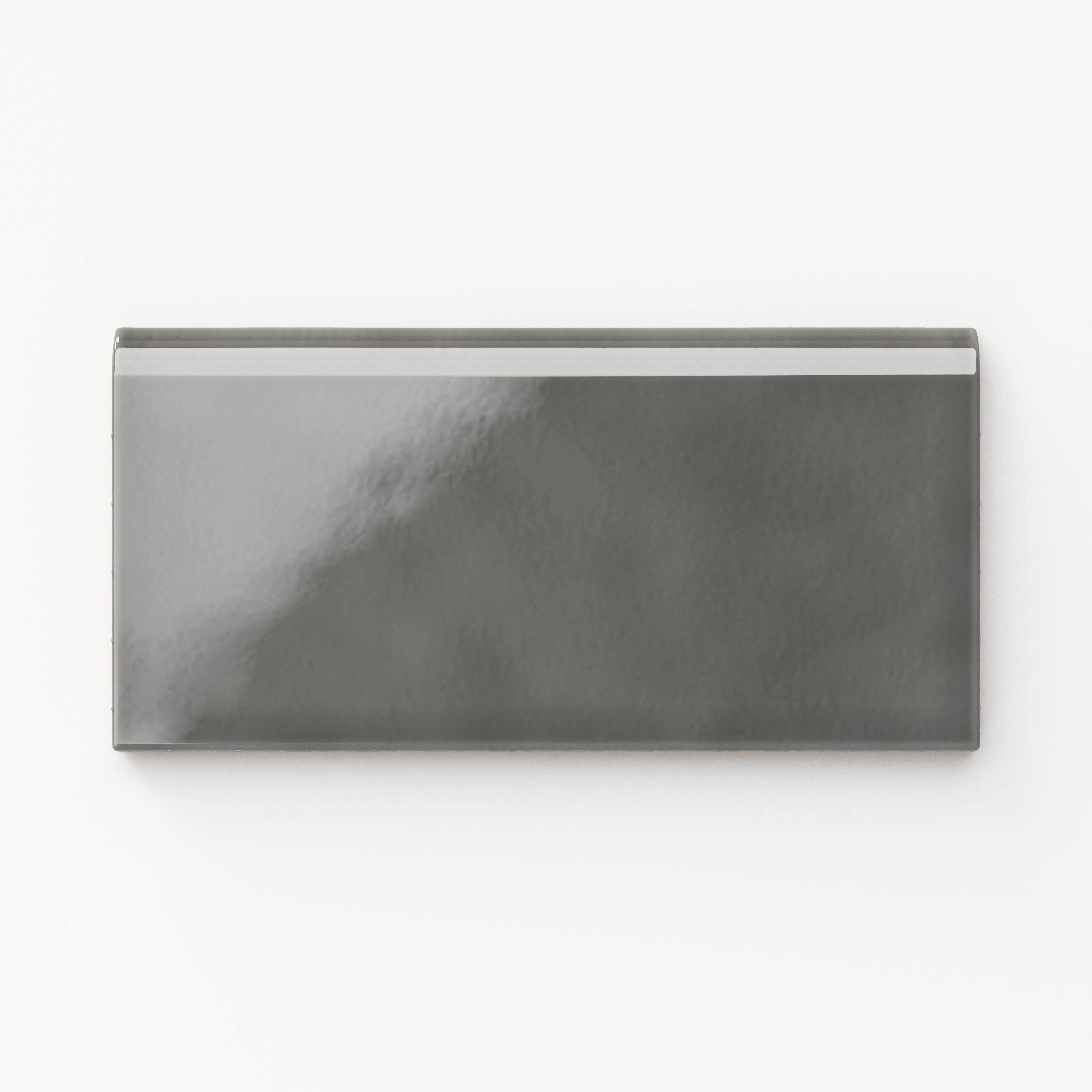 Our Mikayla 2.5x5 Bullnose Glossy Ceramic Tile in Smoke features a translucent, grey hue inspired by the relaxed elegance of Mediterranean design, extending the same handcrafted beauty of its field tile to edges, corners, and wall bases.