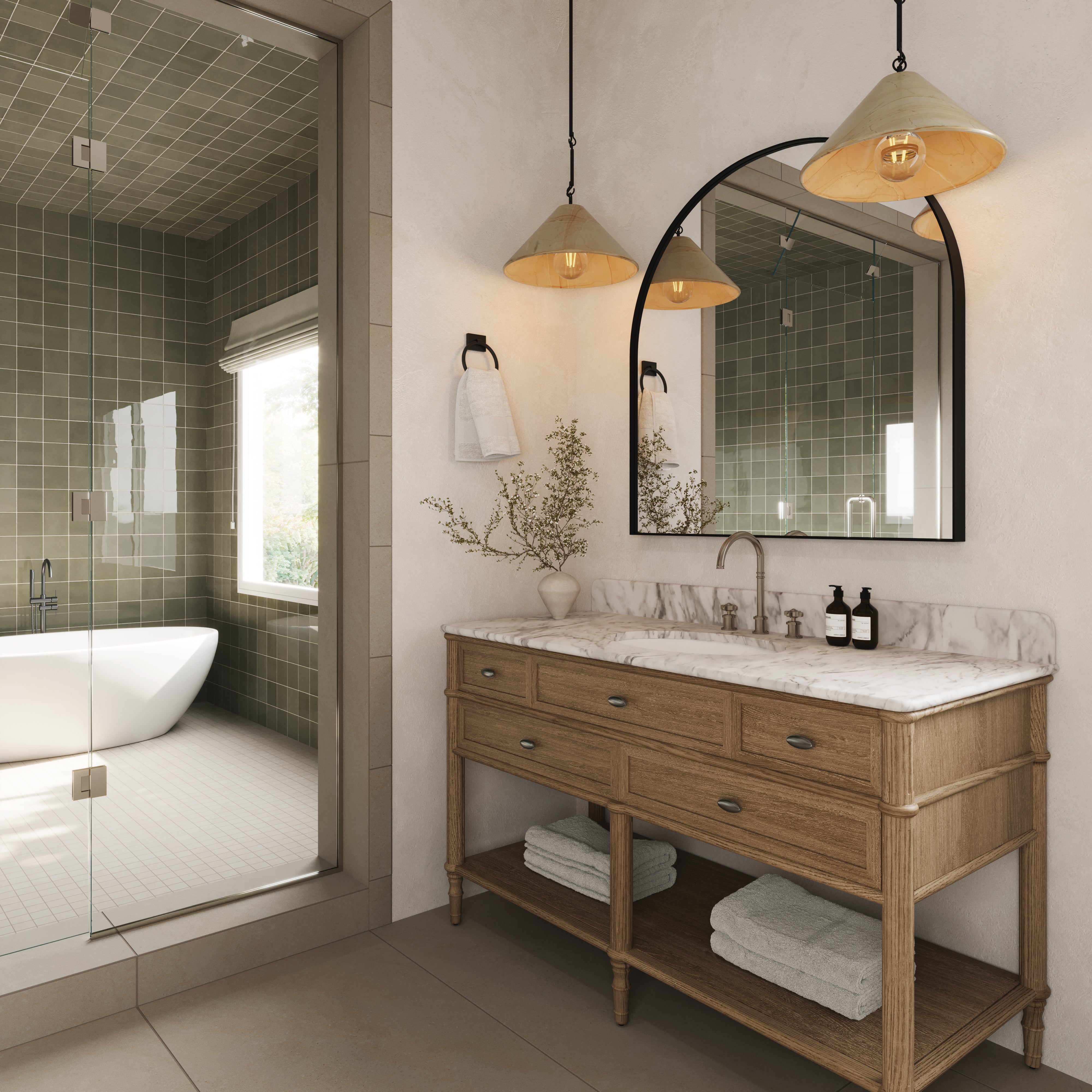 Our Mikayla 5x5 Glossy Ceramic Tile in Olive features a rich olive green hue that carries the essence of rustic, handcrafted beauty. Its translucent glaze delicately plays with light, creating a soft sheen that enhances the tile’s natural variations. This blend of visual elements subtly echoes the relaxed elegance of Mediterranean living while bringing a fresh pop of color into your interiors.