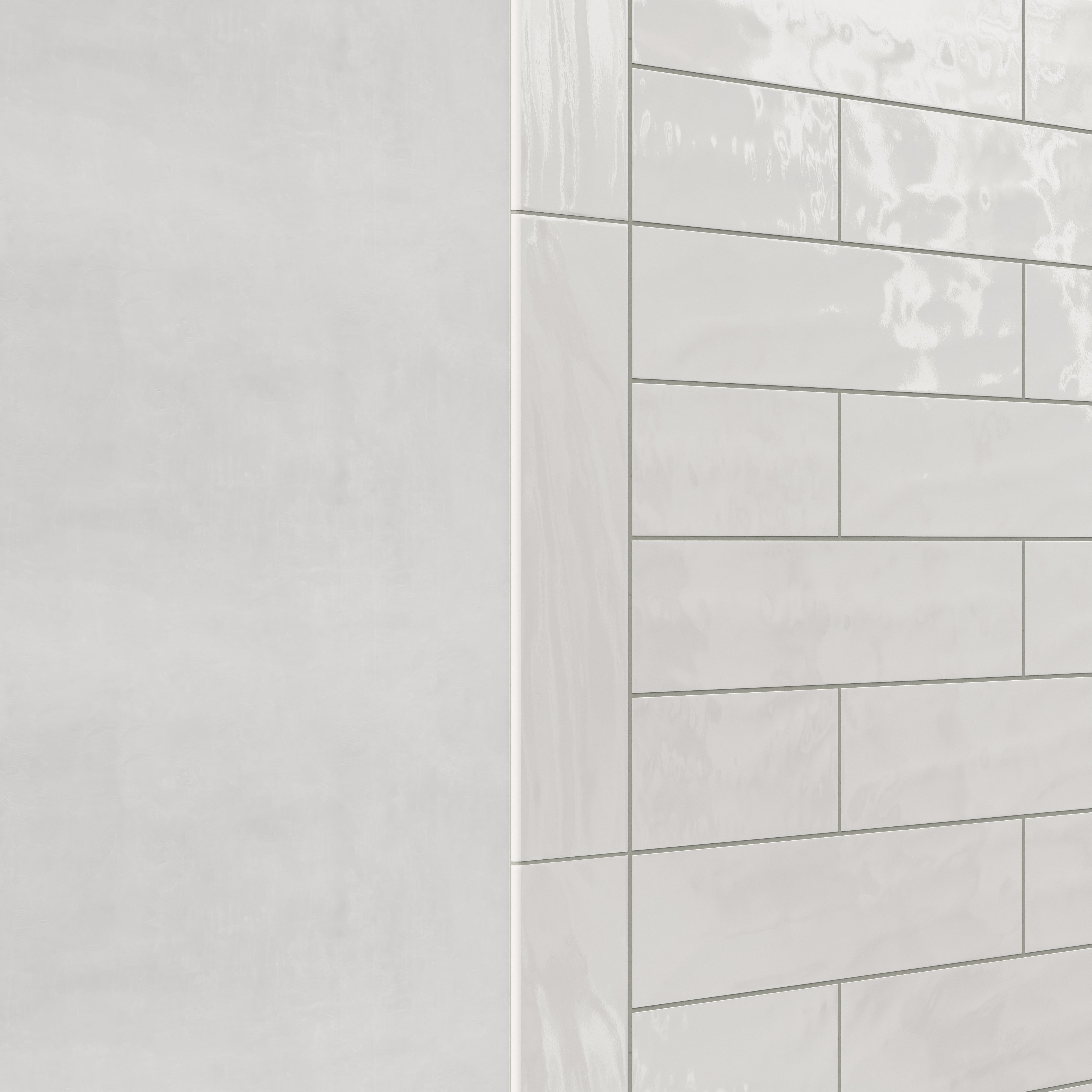 A reflection of refined urban living, our Palmer 6x24 Glossy Porcelain Bullnose Tile in Bianco complements the collection’s field tiles with its same bright, mineral white surface and lustrous finish in a slender plank-like format, providing a smooth, protective edge that completes borders, transitions, and tiled installations.