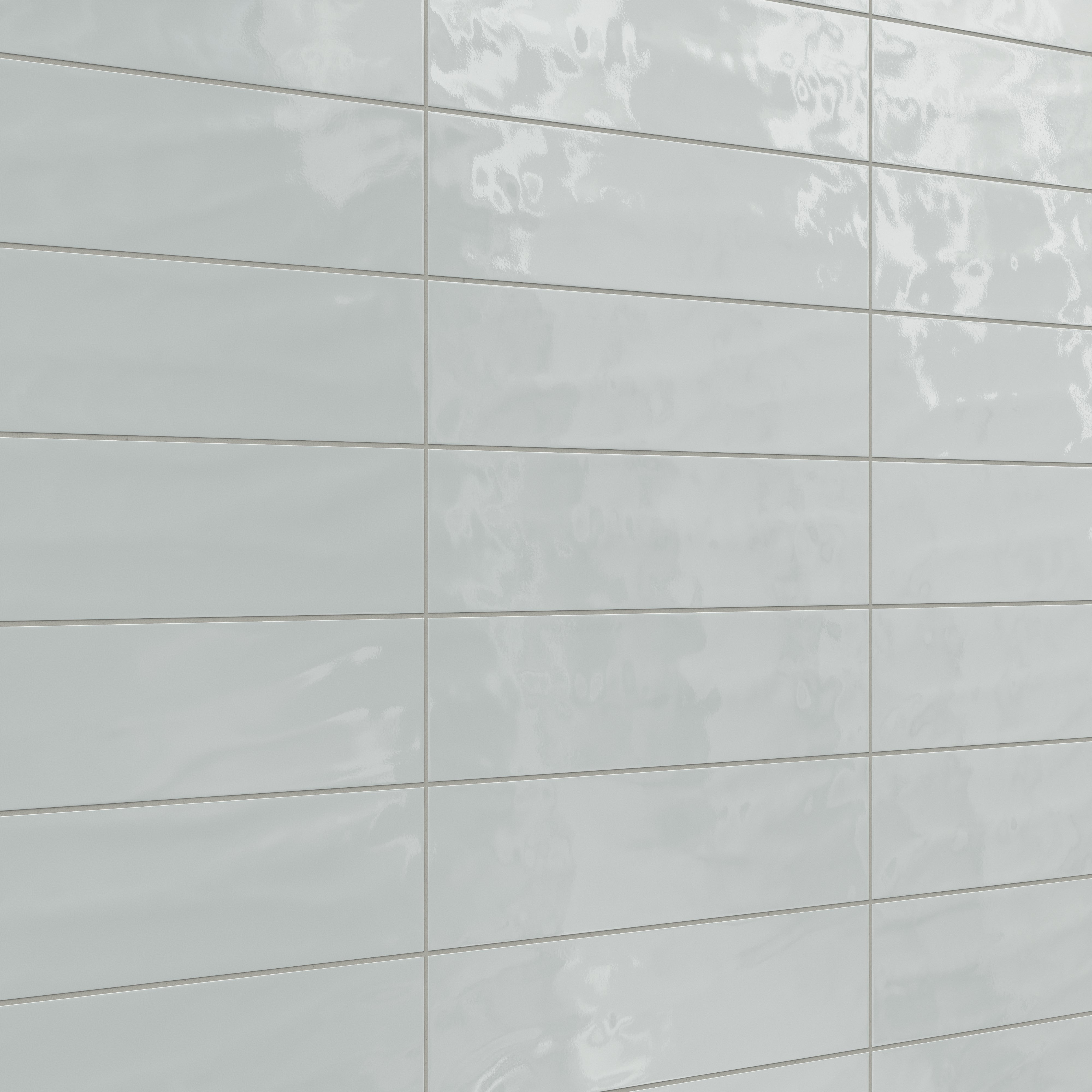 The evolving beauty within the fast pace of city life inspires our Palmer 6x24 Glossy Porcelain Tile in Mint. Sized in a slender plank-like format, each tile’s pastel blue tone is complemented by a subtle cement-look and a lustrous finish, creating a refined canvas that balances raw textures and gentle hues. Together, these elements temper the stark energy of urban landscapes with a sense of warmth.