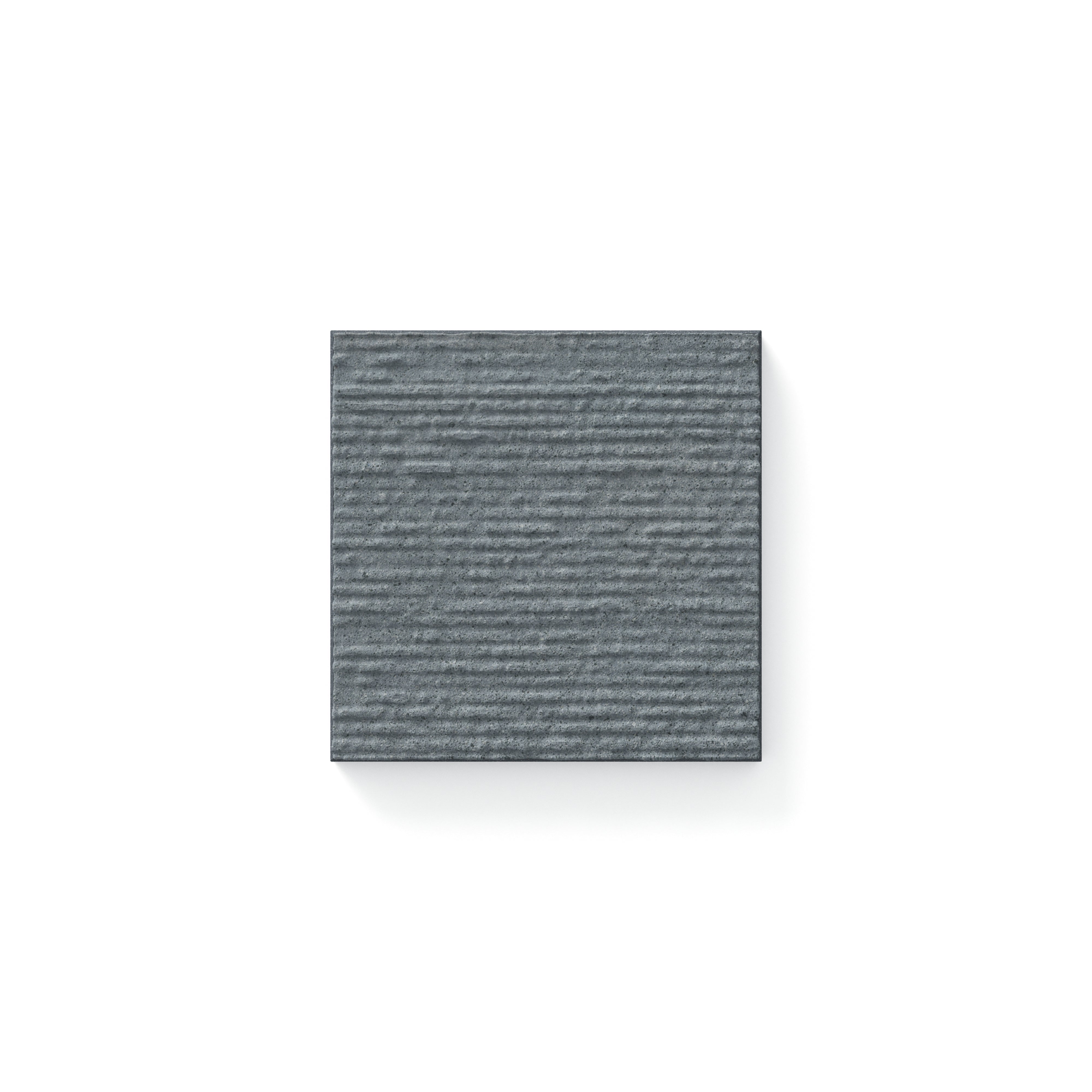 A sample of our Palmer Chiseled Porcelain Tile in Ocean Blue, it features a slate blue tone that is complemented by a subtle cement-look and a grooved finish, creating a refined canvas that balances raw textures and gentle hues.