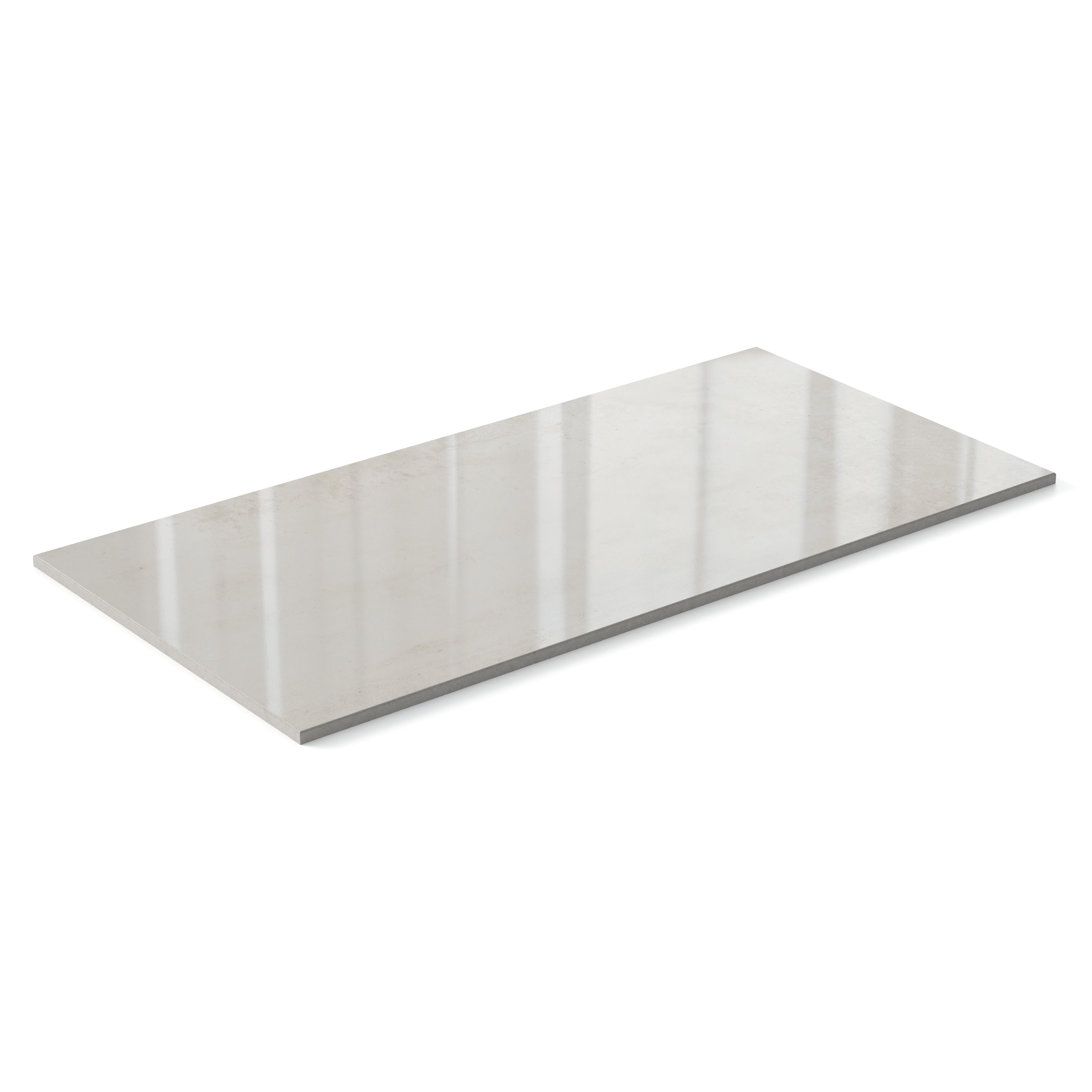 Rooted in American industrial design, our Ramsey 12x24 Polished Porcelain Tile in Chalk layers a refined neutral palette and dynamic, life-like visual textures to elevate the familiar look of hand-troweled concrete. Its classic rectangular format features a gleaming, faint gray shade with beige undertones, bringing a sense of warmth to modern, minimalist settings.