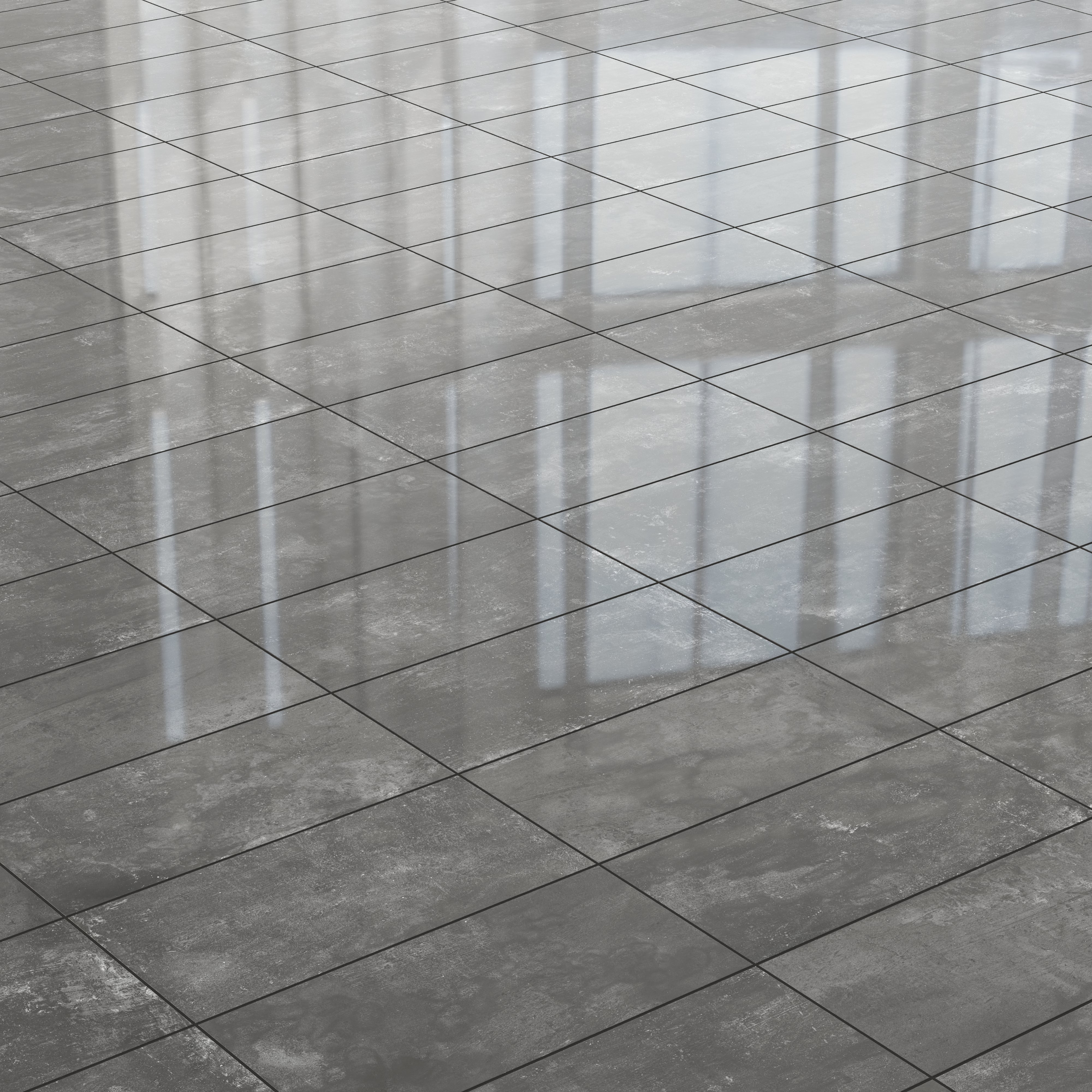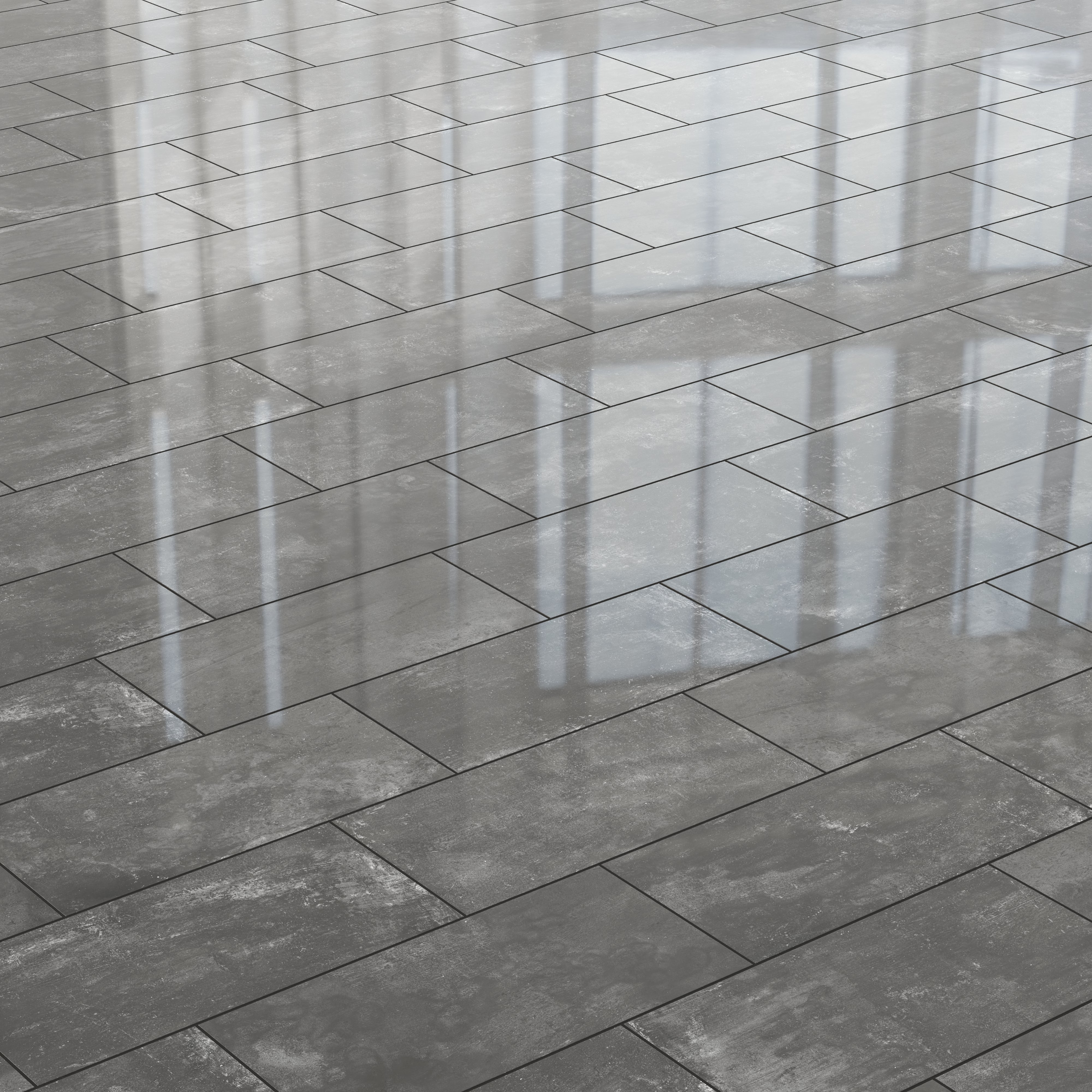 Rooted in American industrial design, our Ramsey 12x24 Polished Porcelain Tile in Coal layers a refined neutral palette and dynamic, life-like visual textures to elevate the familiar look of hand-troweled concrete. Its classic rectangular format features a gleaming black shade with earthy gray undertones, bringing a sense of warmth to modern, minimalist settings.