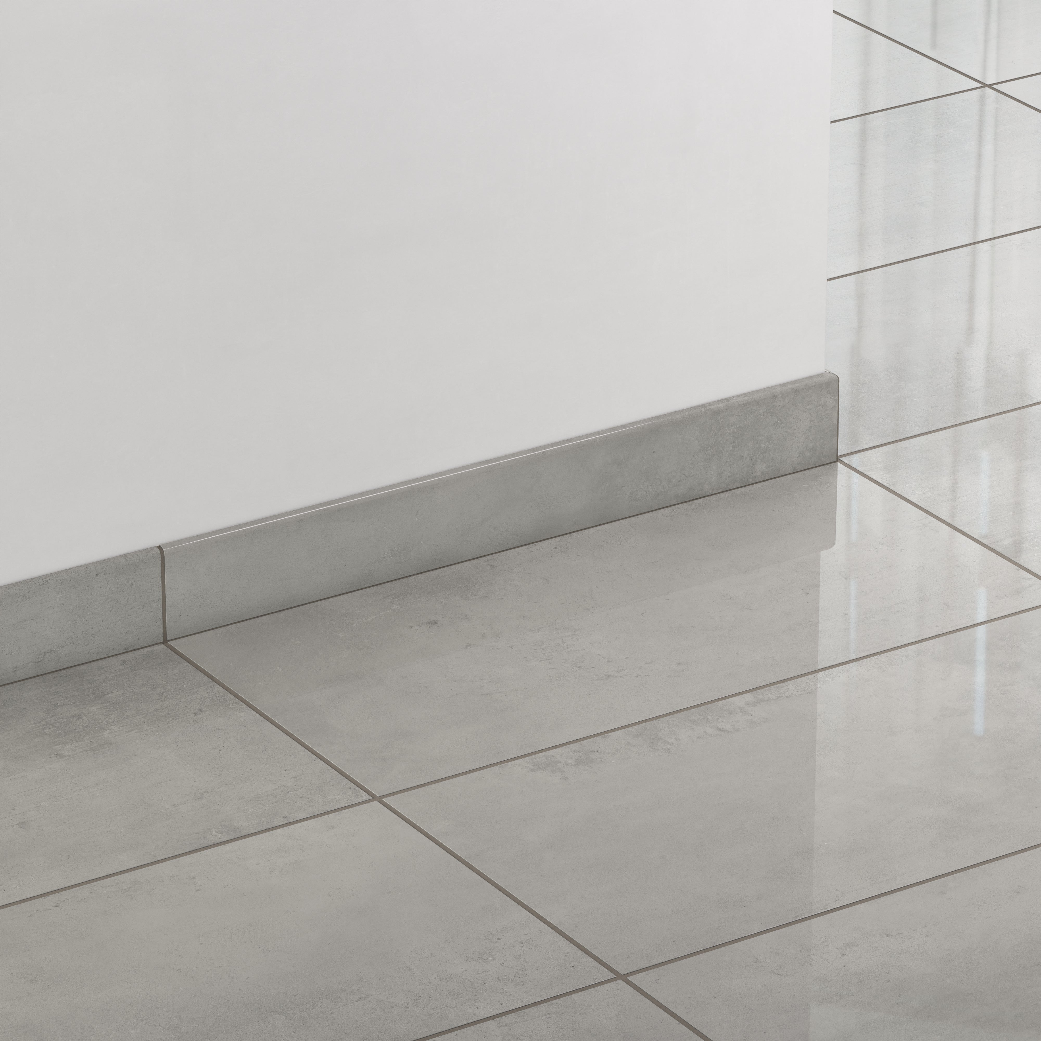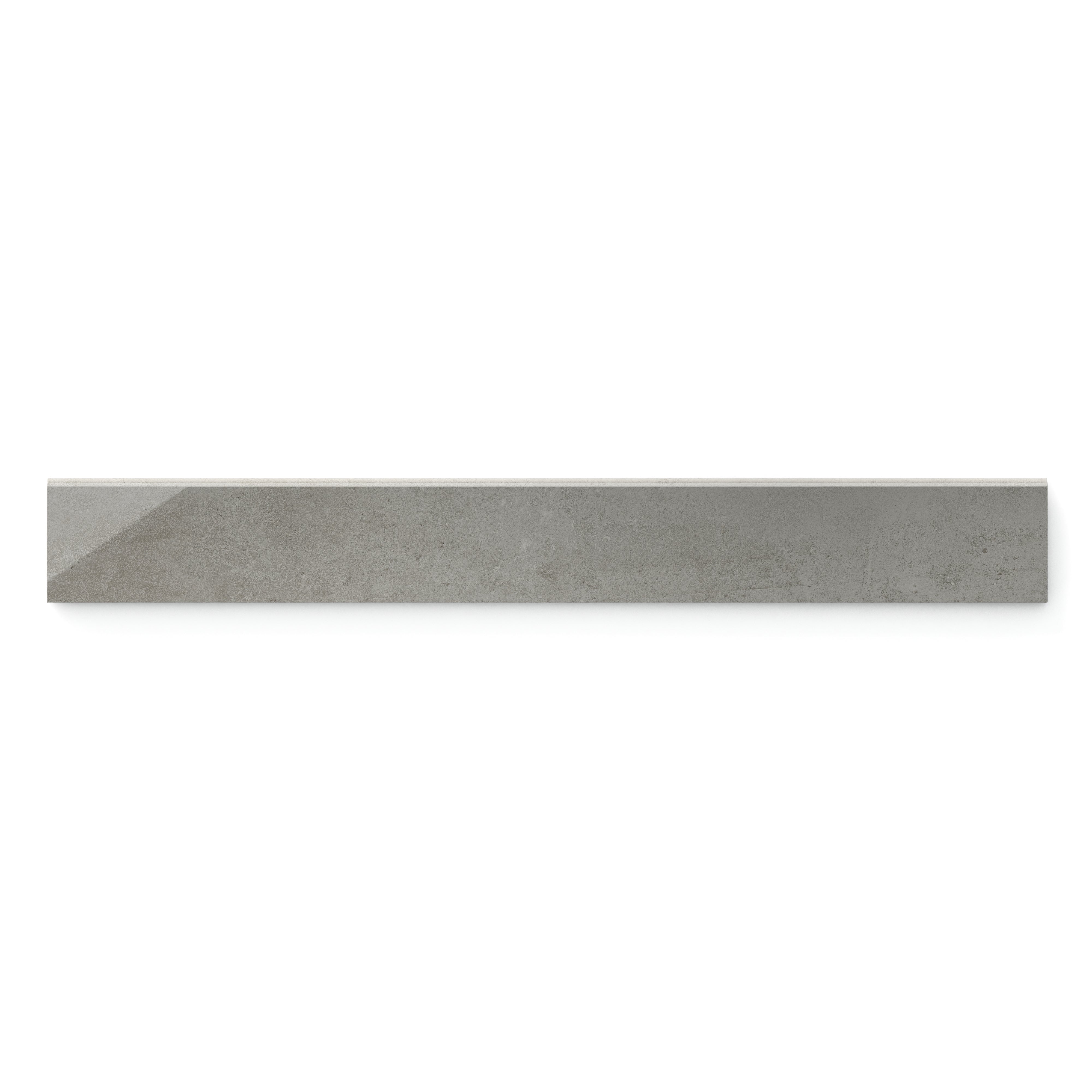 Featuring the same industrial-inspired aesthetic as the collection’s field tiles, our Ramsey 3x24 Polished Porcelain Bullnose Tile in Ash creates a smooth, light-reflecting finish along exposed edges, corners, and wall terminations with its mid-gray shade with rich earthy undertones and concrete-inspired textures.