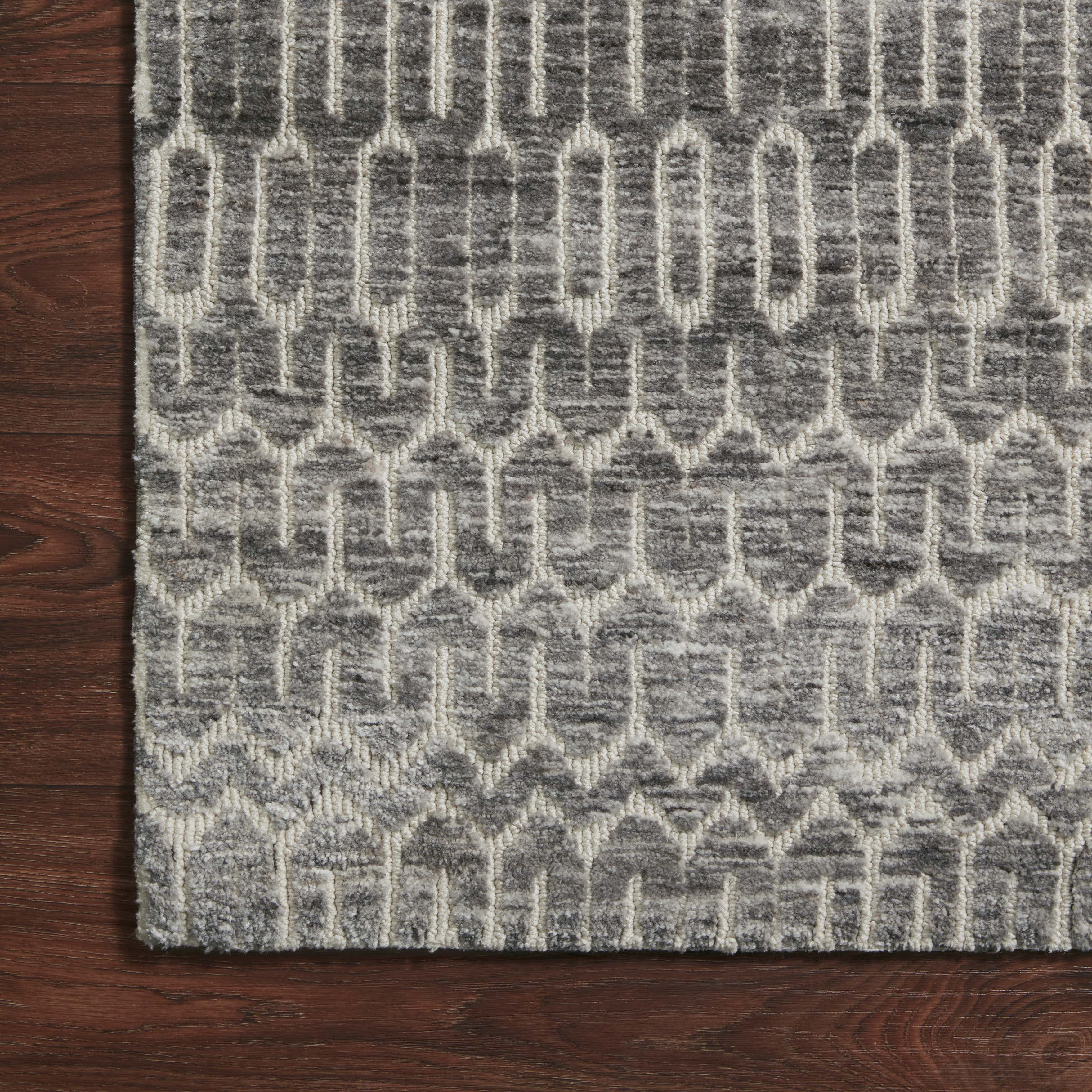 Our Rollins Polyester Pile Rug in Smoke / Pearl features a repeating geometric motif in layered black and gray tones, creating a soft, distressed effect. Soft and lightweight, this 100% durable polyester material retains color, wears well, and is moisture-resistant, offering long-lasting performance and affordable luxury for both indoor and outdoor spaces.