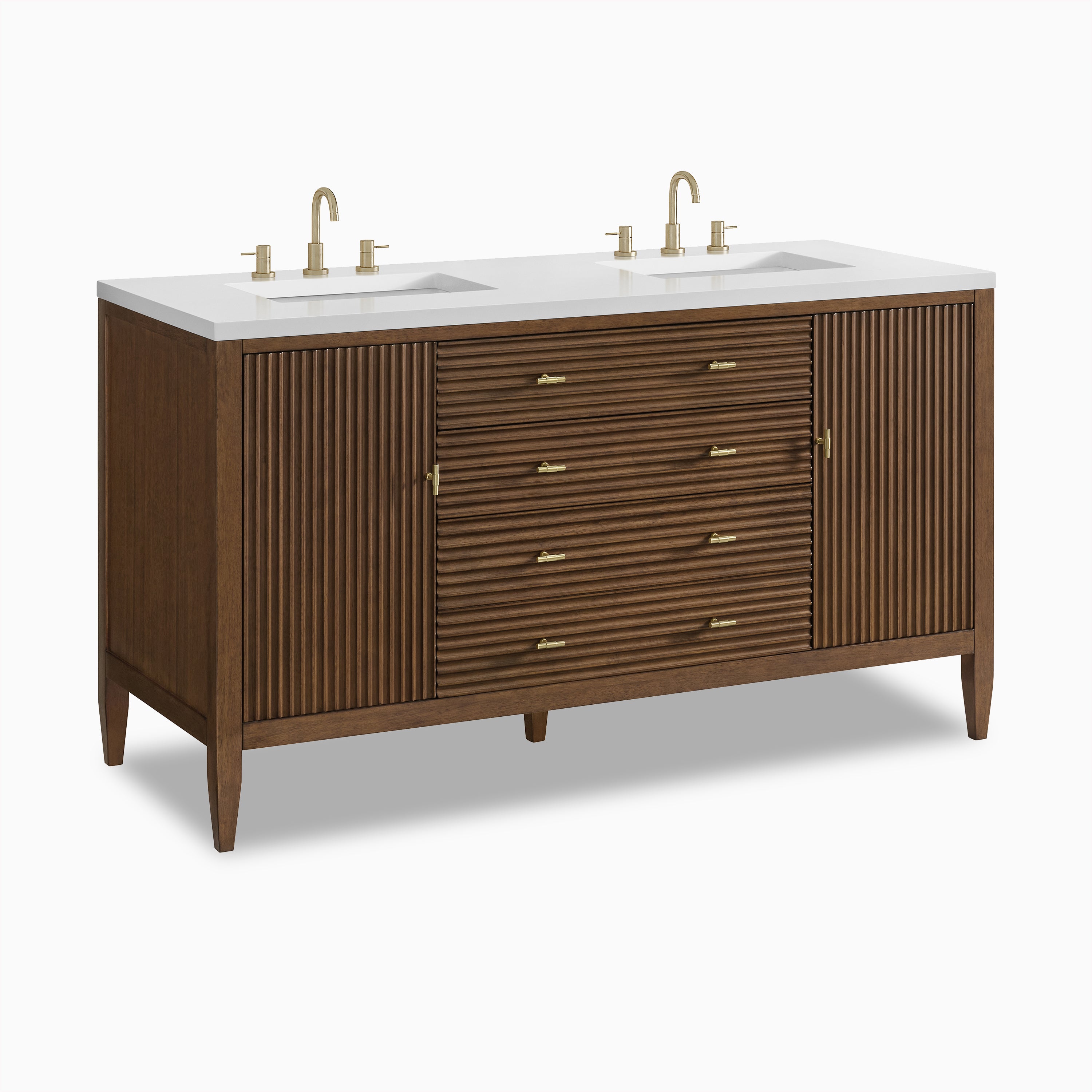 Sasha 60" Double Vanity in Mid Century Walnut with 3 cm White Zeus Quartz Top