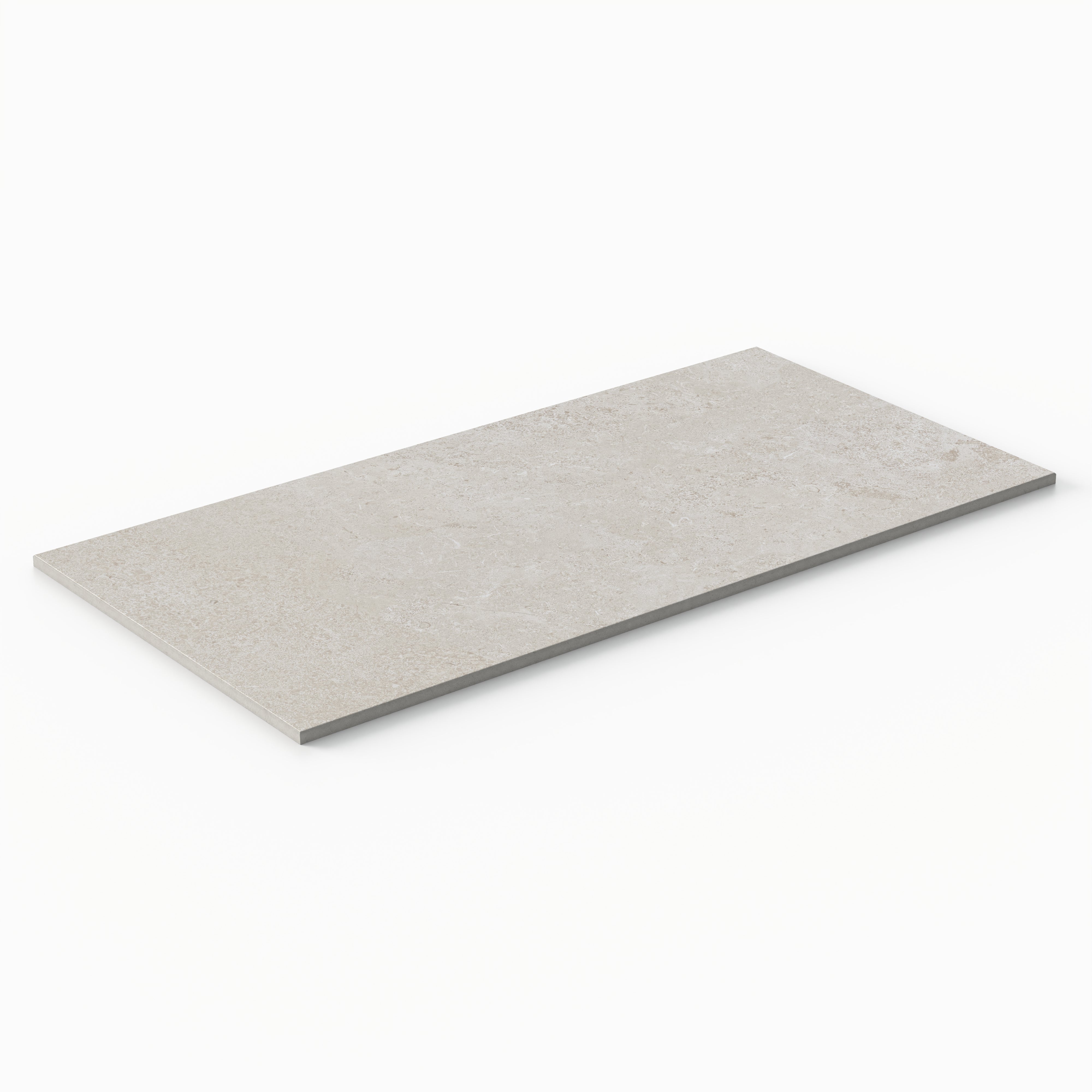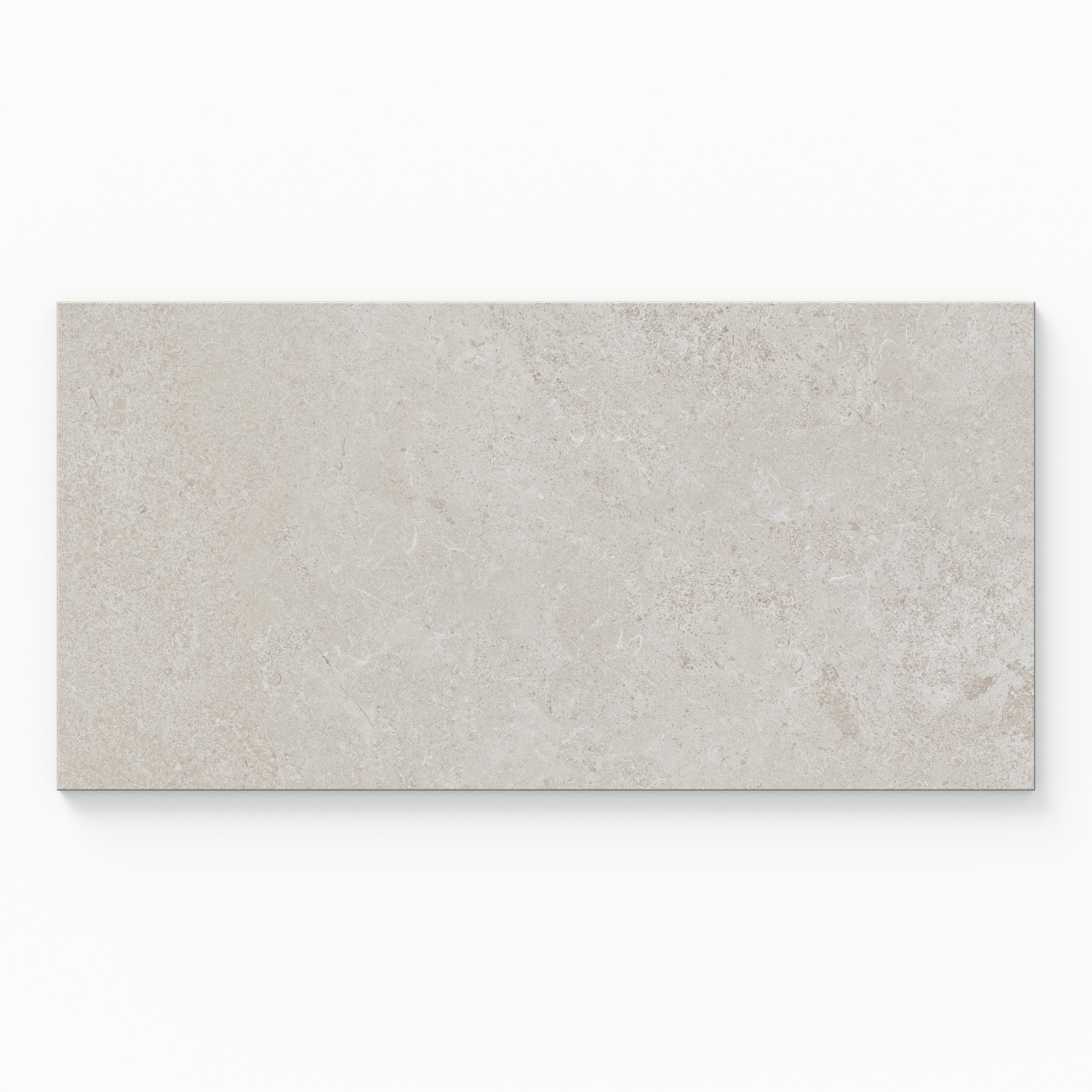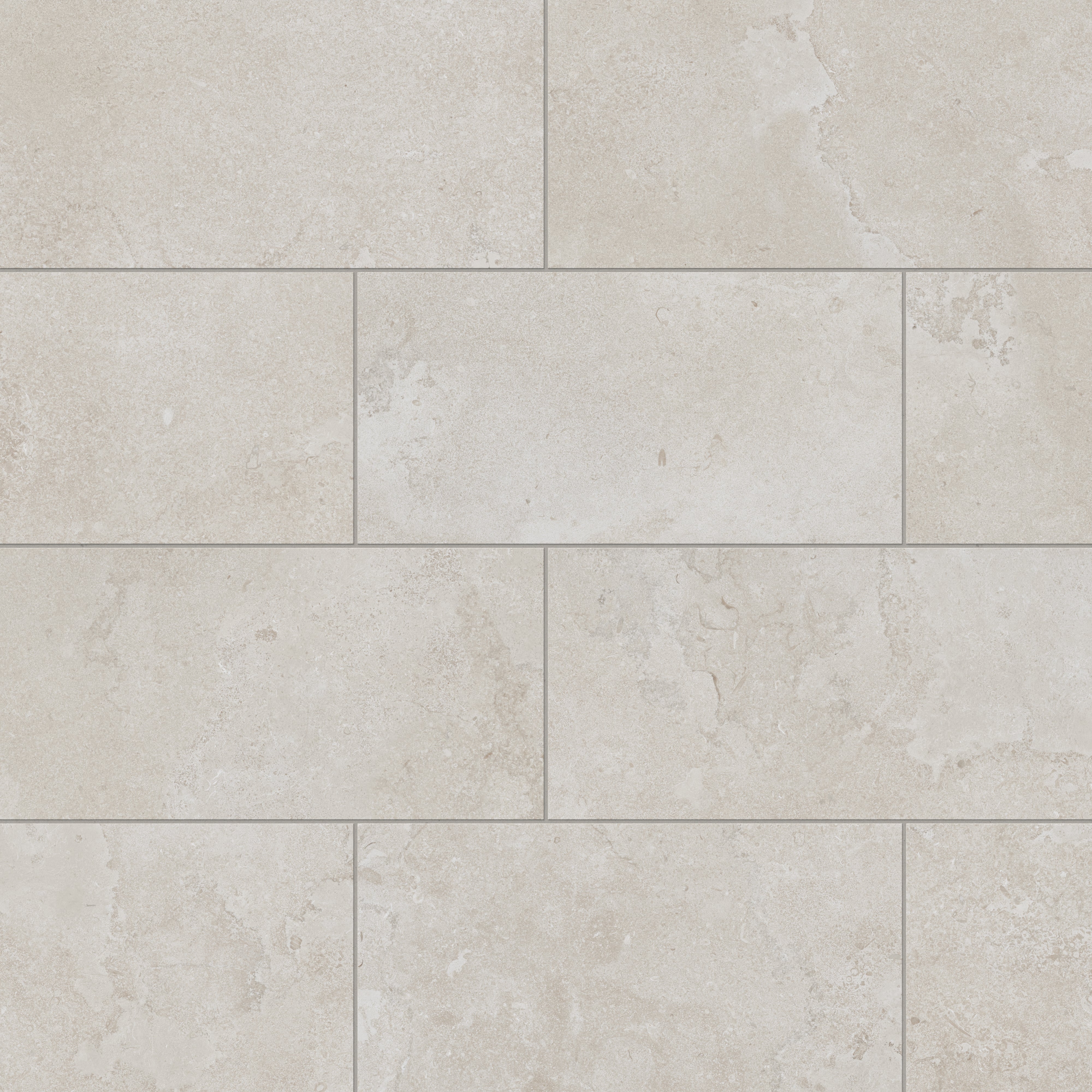 Our Tatum 12x24 Matte Porcelain Tile in Cross-Cut Sand captures the essence of travertine with its subtle mineral layering, faint sediment swirls, and soft tonal shifts of beige in a classic rectangular format. The non-reflective finish adds subtle richness to its weathered, organically pitted appearance, perfect for nature-inspired spaces.