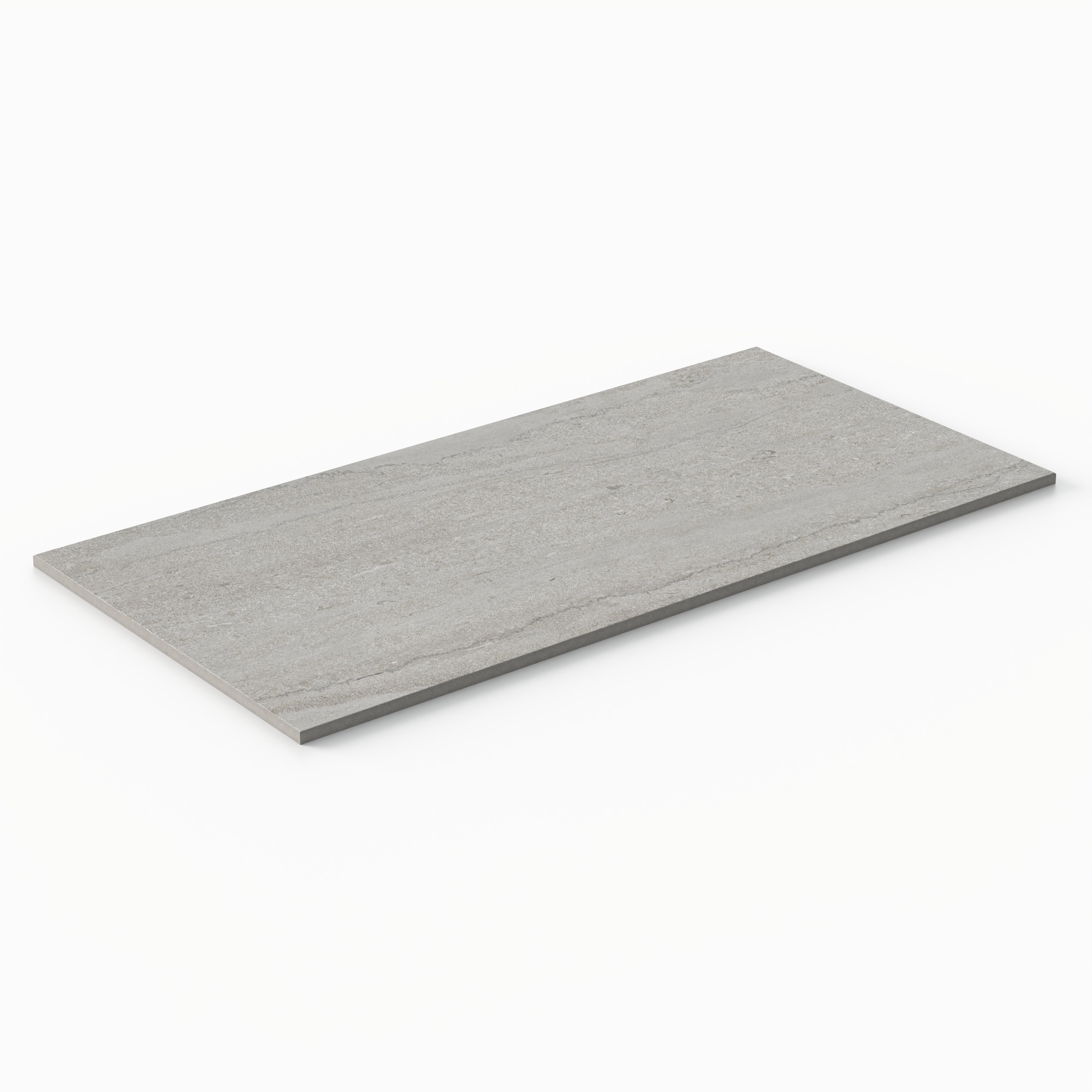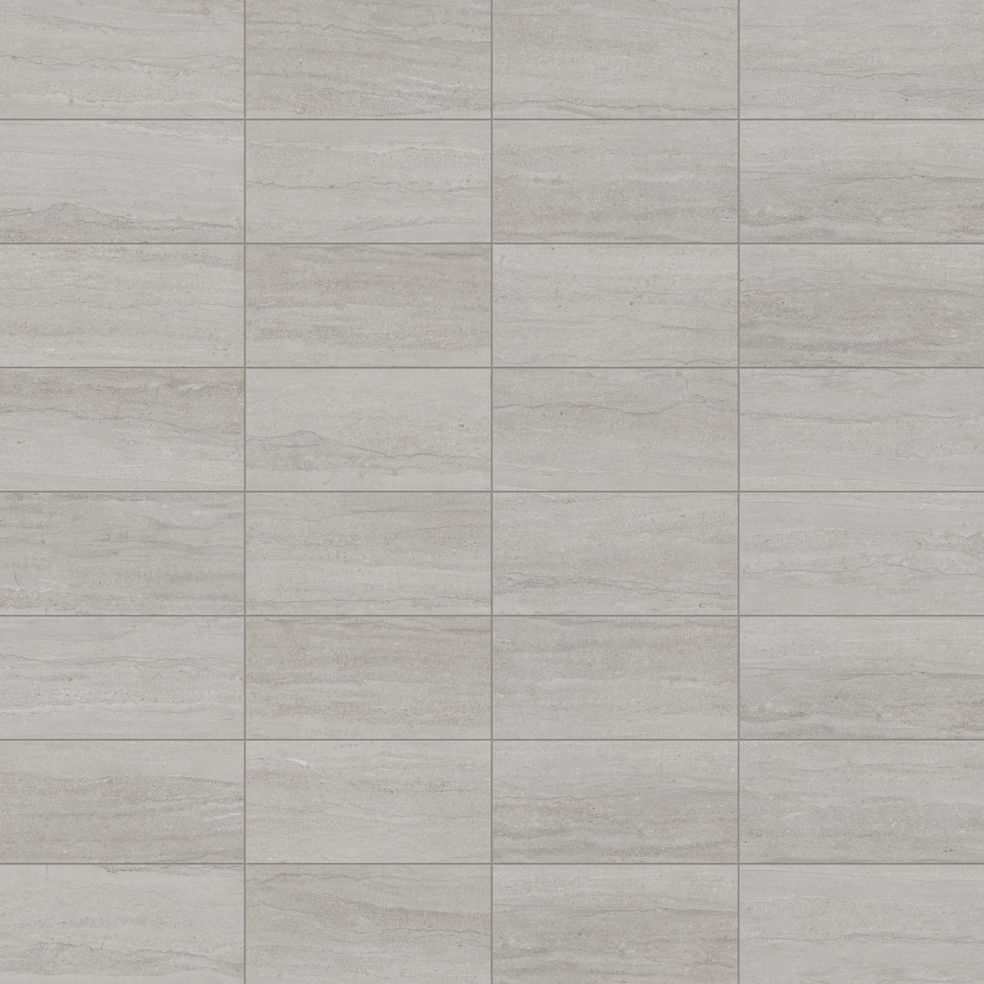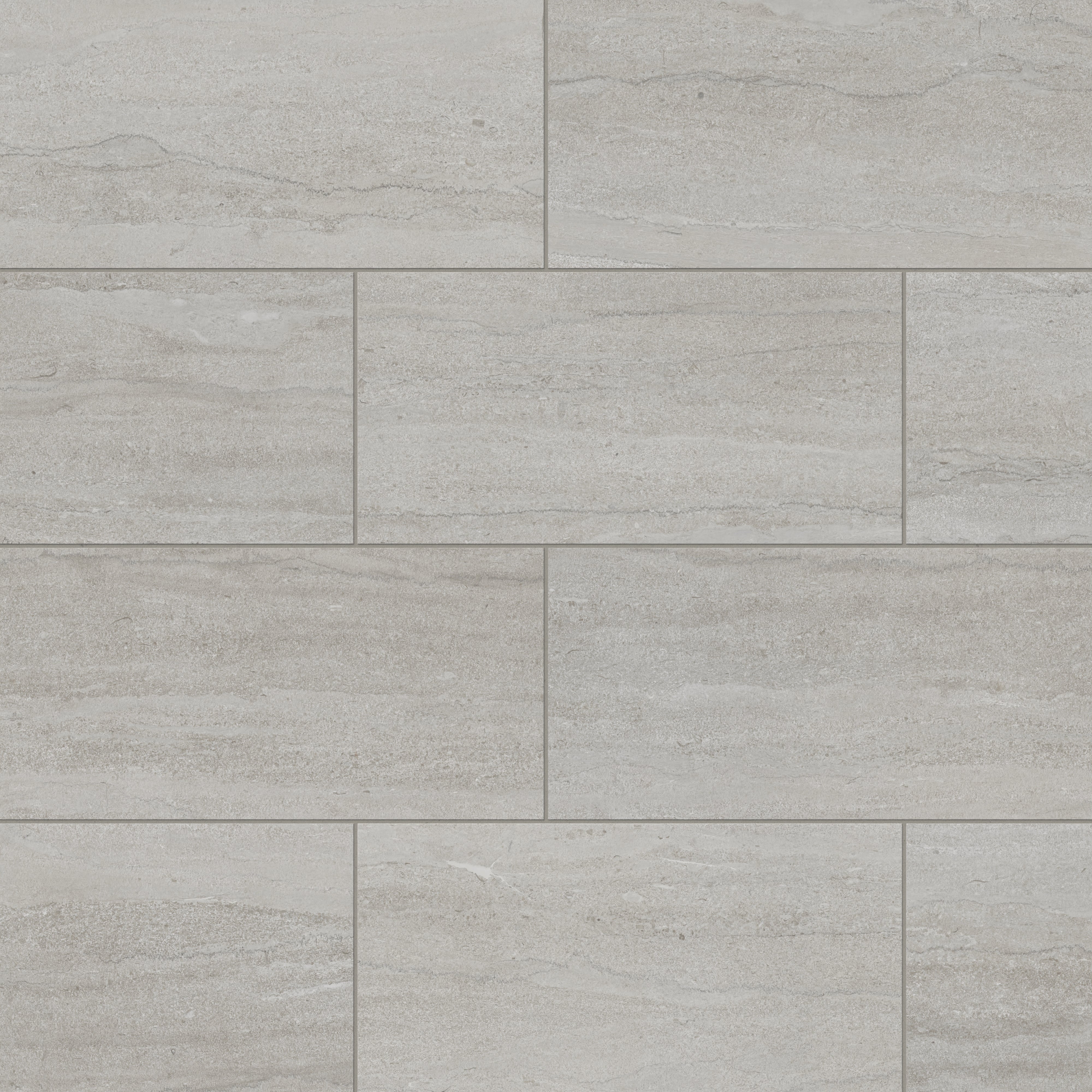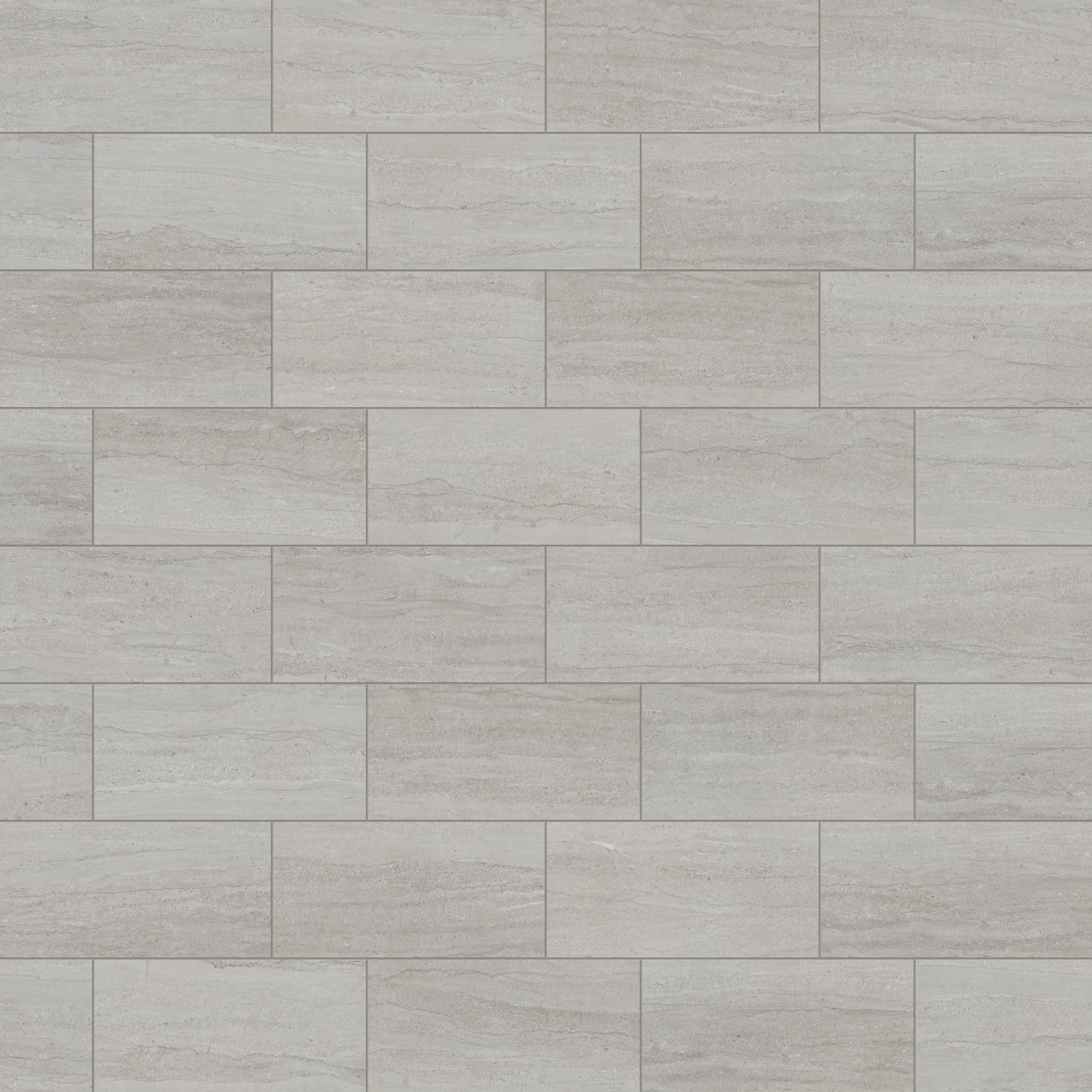 Our Tatum 12x24 Matte Porcelain Tile in Vein-Cut Dune captures the essence of travertine with its subtle mineral layering, gently flowing horizontal striations, and soft tonal shifts of earthy gray in a classic rectangular format. The non-reflective finish adds subtle richness to its weathered, organically pitted appearance, perfect for nature-inspired spaces.