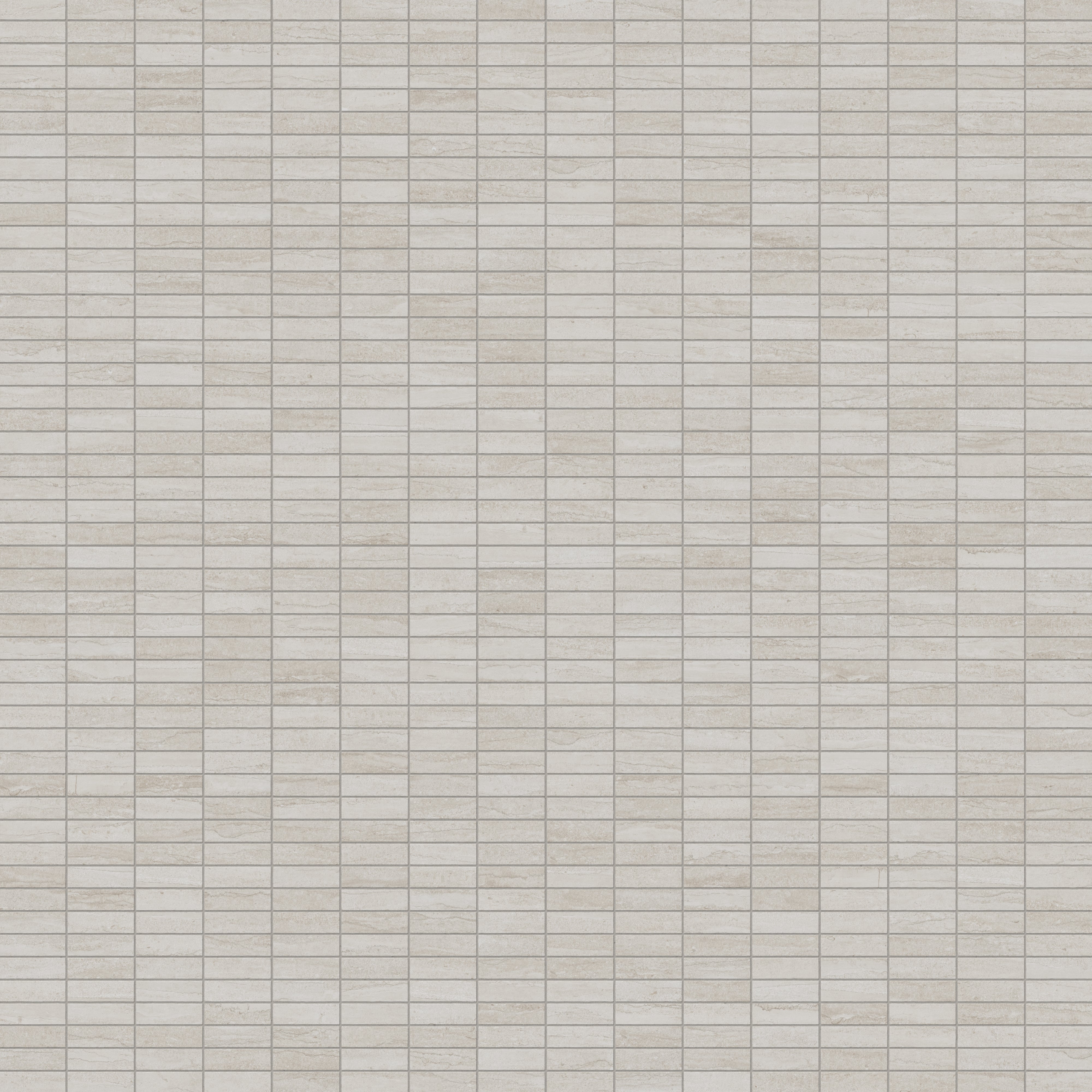 Our Tatum 1x3 Matte Porcelain Mosaic Tile in Vein-Cut Sand captures the essence of travertine with its subtle mineral layering, gently flowing horizontal striations, and soft tonal shifts of beige in a finely scaled, mesh-mounted rectangular format. The non-reflective finish adds subtle richness to its weathered, organically pitted appearance, perfect for nature-inspired spaces.