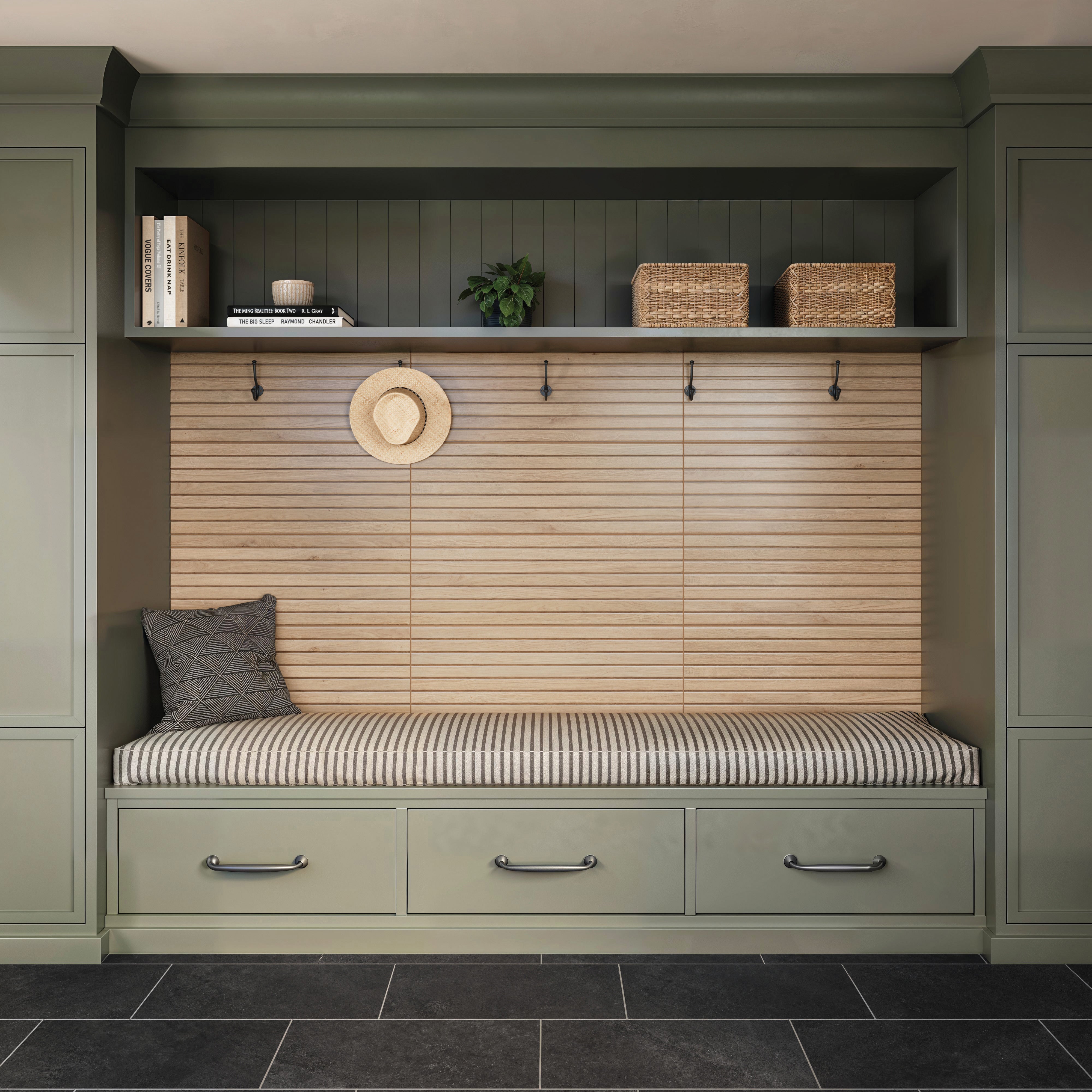 • Modern decorative tile with a three-dimensional wood-inspired look
